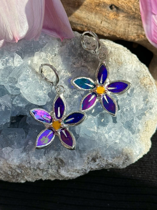 Orchid Indigo, 3 Flowers, Handmade Stained Glass Modern Art Decor