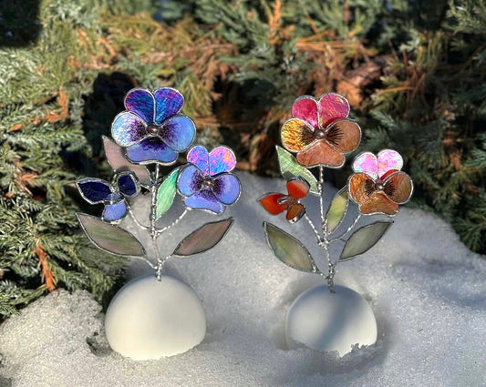 " . CHOOSE COLOR Stained glass Pansy flower in a handmade base, Table modern decor, Suncatcher, Mother’s Day