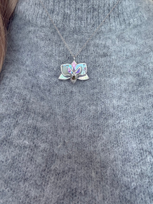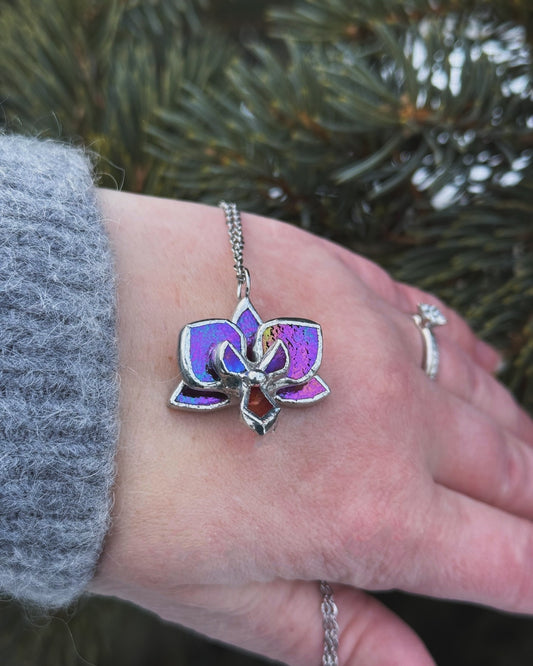 " . CHOOSE COLOR “NECKLACE orchid flower” Stained glass tropical flower 3D, art jewelry