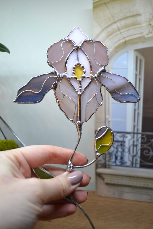 'Iris Violet' Stained glass flower, Sun catcher, Table plant decor, Garden stake, Outdoor and gardening decor