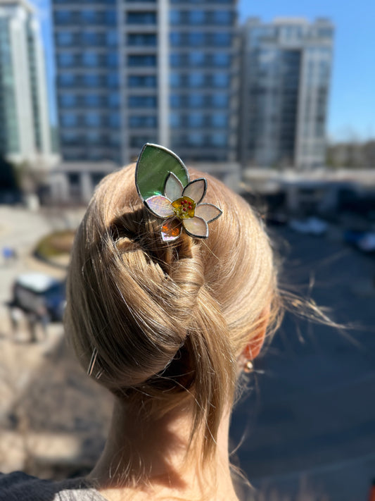 Hair Pin Stained Glass Lotus Flower CHOOSE COLOR Handmade Accessories