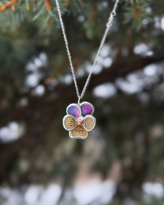 " . CHOOSE COLOR “NECKLACE Pansy flower” Stained glass tropical flower 3D, art jewelry