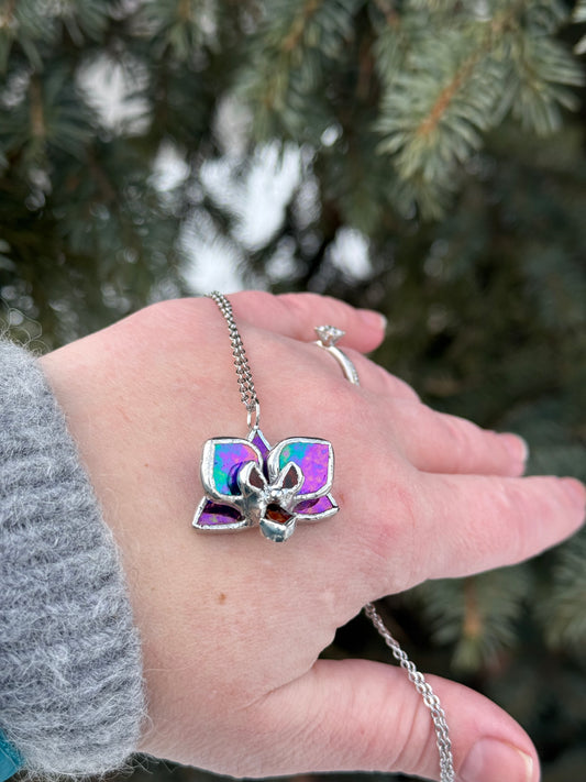 " . CHOOSE COLOR “NECKLACE orchid flower” Stained glass tropical flower 3D, art jewelry