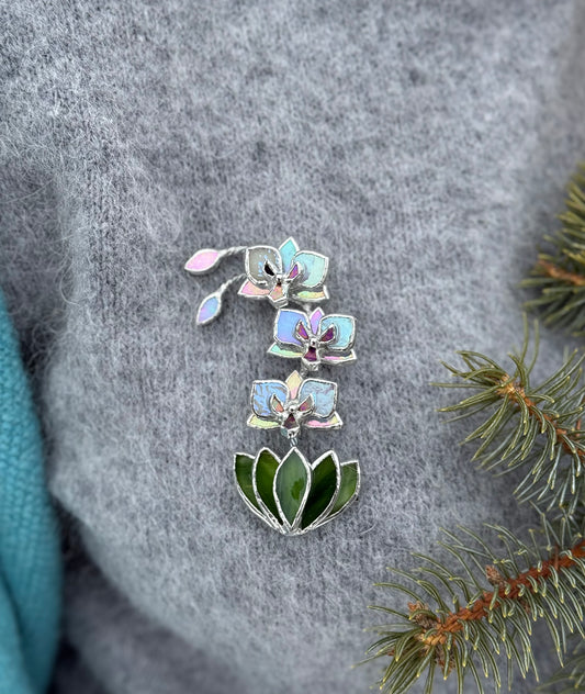 " . CHOOSE COLOR “Brooch Orchid 3 flowers” Stained glass tropical flower 3D, art jewelry
