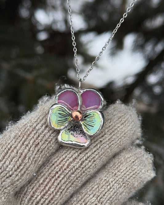 " . CHOOSE COLOR “NECKLACE Pansy flower” Stained glass tropical flower 3D, art jewelry