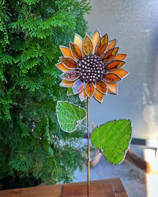 " . Amber Sunflower", stained glass tropical flower 3D, Sun catcher, Table plant decor, Garden stake, Outdoor and gardening, wedding Christmas gift