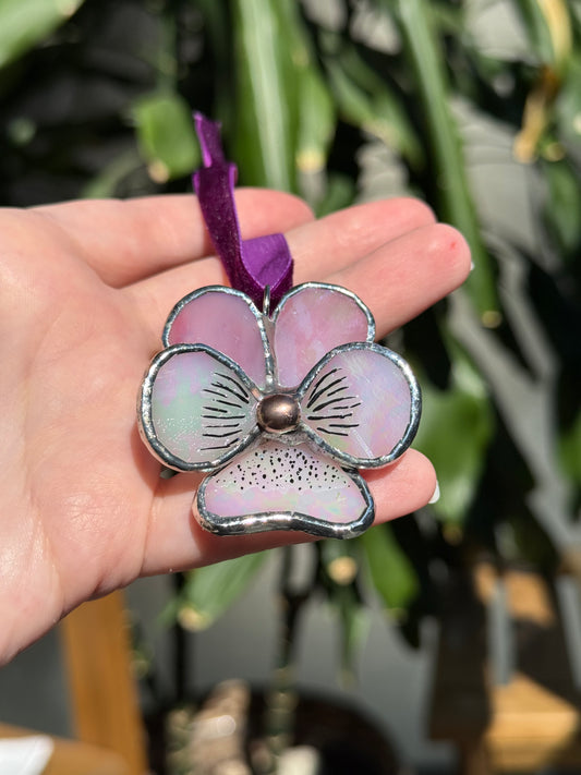 " . Pansy flower Lavender & Pink irid , Stained glass Decorative ORNAMENT, Christmas decoration, Suncatcher new
