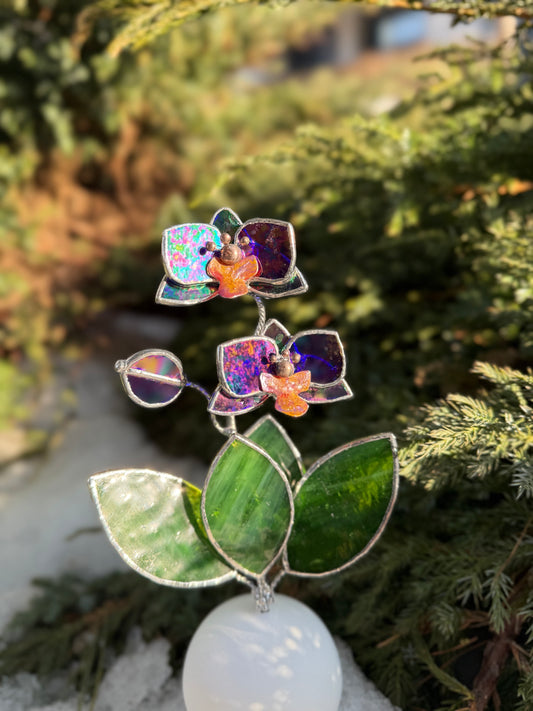 CHOOSE COLOR Orchid Stained Glass Stake for a Plant Pot, BotanicalDecor