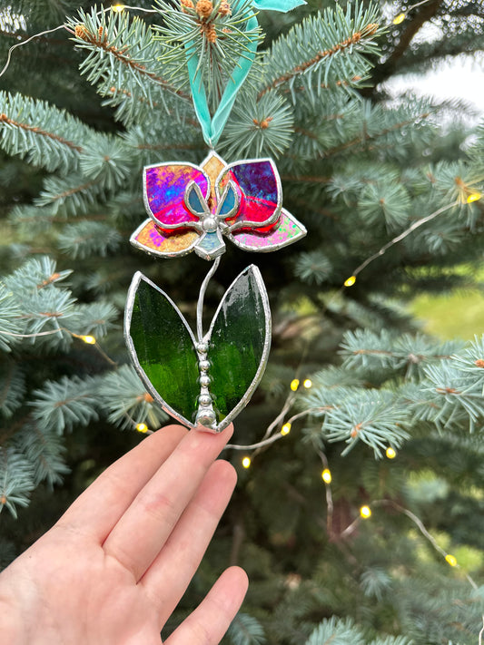 " . Christmas tree ornaments Orchid with leafs. Mix of 3, 5. Wall window decor, Stained glass Holiday decorations lights