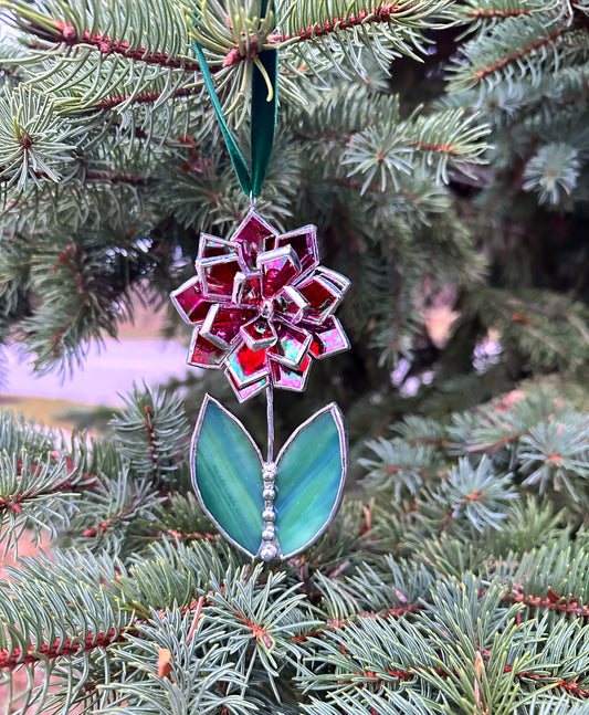 Christmas tree ornament Orchid Red iridescent. Set of 1, 3, 5, 7, 10. Stained glass Wall window decor, holiday decorations, lights