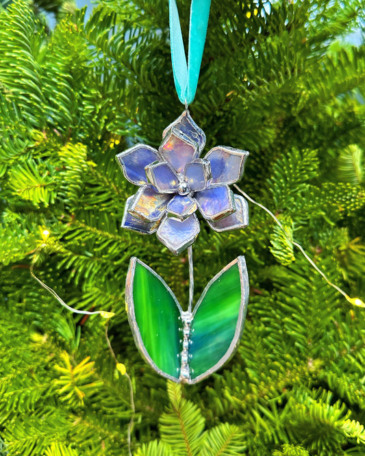 Christmas tree ornament Flower Lavender iridescent Set of 1, 3, 5, 7, 10. Stained glass Wall window decor, holiday decorations, lights