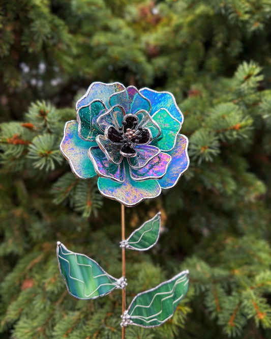 " . Beautiful Peony Turquoise Iridescent" Stained glass tropical flower 3D, Sun catcher, Table plant, Garden stake, wedding decor, Christmas gift