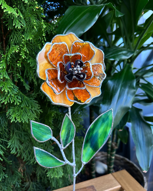 • " . Amber Sunflower", stained glass tropical flower 3D, Sun catcher, Table plant decor, Garden stake, Outdoor and gardening, wedding Christmas gift