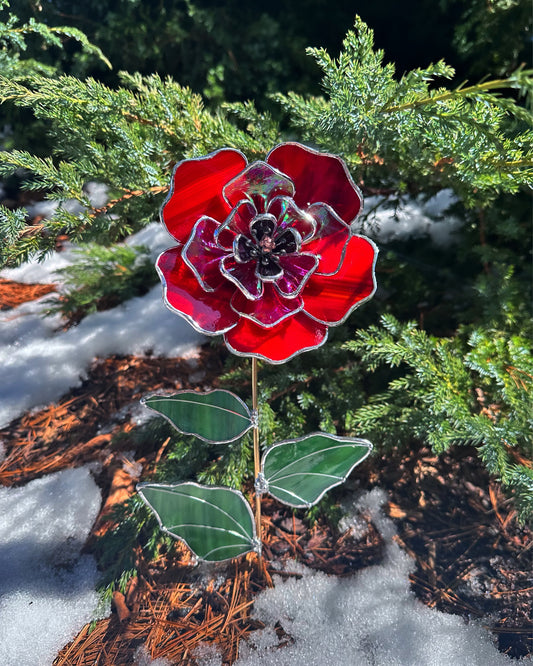 " . Beautiful Red Peony Iridescent", Stained glass tropical flower 3D, Sun catcher, Table plant decor, Garden stake, wedding decor, Christmas gift poppy