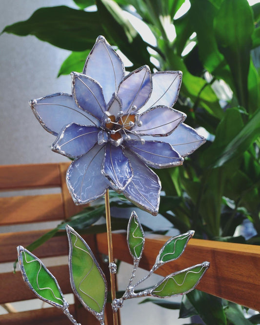 • " .  Blue lavender Peony Iridescent" Stained glass tropical flower 3D, Sun catcher, Table plant, Garden stake, wedding decor, Christmas gift, available