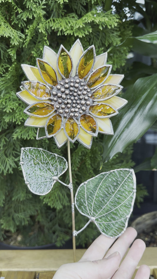 Sunflower Amber, 3D Stained Glass Suncatcher, Botanical Modern Art