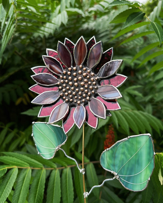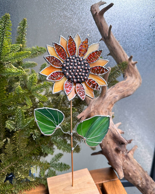 ".Sunflower Dark Amber", stained glass tropical flower 3D, Sun catcher, Table plant decor, Garden stake, Outdoor and gardening, wedding Christmas gift