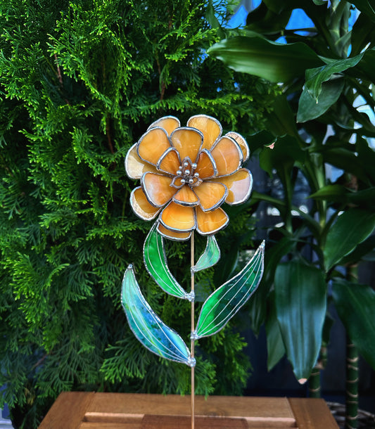 " . Sunflower Light Amber", stained glass tropical flower 3D, Sun catcher, Table plant decor, Garden stake, Outdoor and gardening, wedding Christmas gift