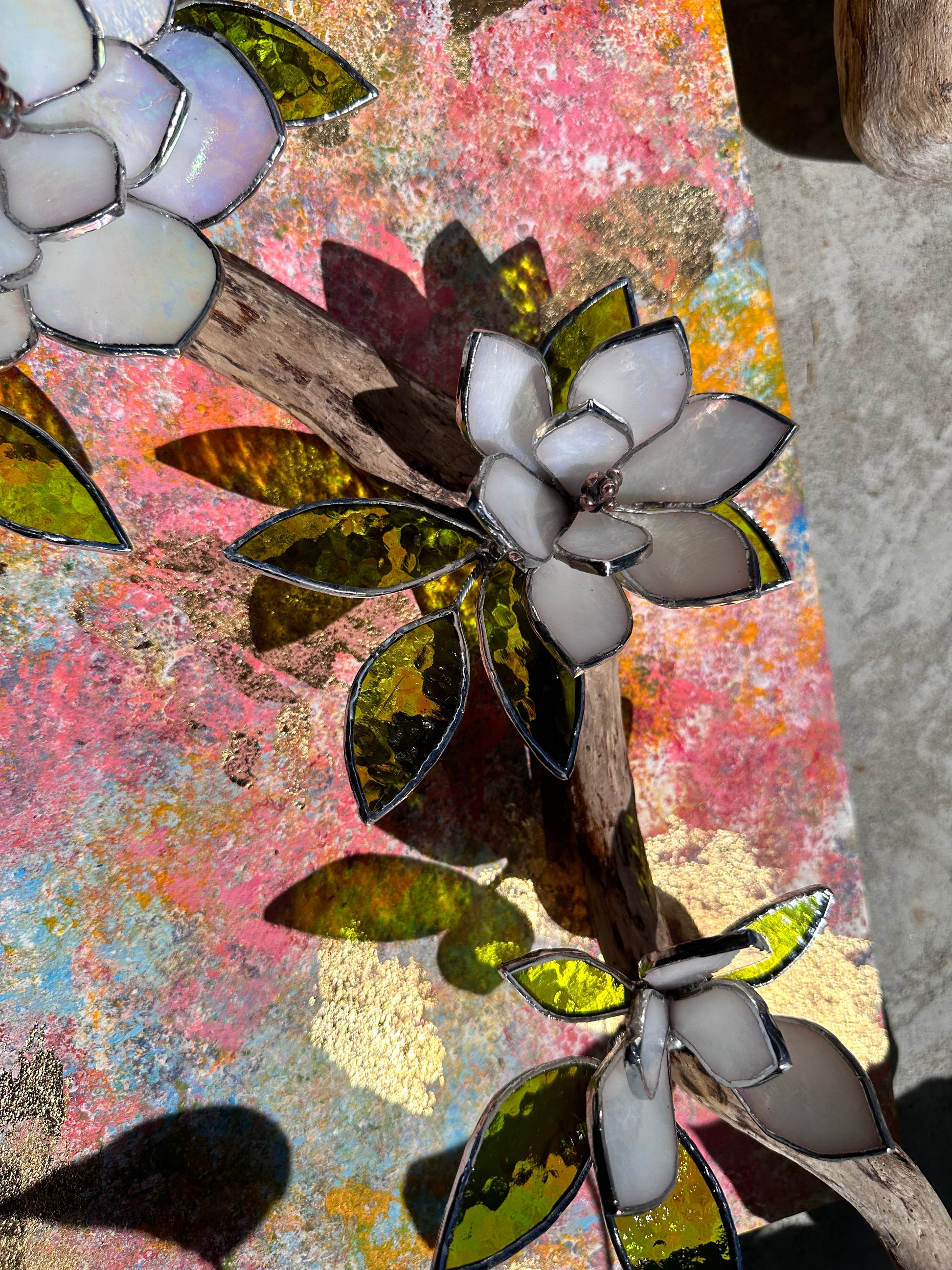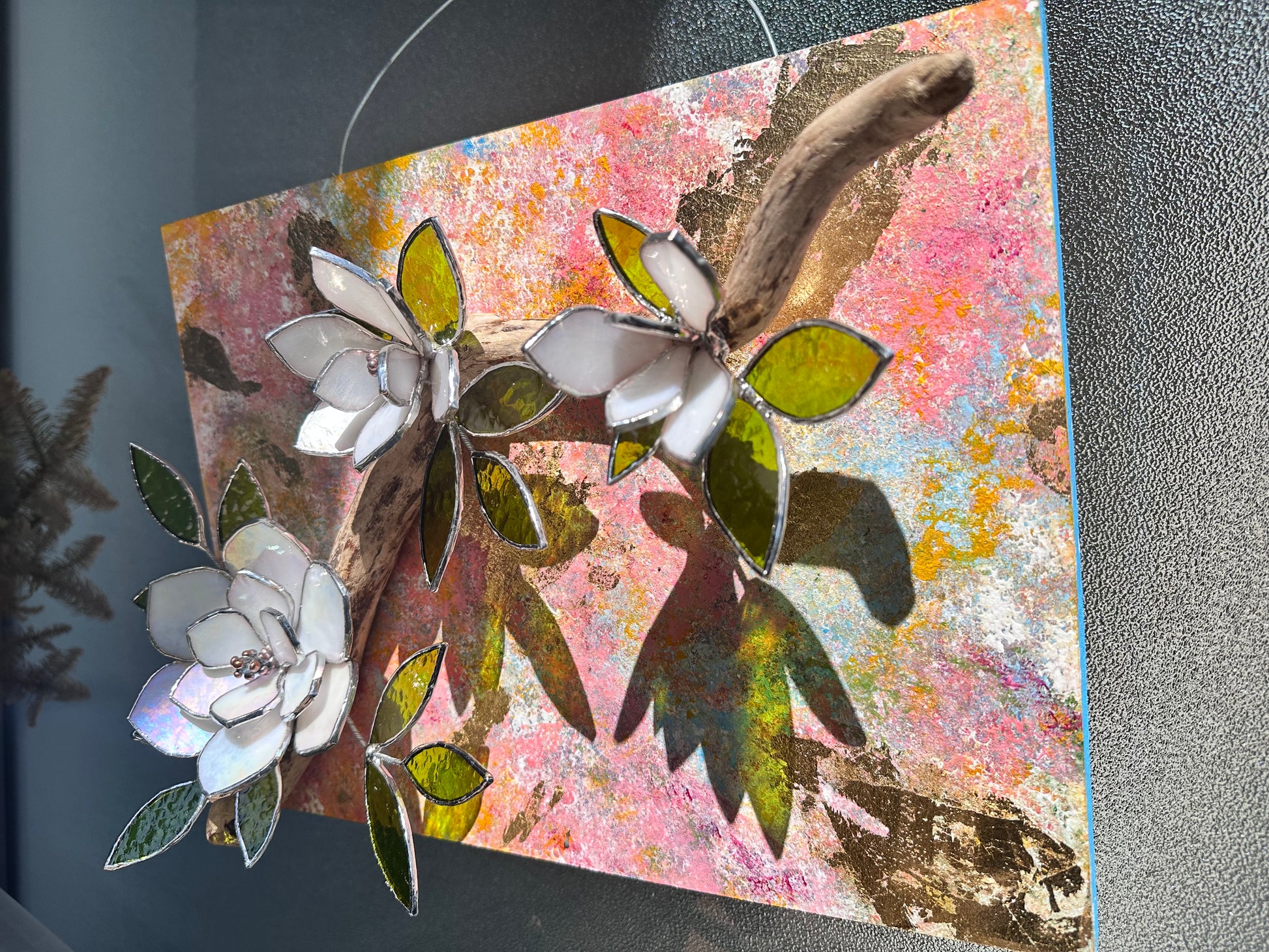 ". Acrylic painting ‘Spring white Magnolia’ with stained glass 3D flowers, Wall decor, Wedding, Christmas gift