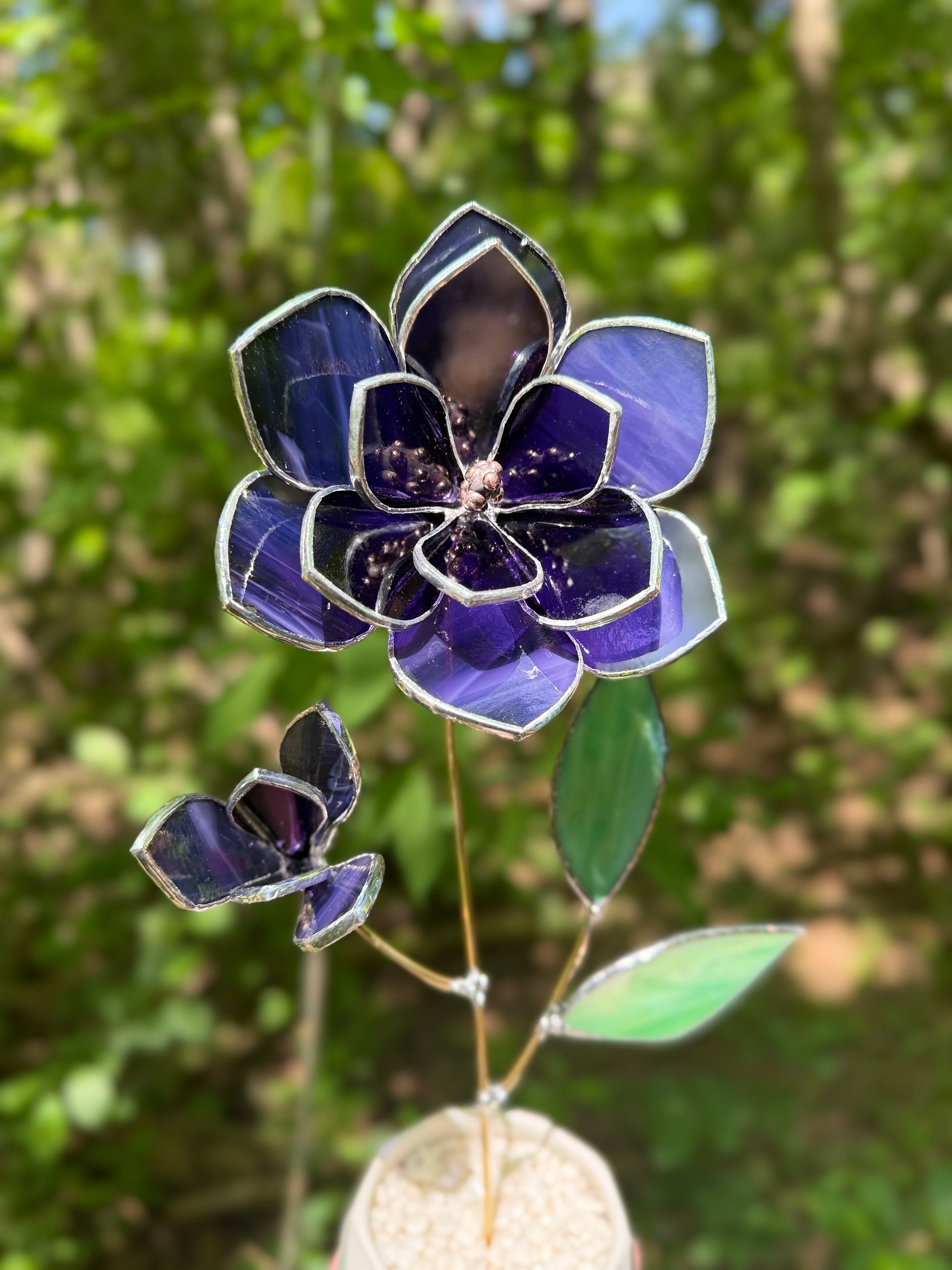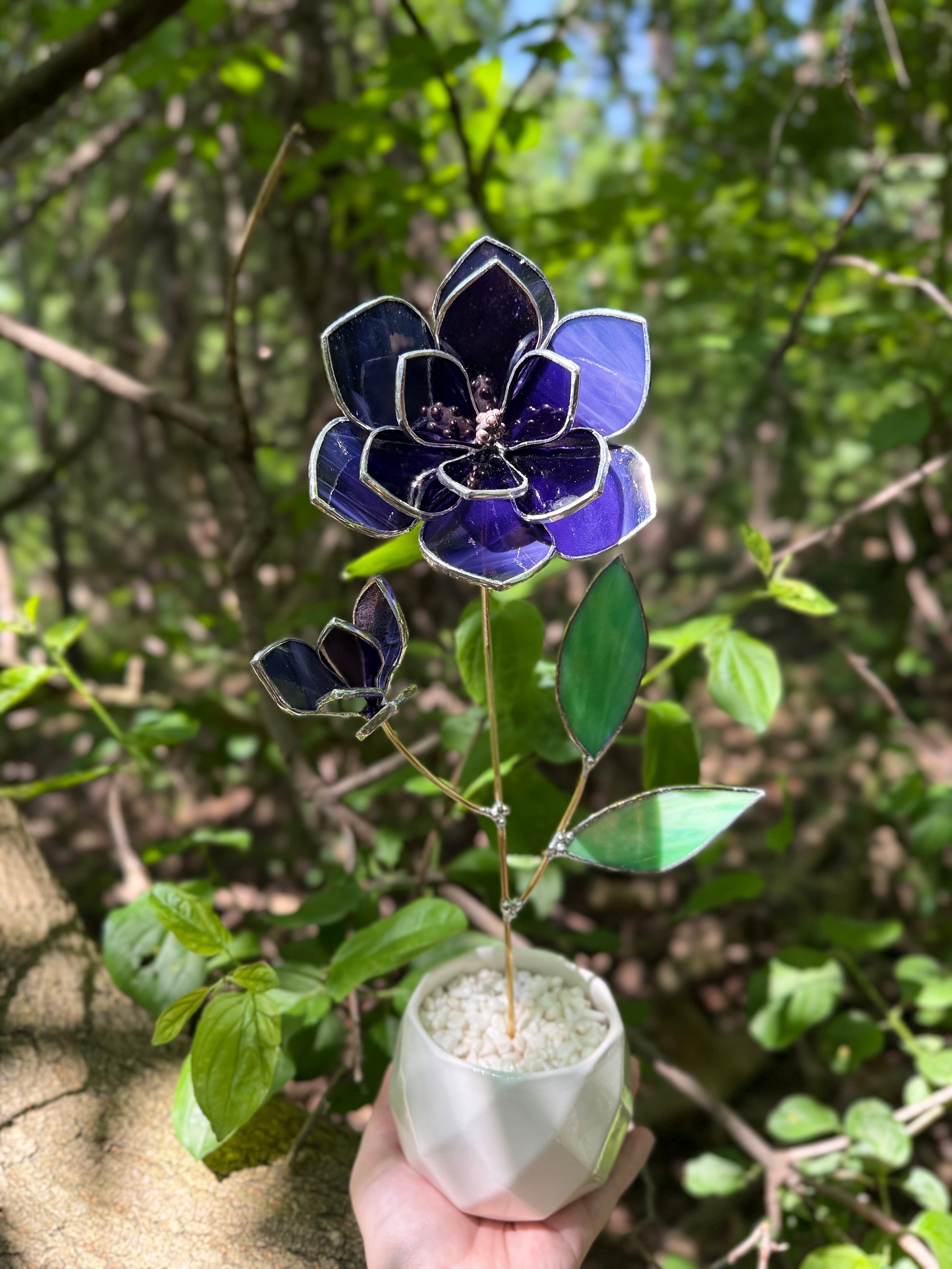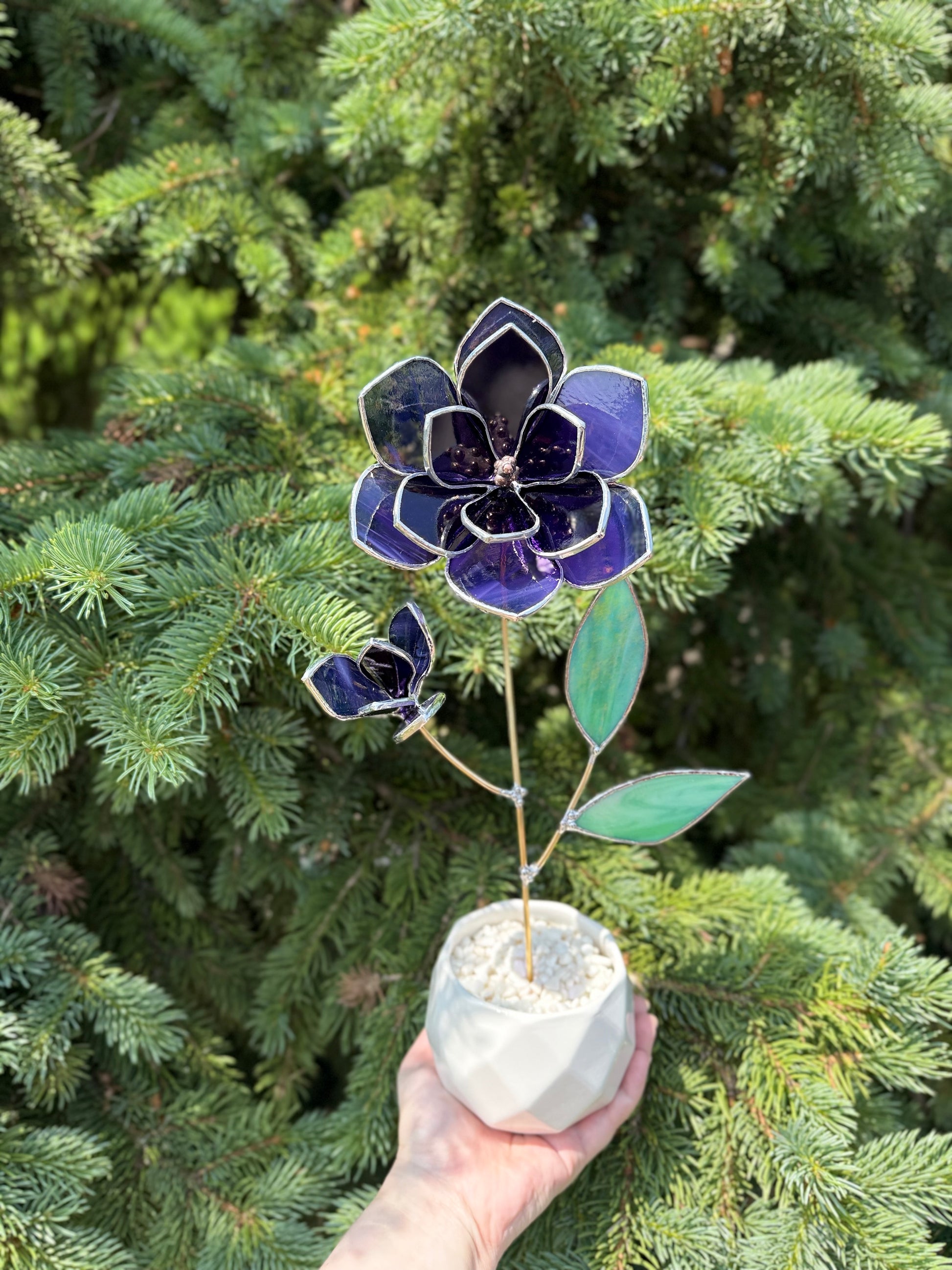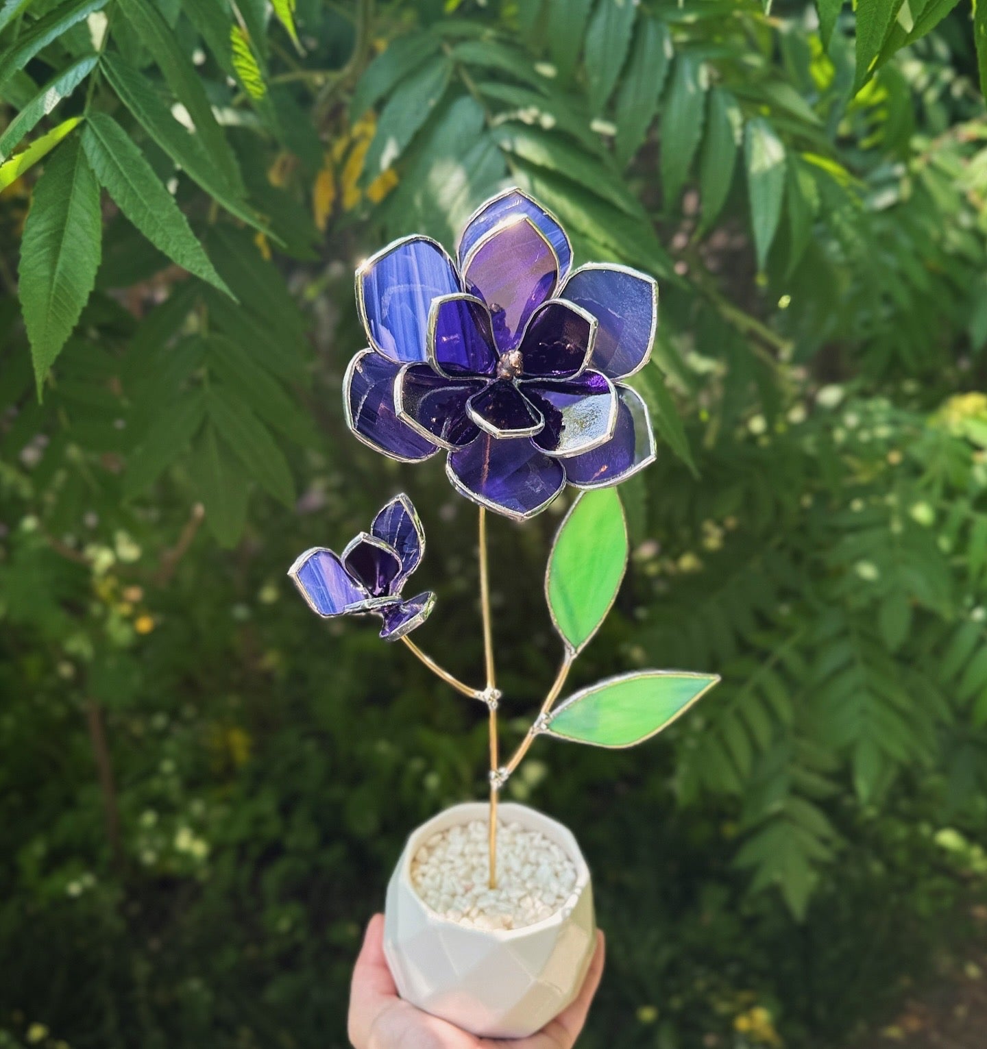 " . Amethyst Magnolia flower with a bud", Stained glass tropical flower 3D, Sun catcher, Table plant decor, wedding Christmas gift sale