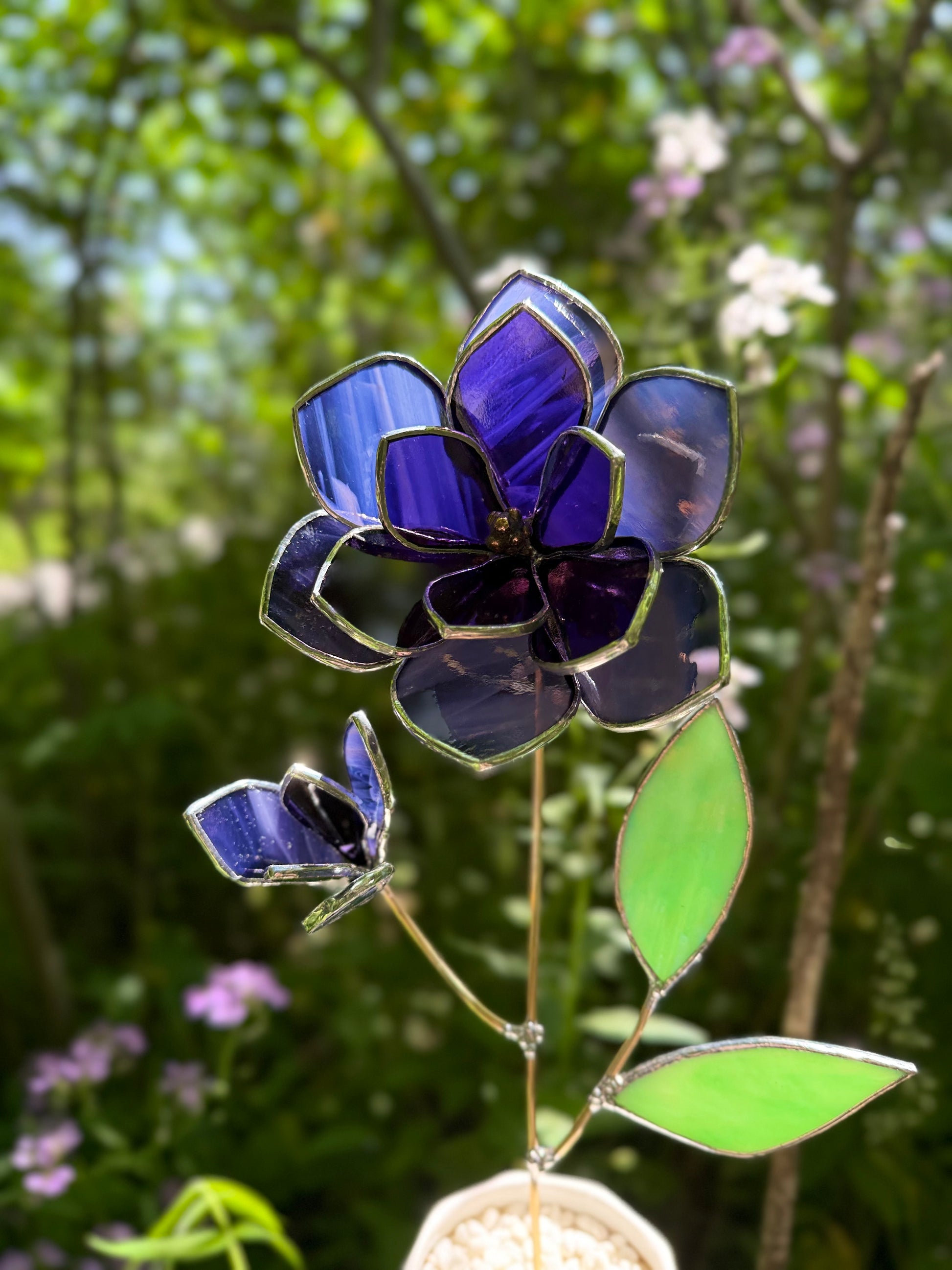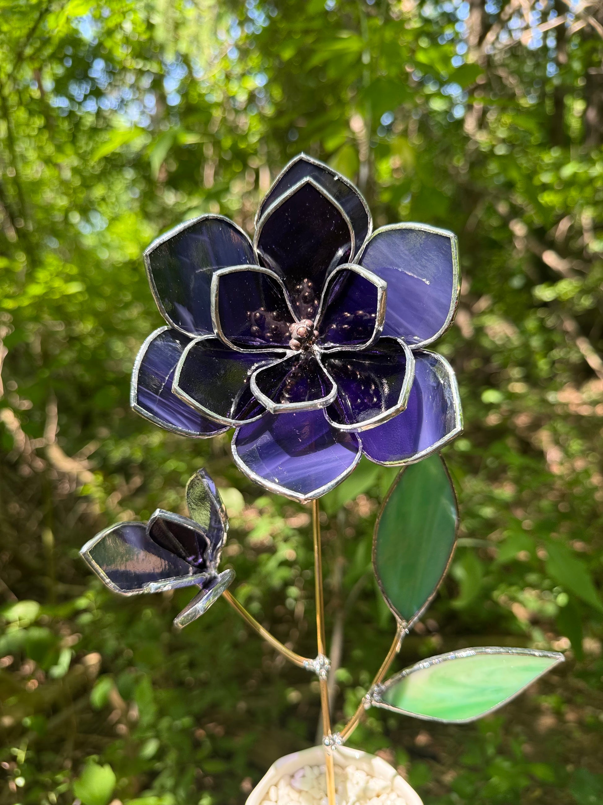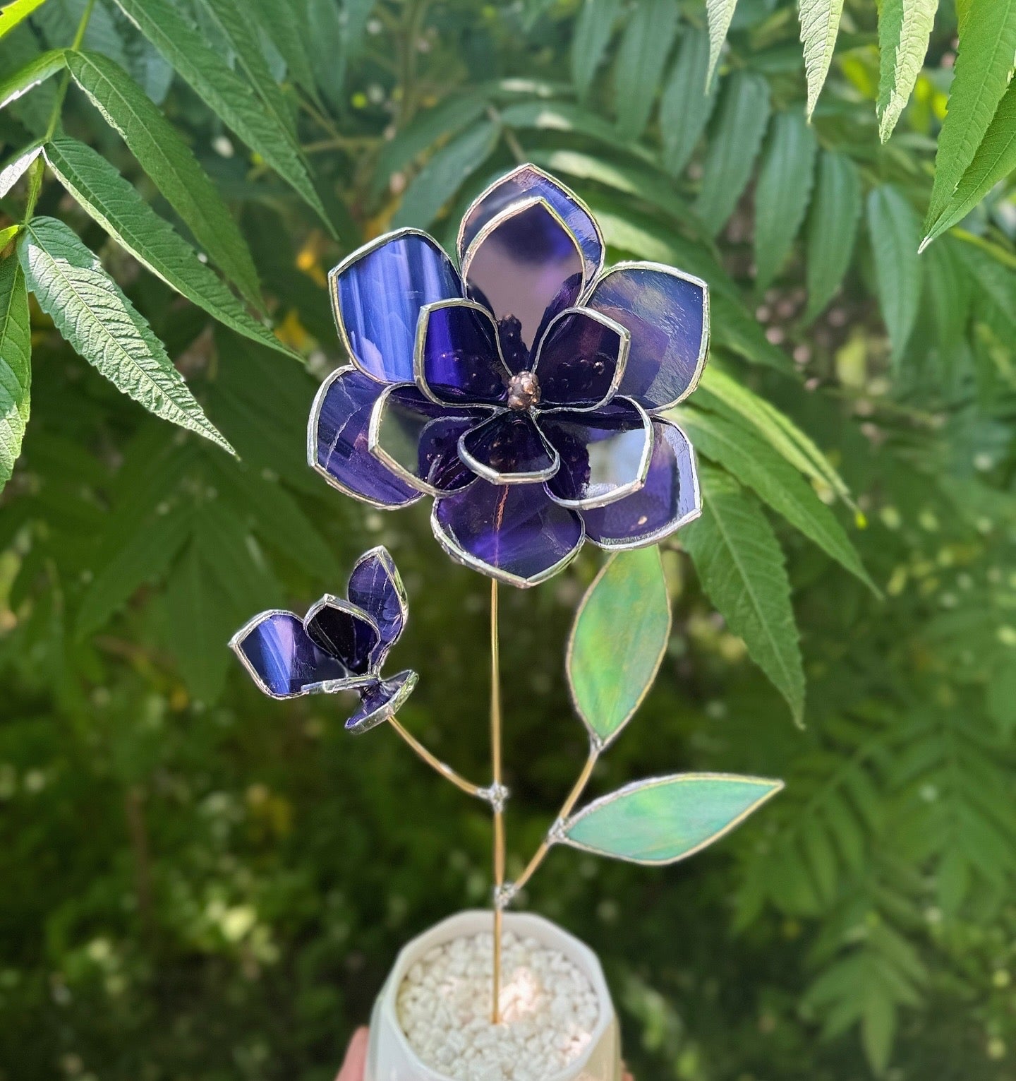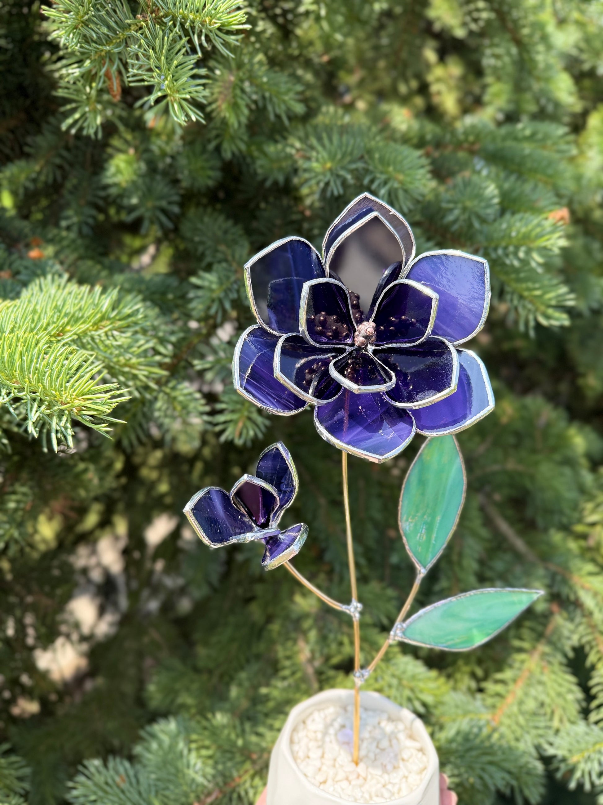 " . Amethyst Magnolia flower with a bud", Stained glass tropical flower 3D, Sun catcher, Table plant decor, wedding Christmas gift sale