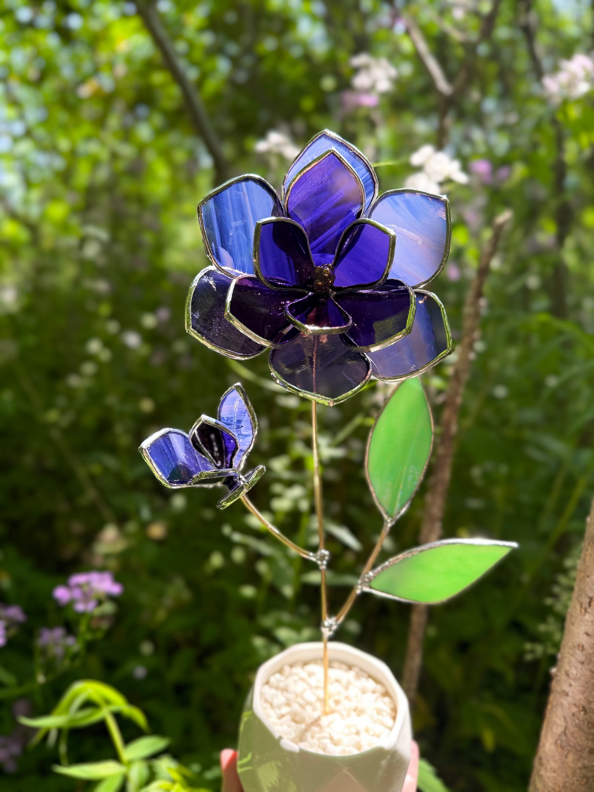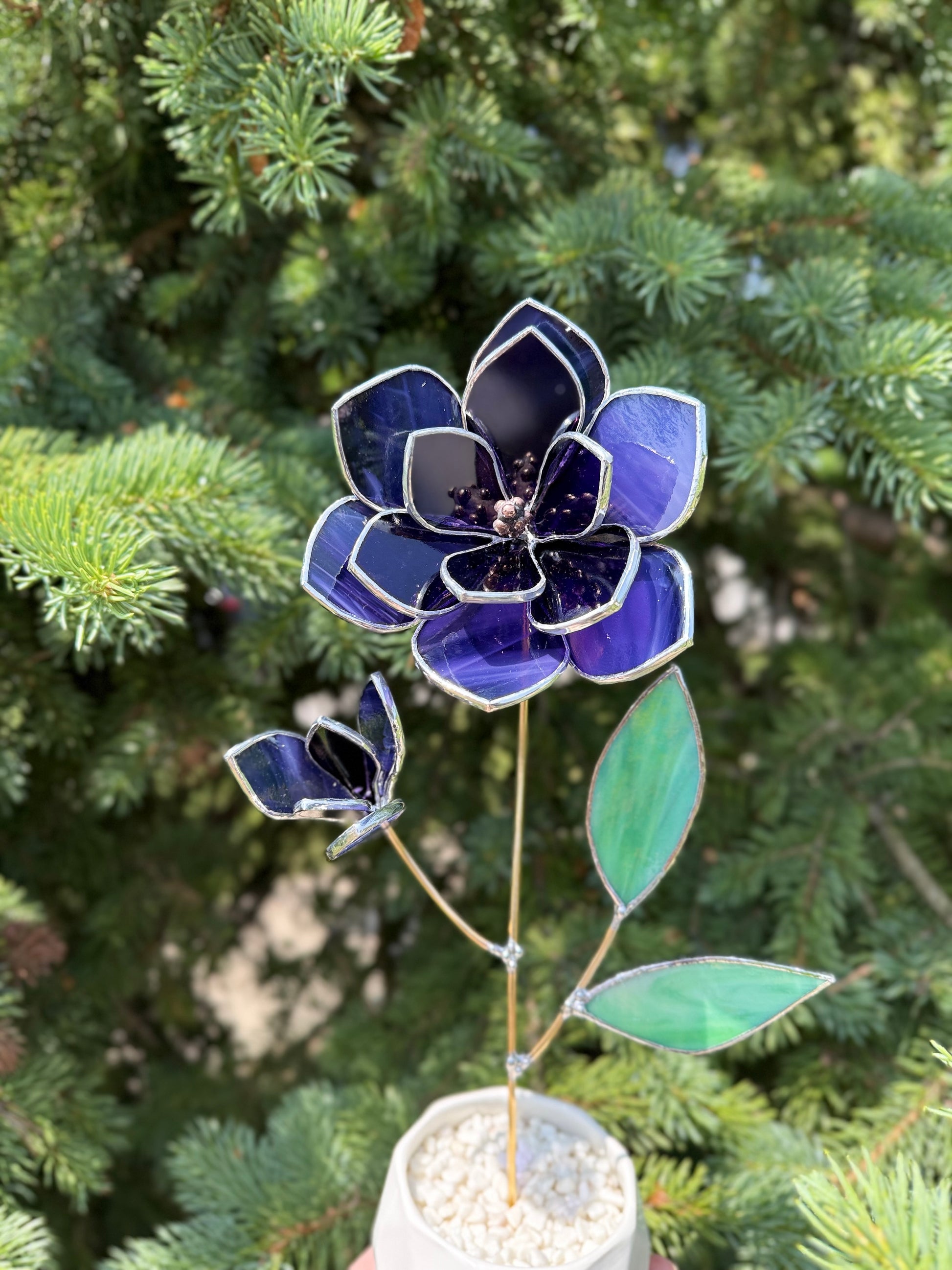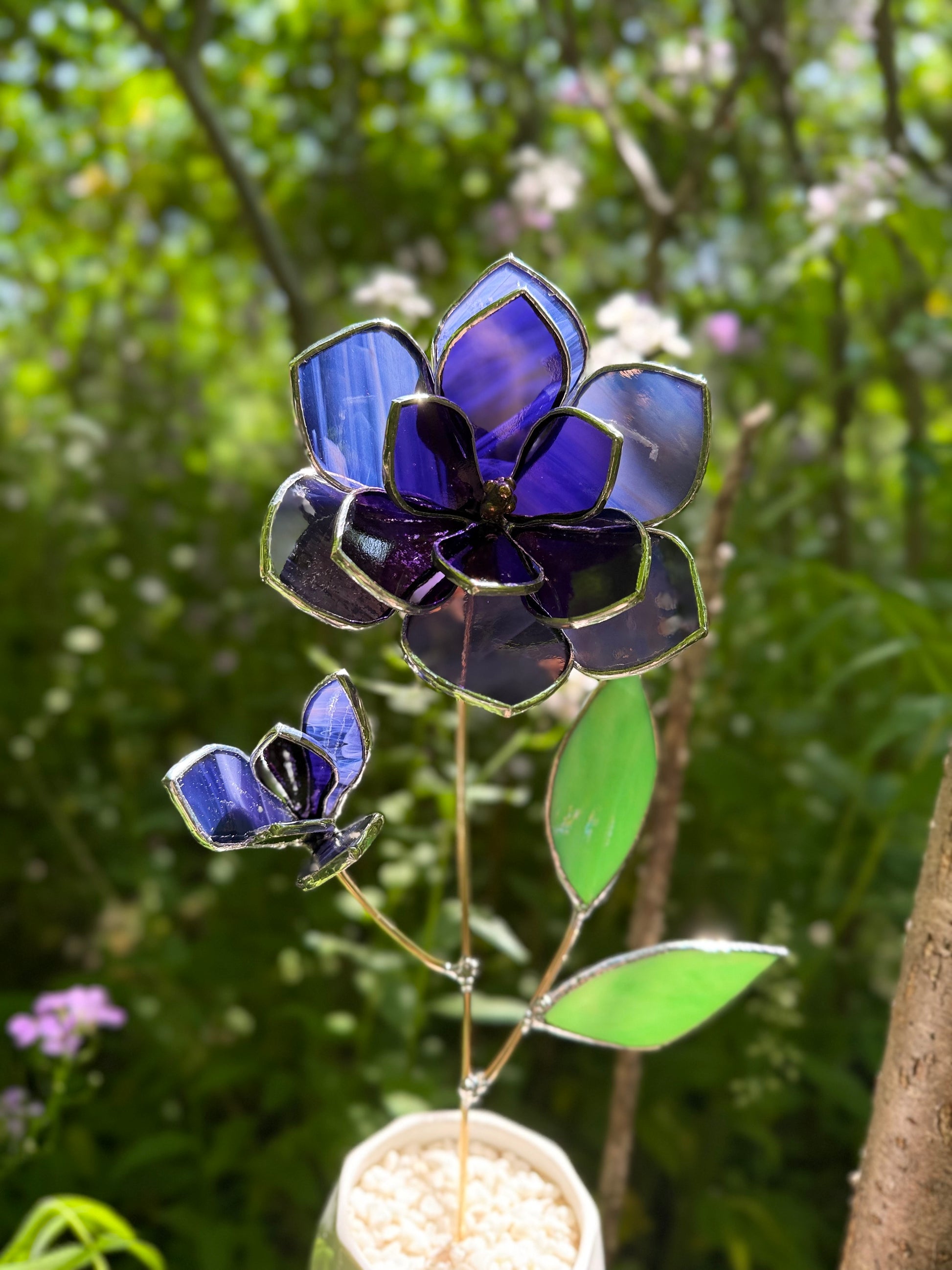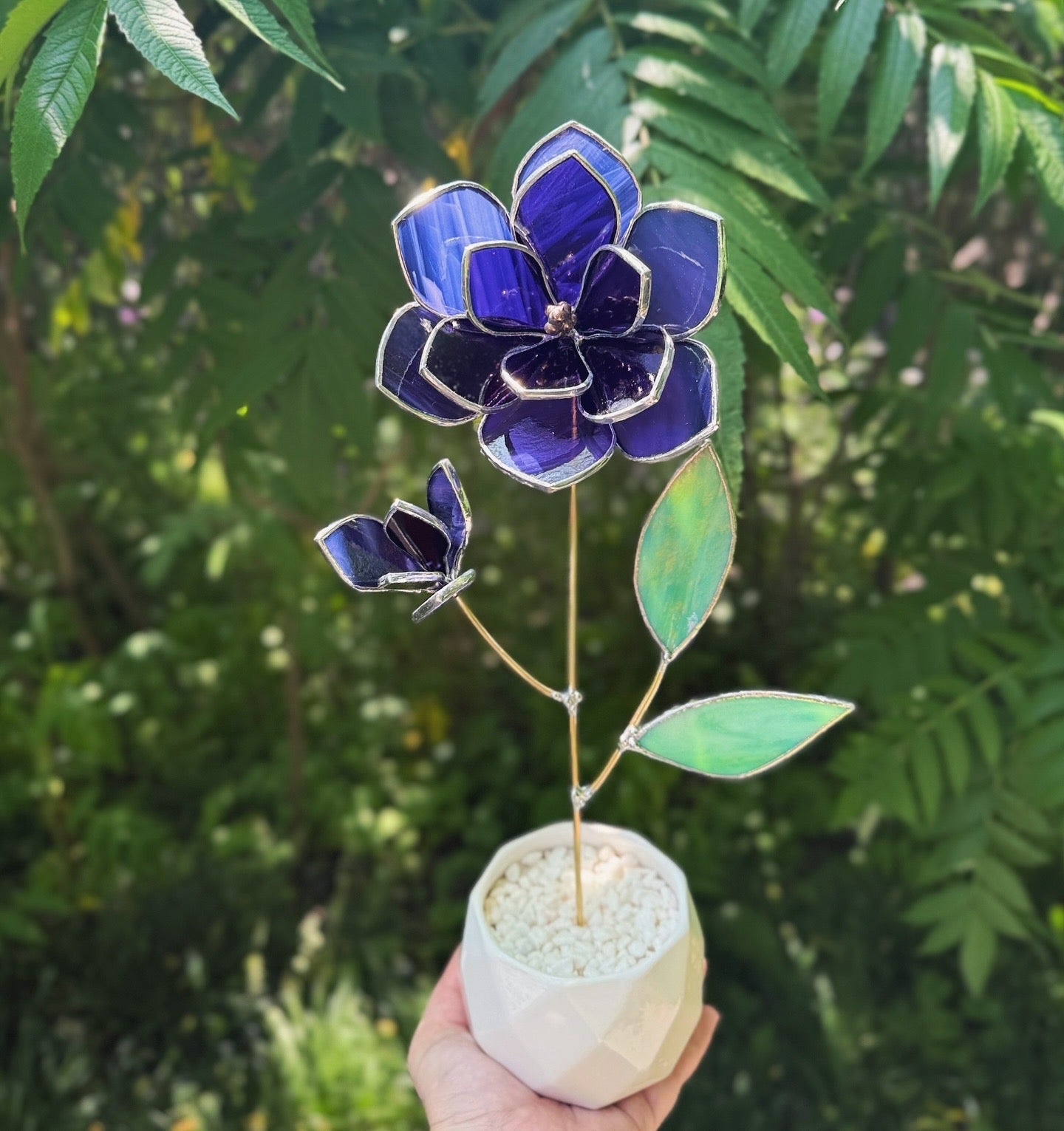 " . Amethyst Magnolia flower with a bud", Stained glass tropical flower 3D, Sun catcher, Table plant decor, wedding Christmas gift sale