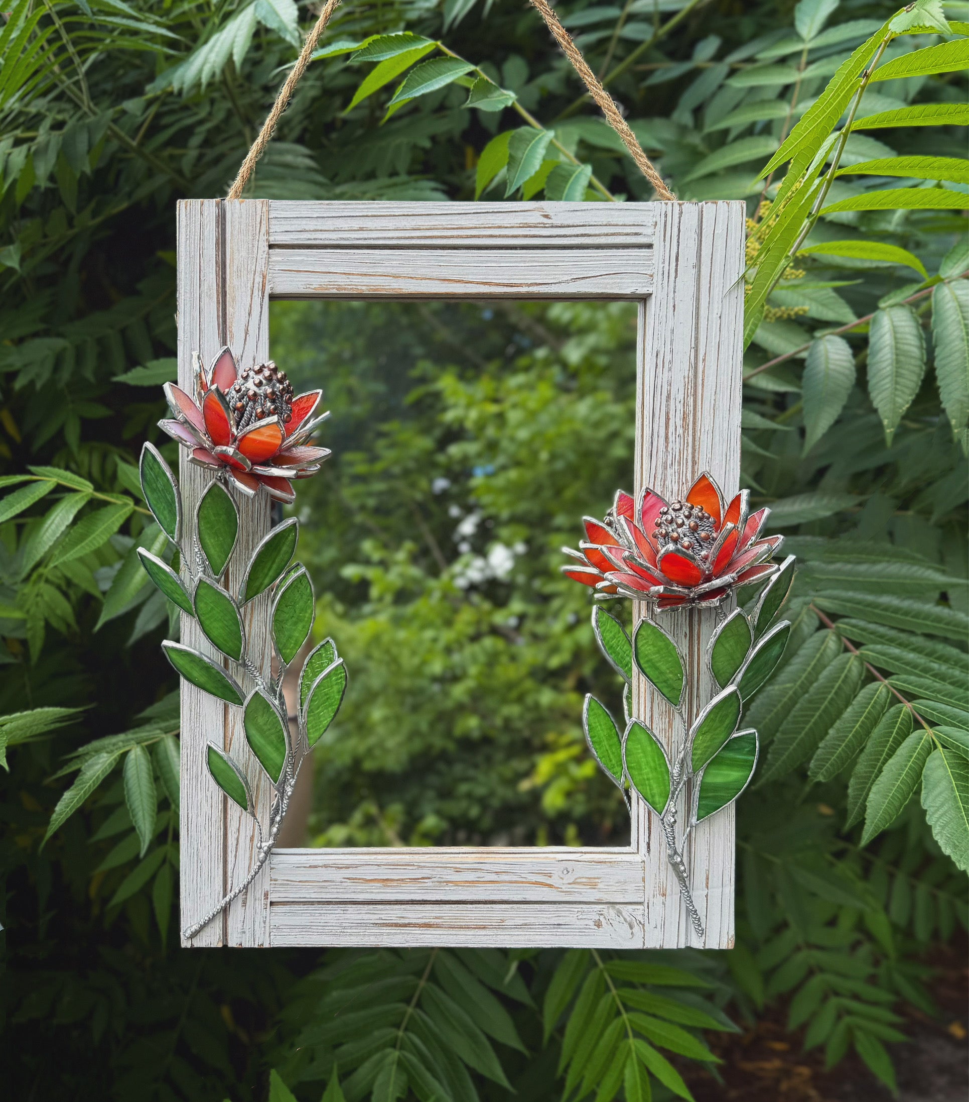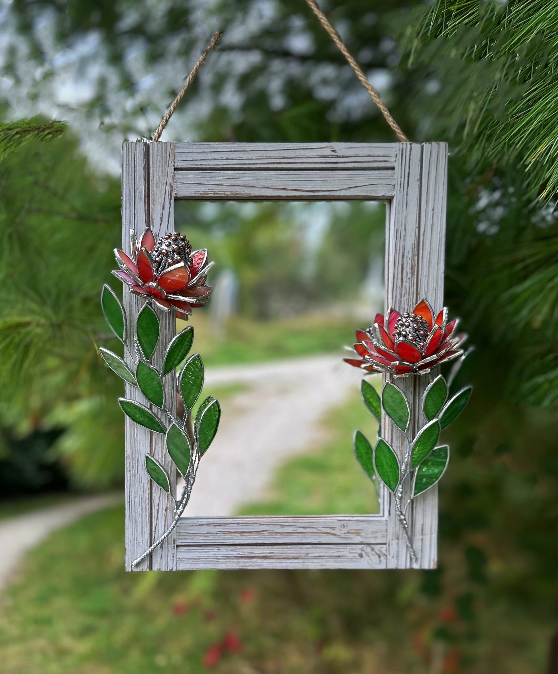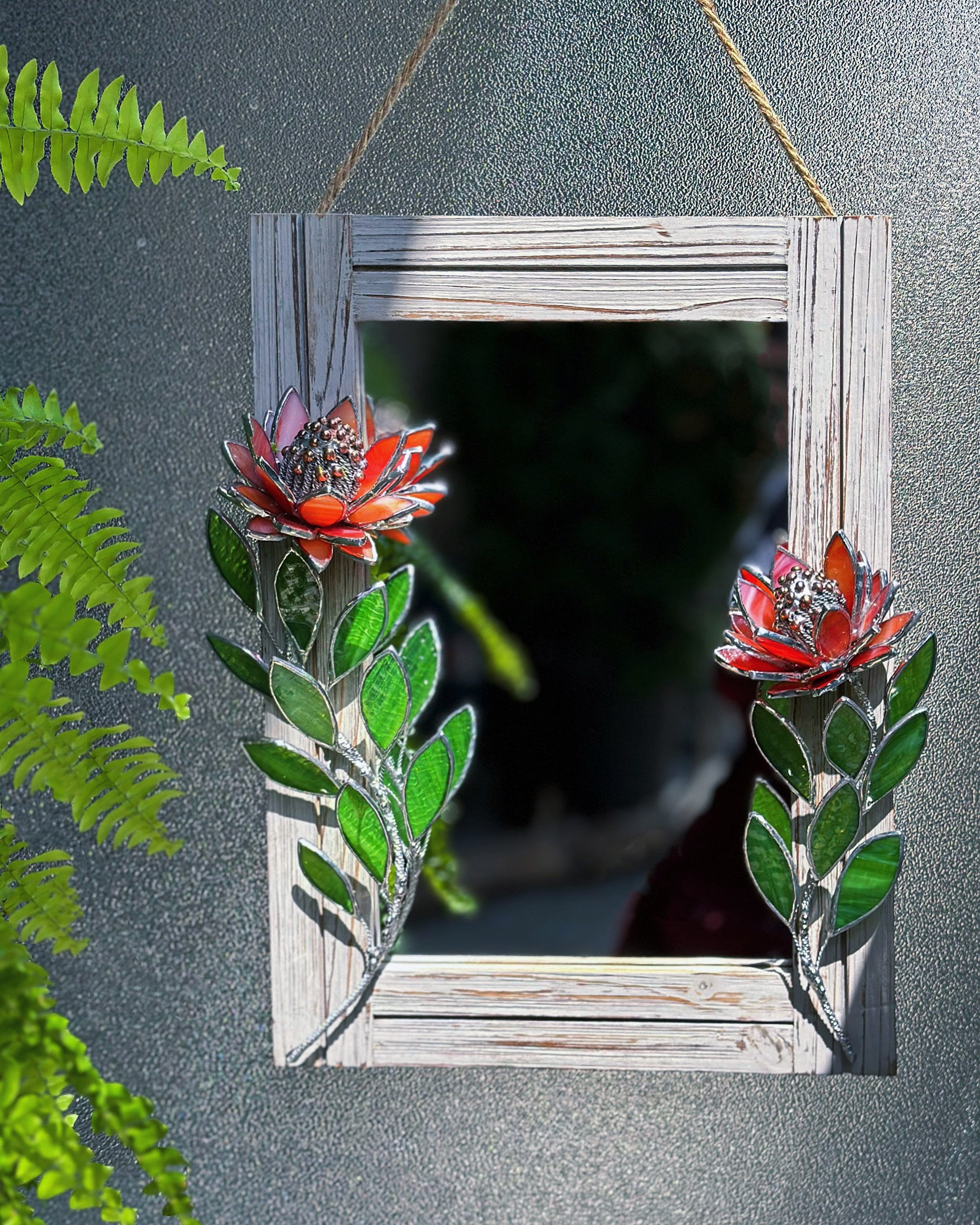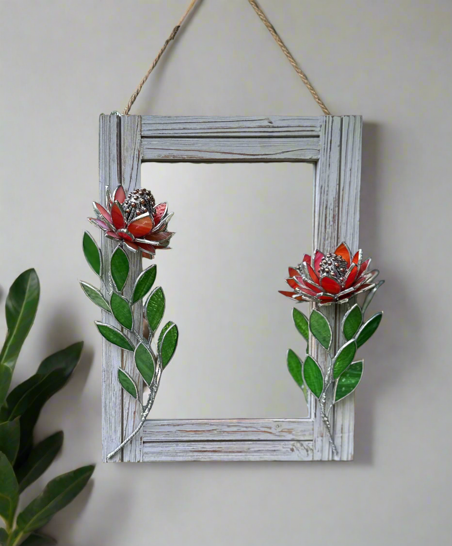 " . Red iridescent Protea Flower Mirror, Stained glass Wedding Wall Decor, Christmas gift, Suncatcher, available sale