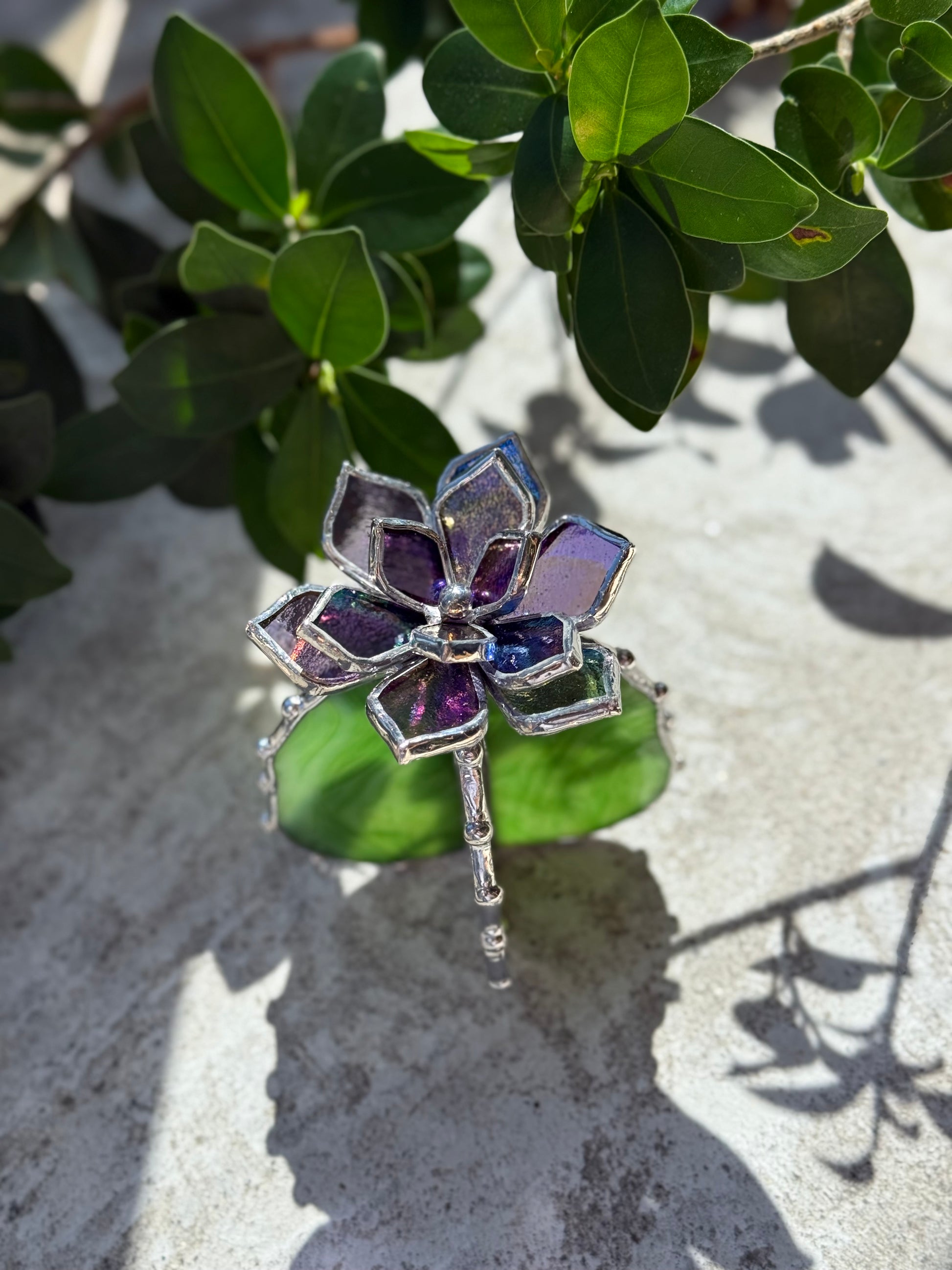 "Cactus Purple transparent irid & green irid" Stained glass Succulent 3D design, house plant for flower pot, Sun catcher