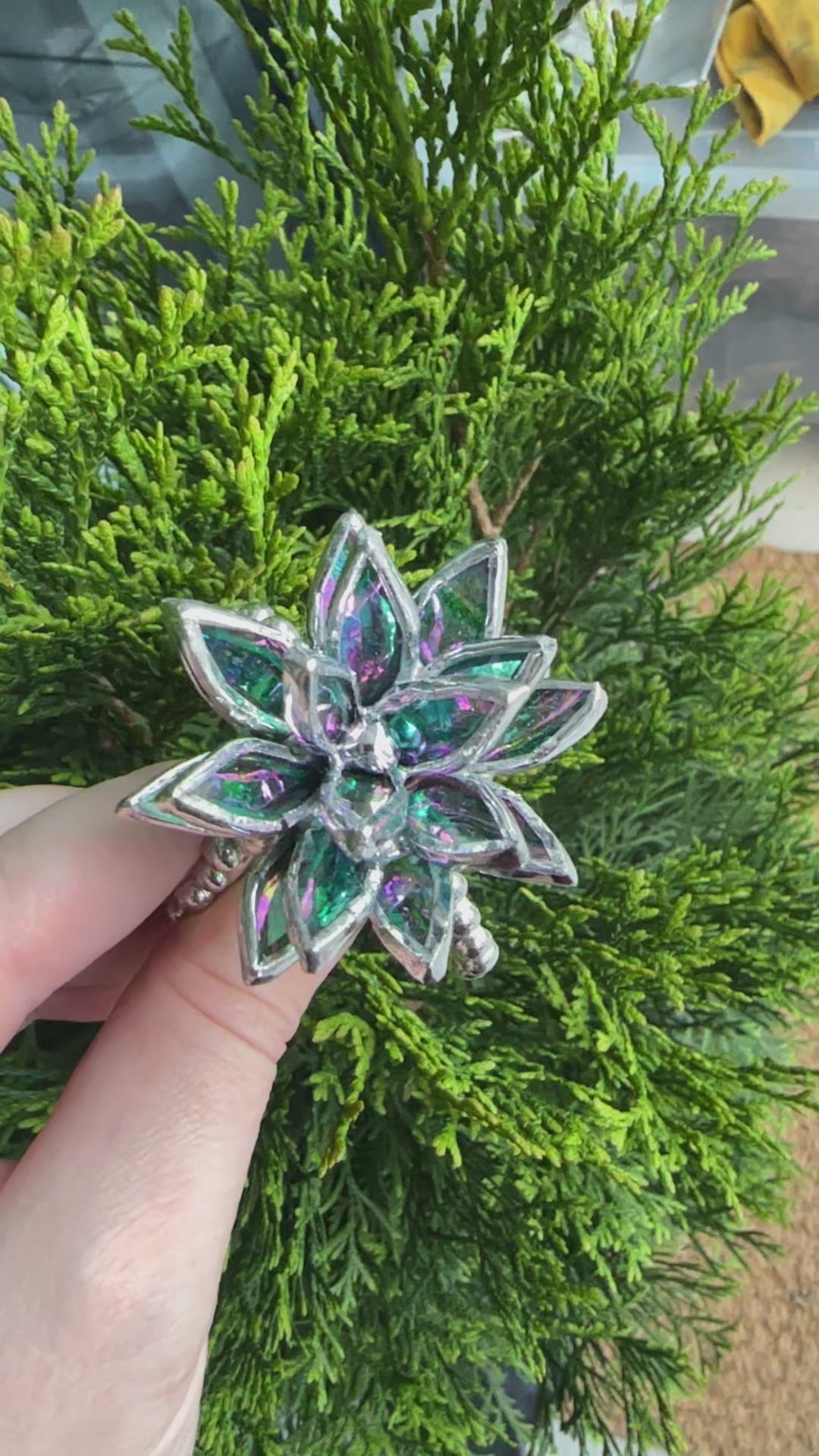 "Cactus turquoise Iridescent M", Stained glass Succulent 3D design, Mother’s Day gift, house plant for flower pot, Sun catcher, glass art