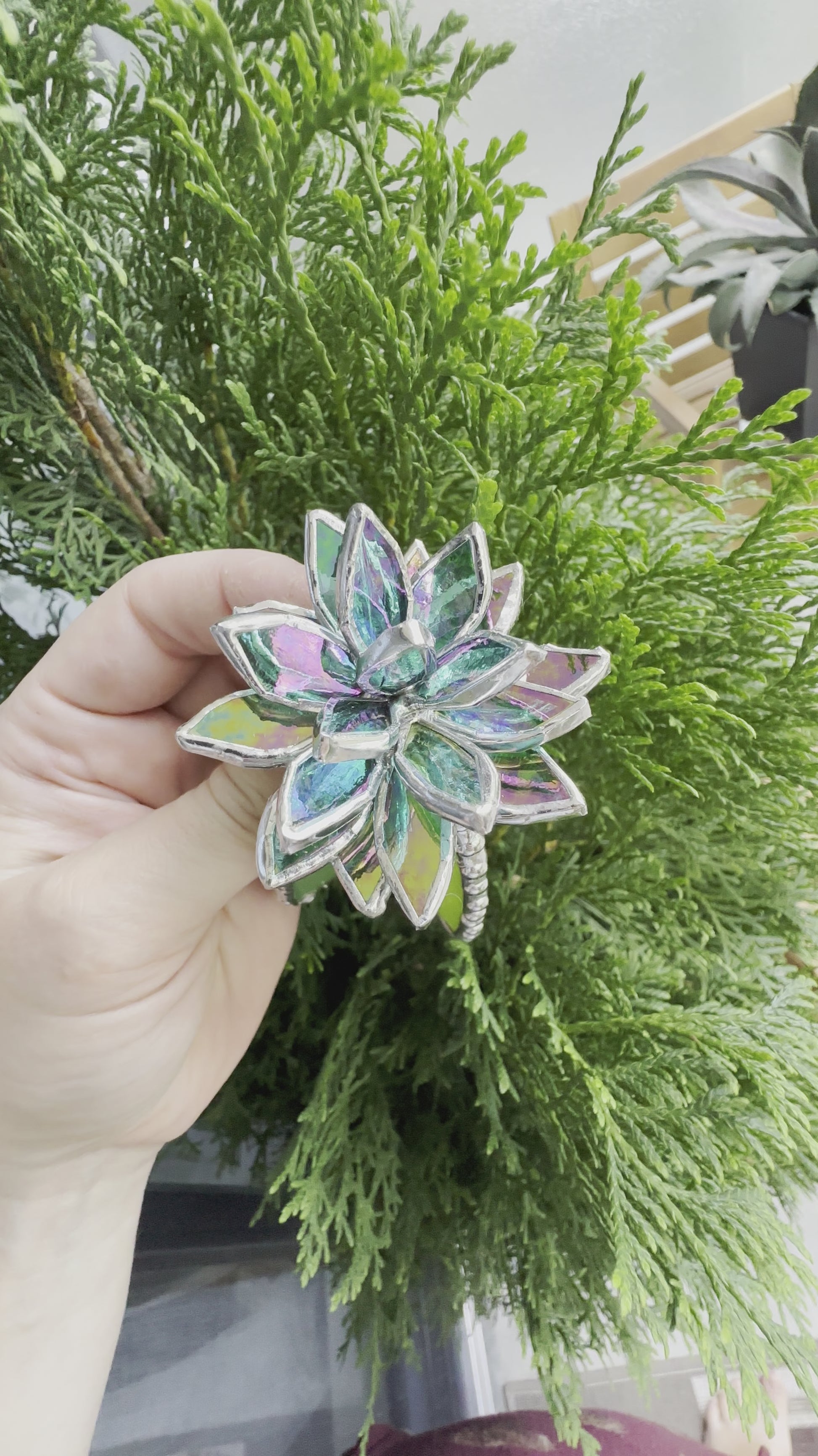 "Cactus Turquoise Iridescent", Stained glass Succulent 3D design, Mother’s Day gift, house plant for flower pot, Sun catcher, glass art