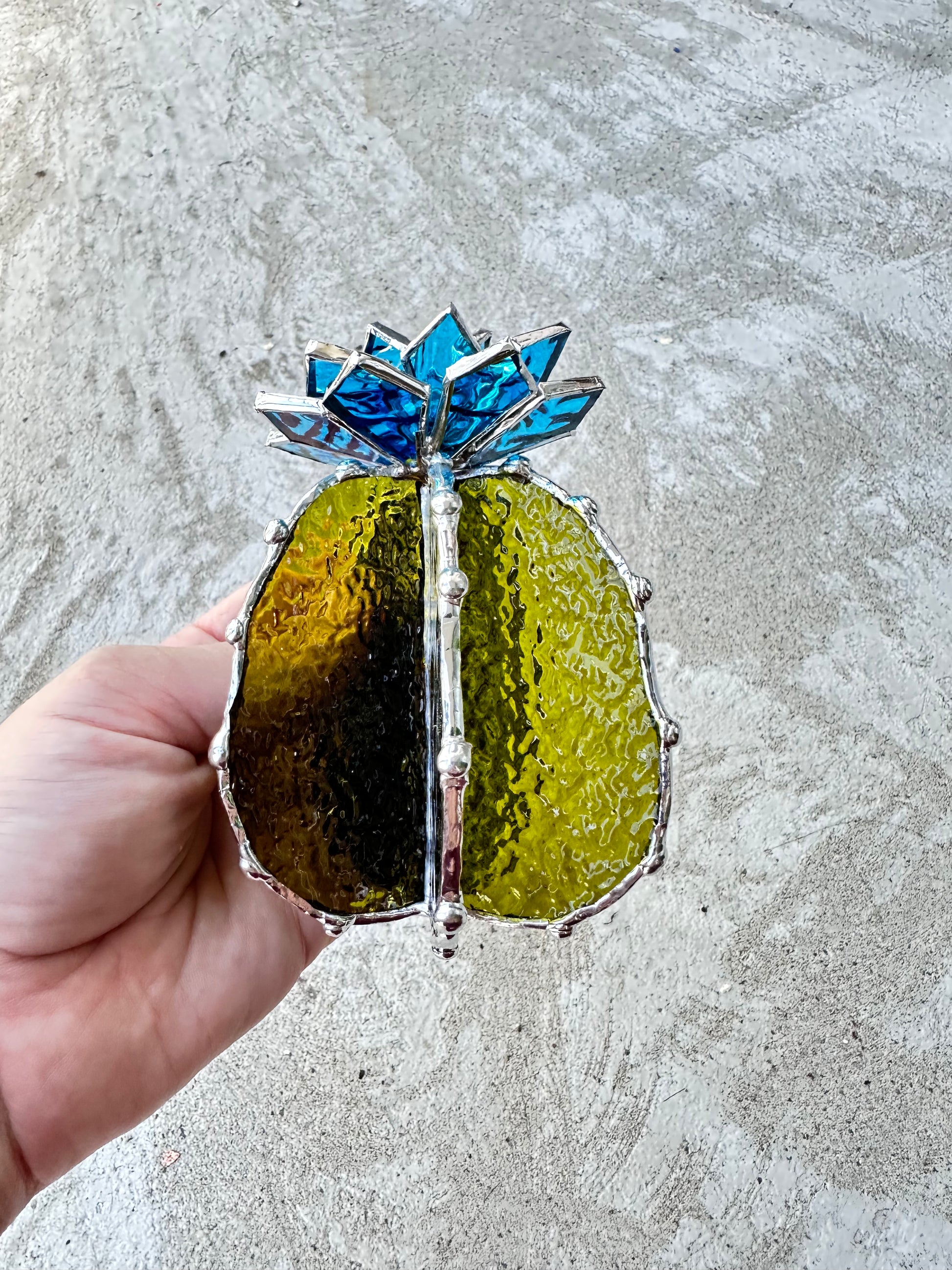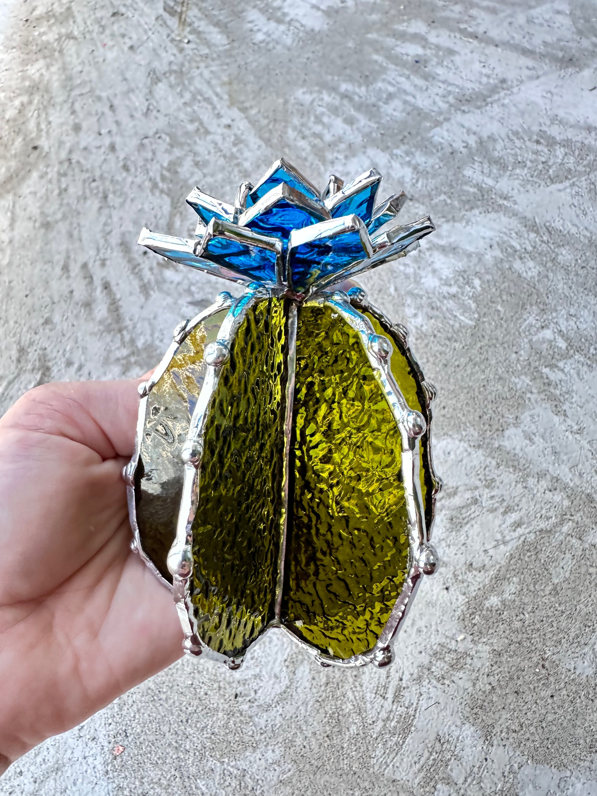Handcrafted with great skill and love stained glass Cactus Succulent plant made of colourful art glass soldered using copper foil and tin with Tiffany technique.
