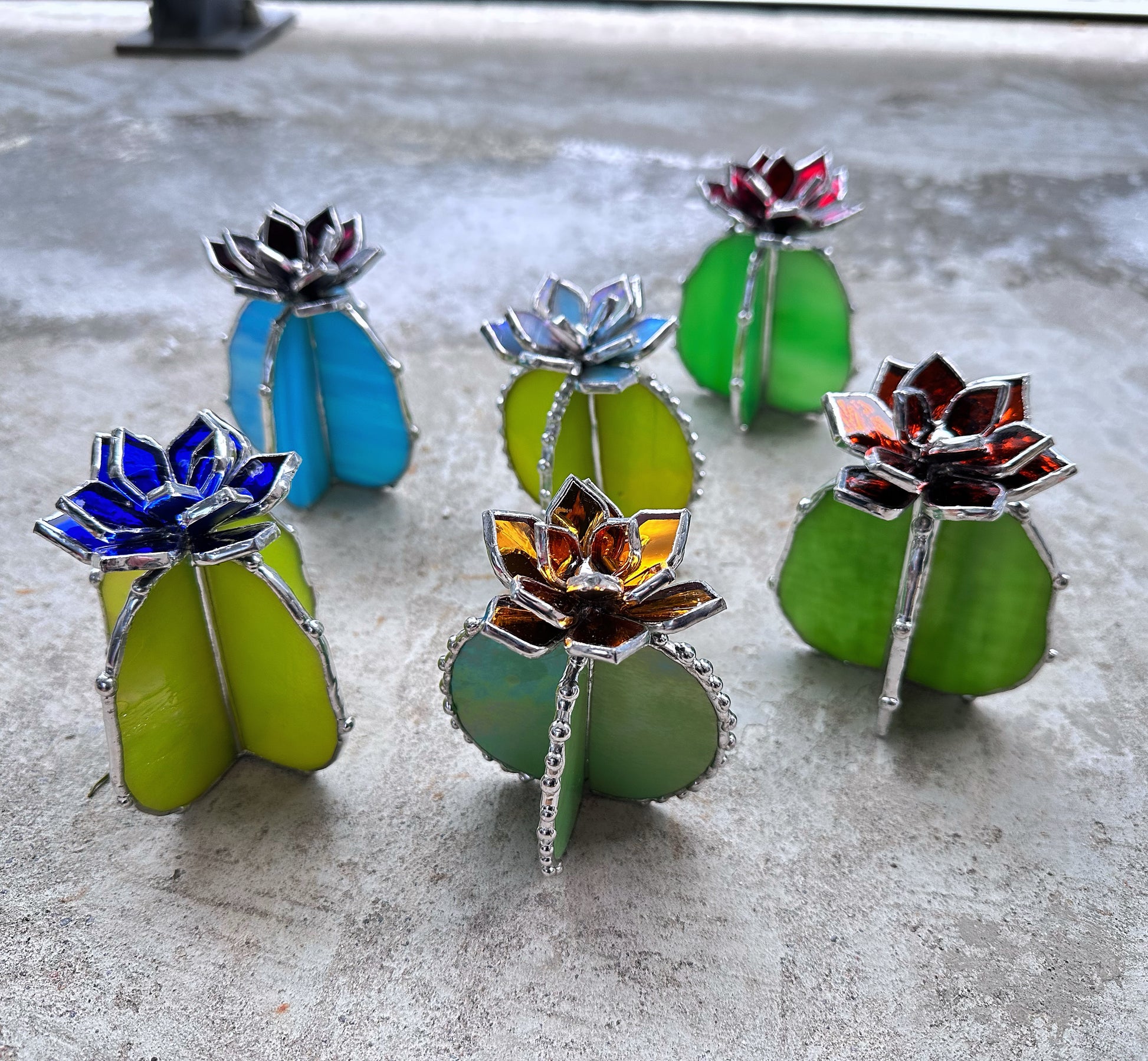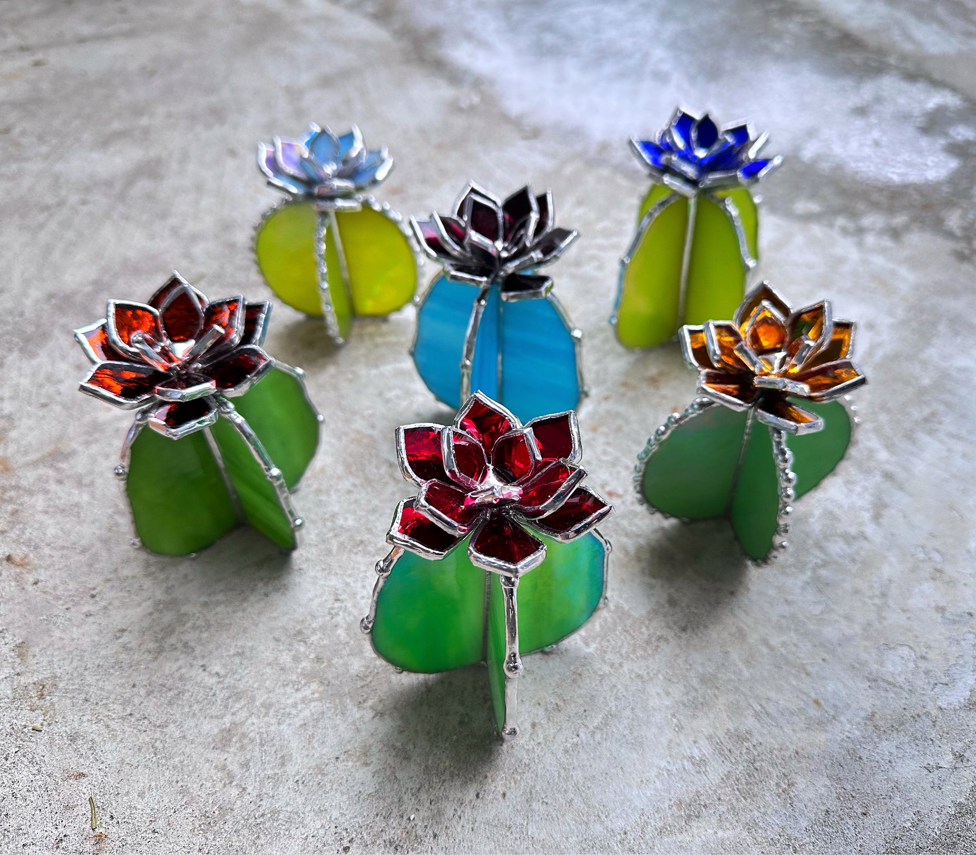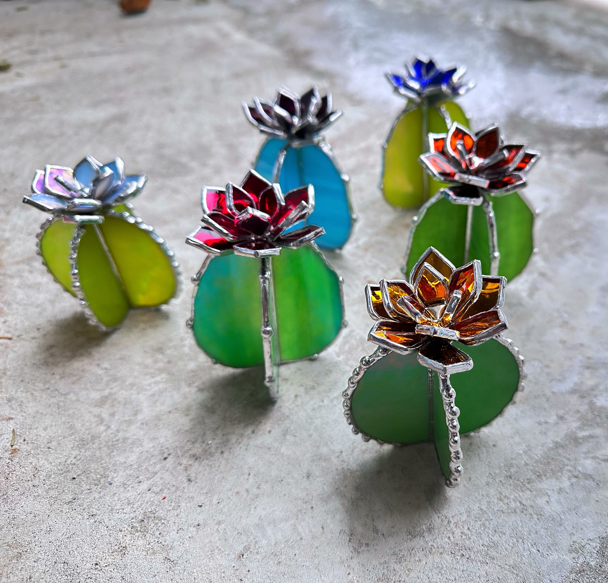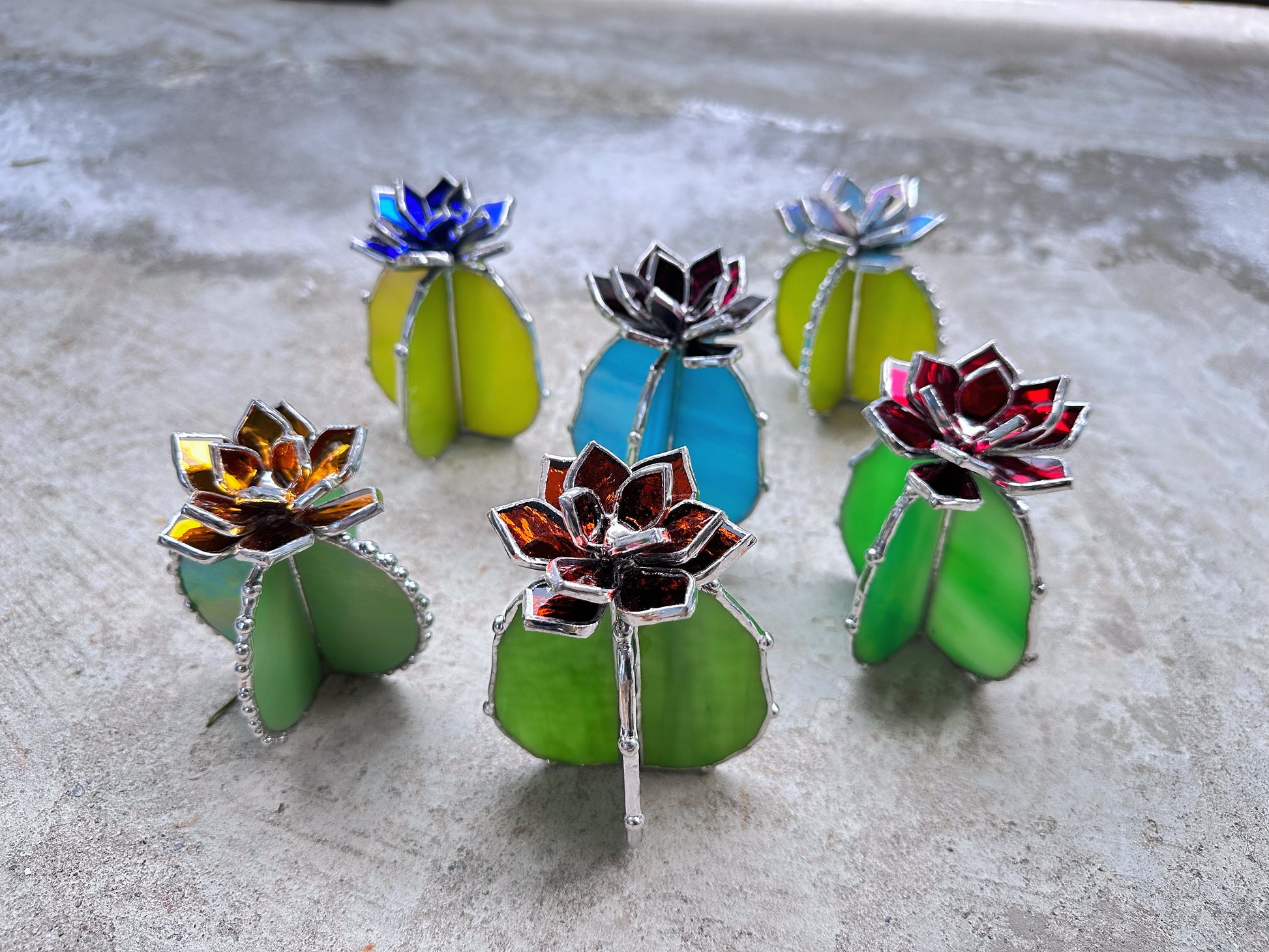 " . Cactus XL SELECT FLOWER and BASE", Stained glass, Succulent 3D Cacti house plant for flower pot Sun catcher glass art wedding