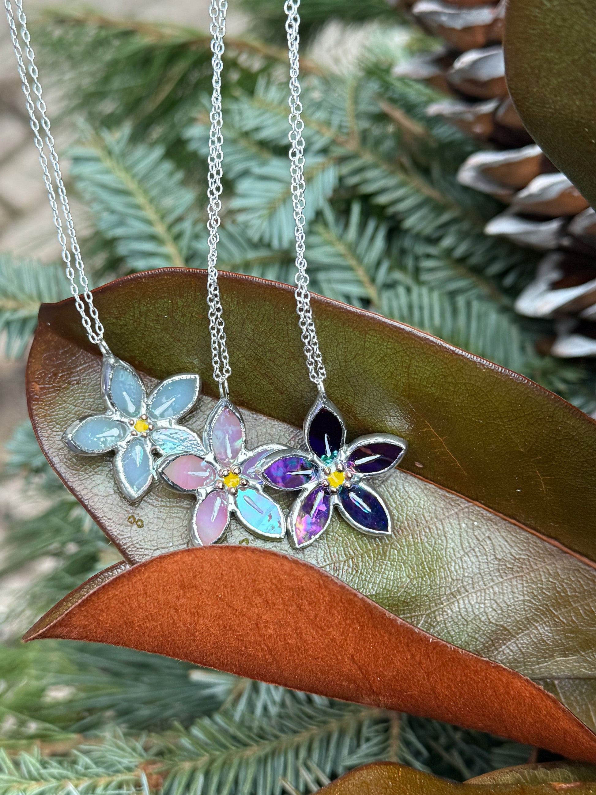 CHOOSE COLOR Necklace Stained glass Forget Me Not flower, Modern jewelry