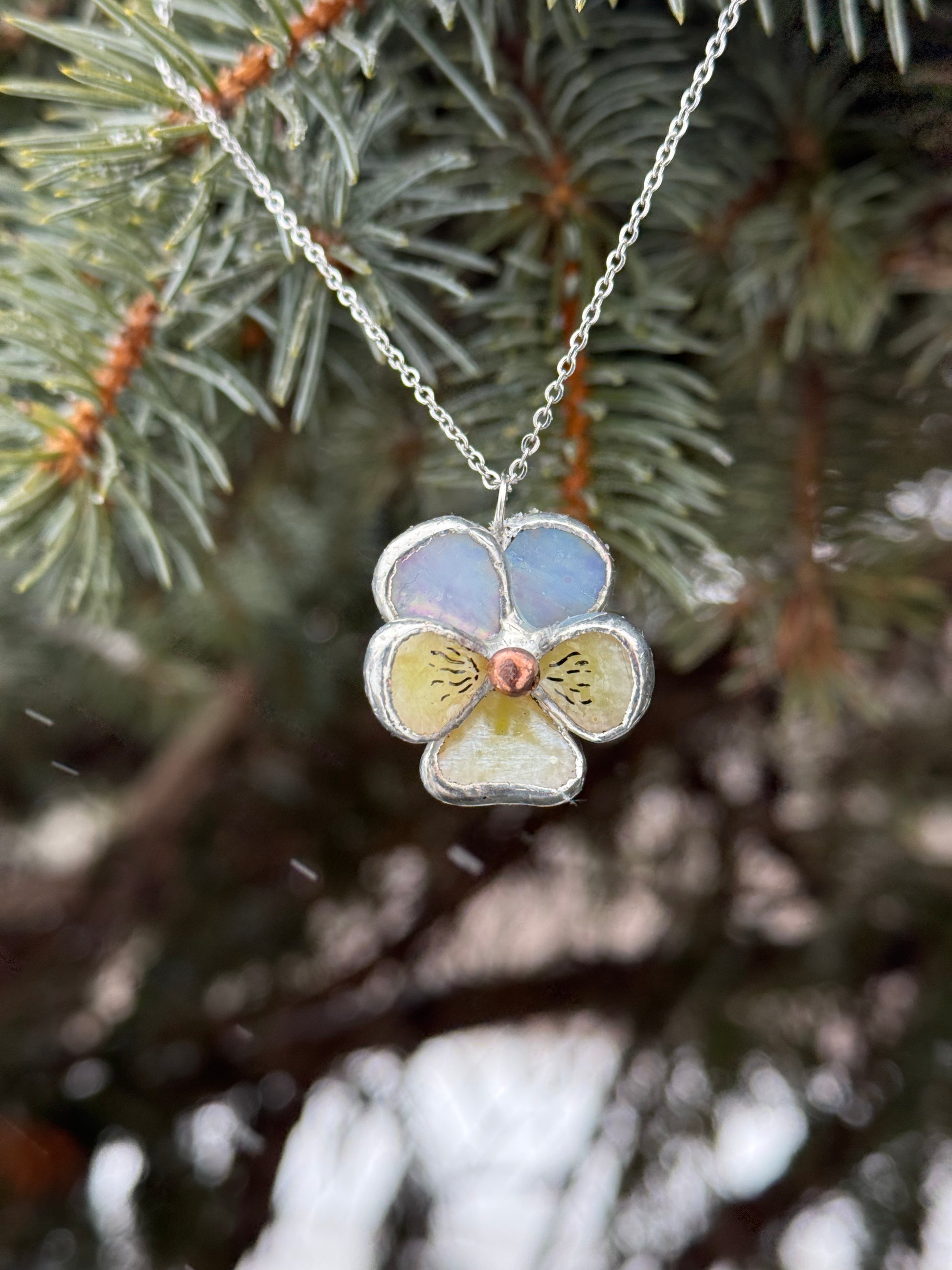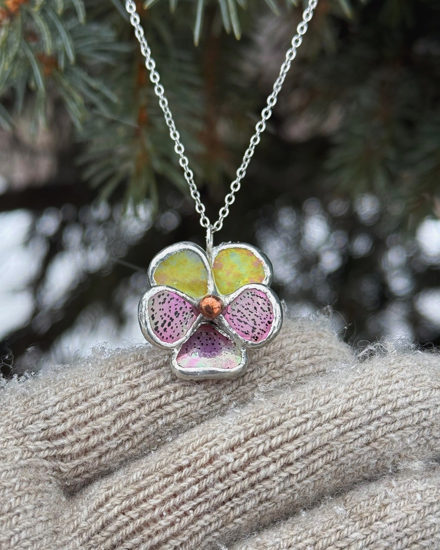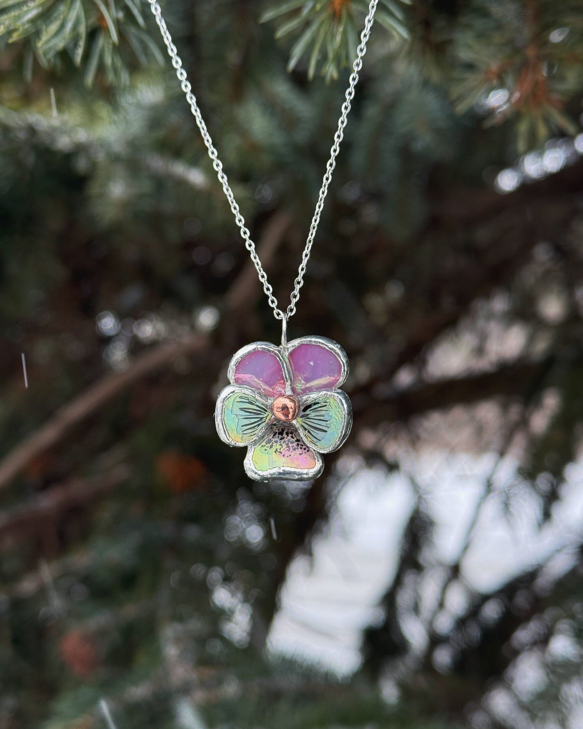 " . CHOOSE COLOR “NECKLACE Pansy flower” Stained glass tropical flower 3D, art jewelry