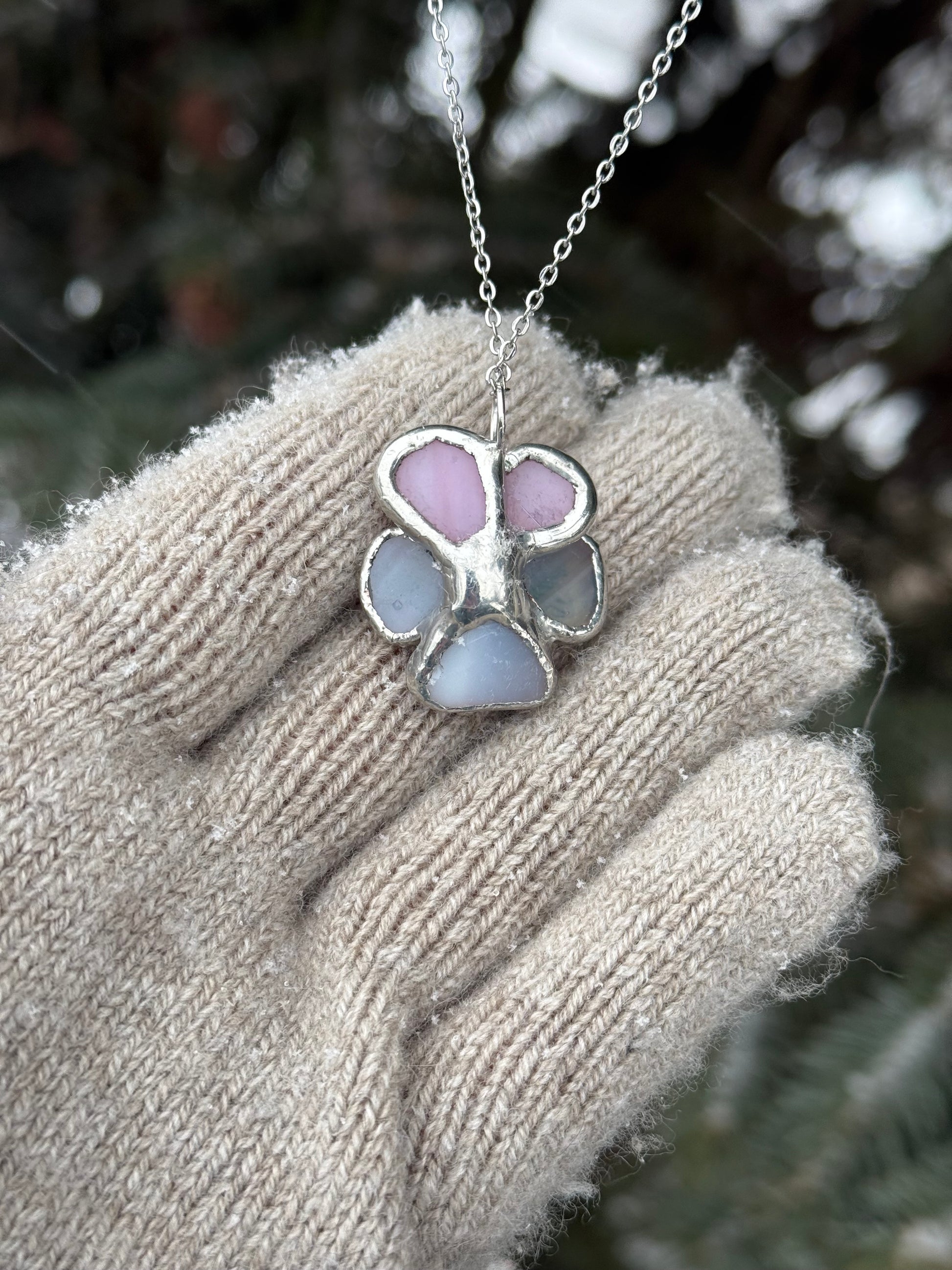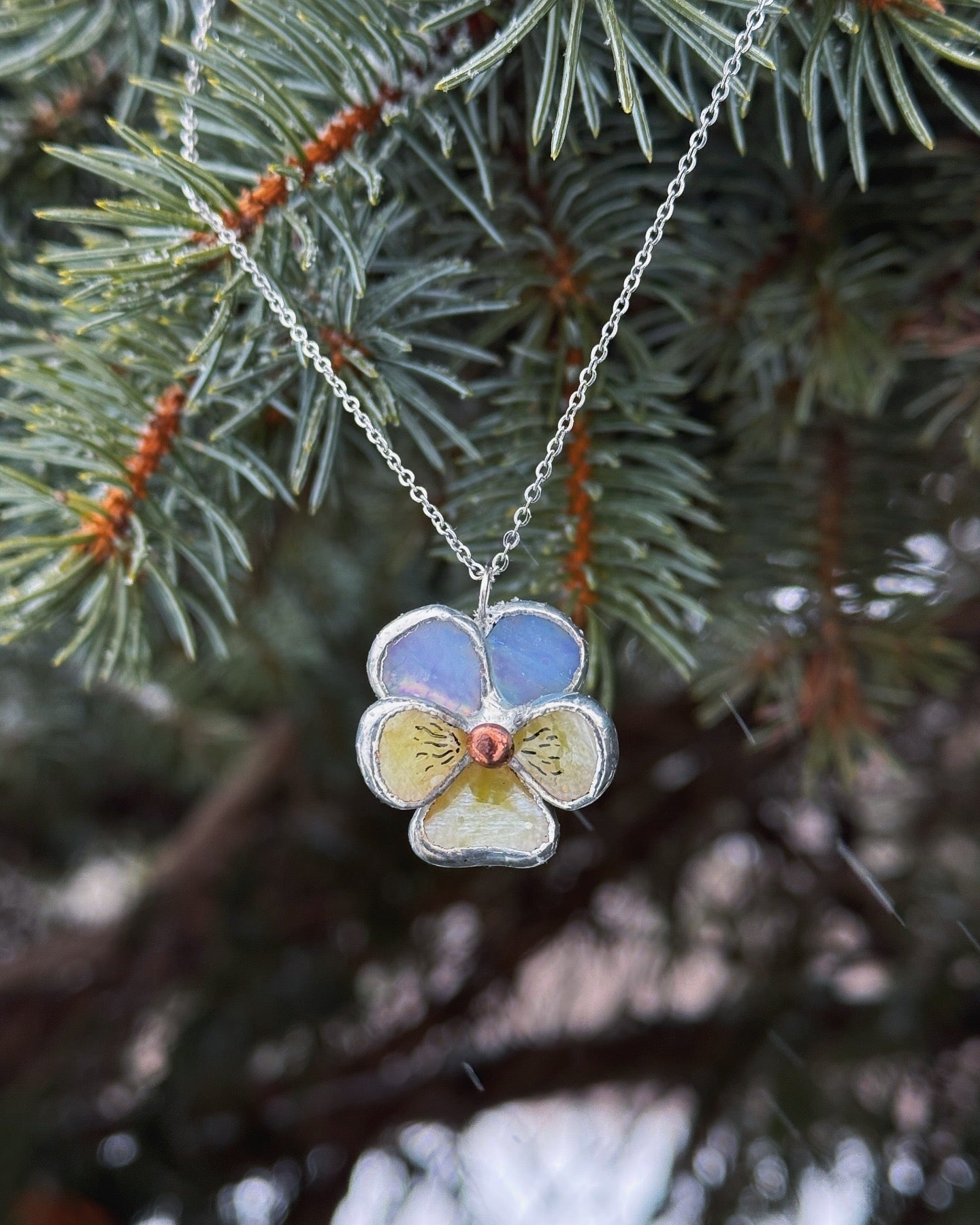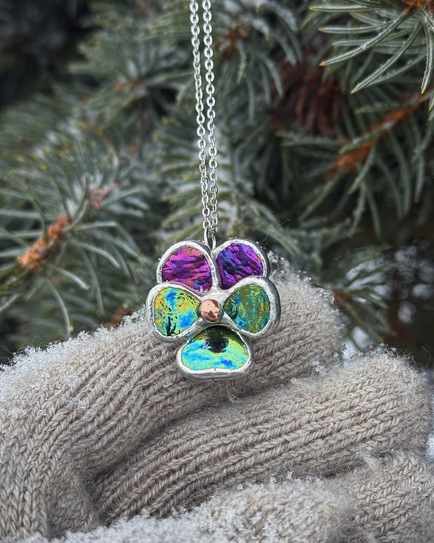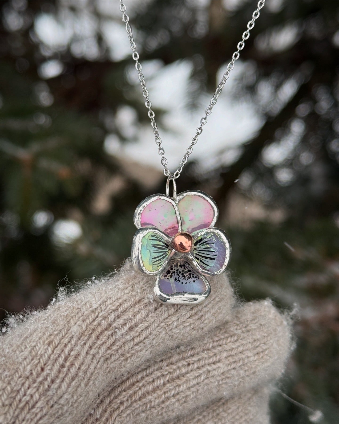 " . CHOOSE COLOR “NECKLACE Pansy flower” Stained glass tropical flower 3D, art jewelry