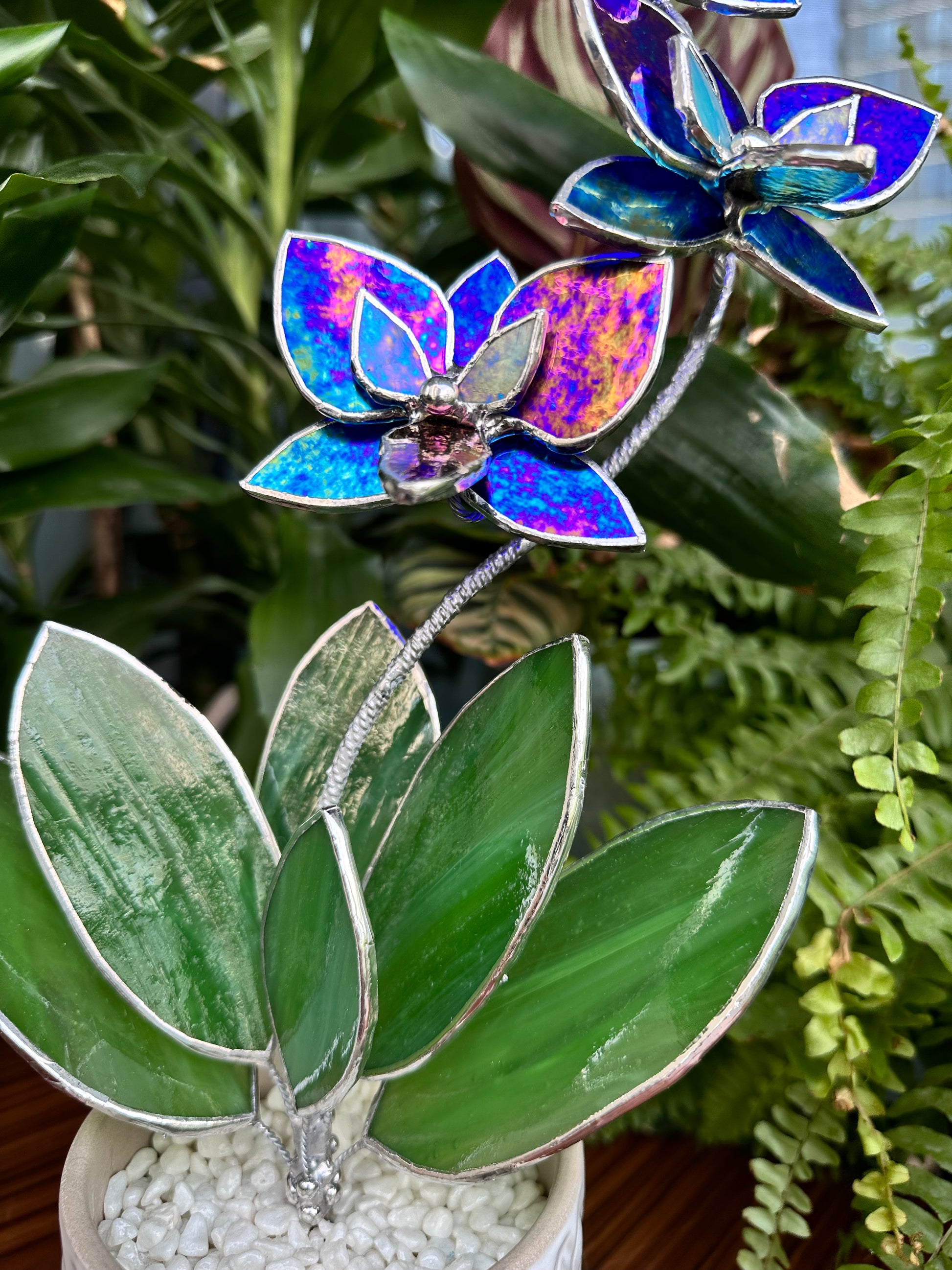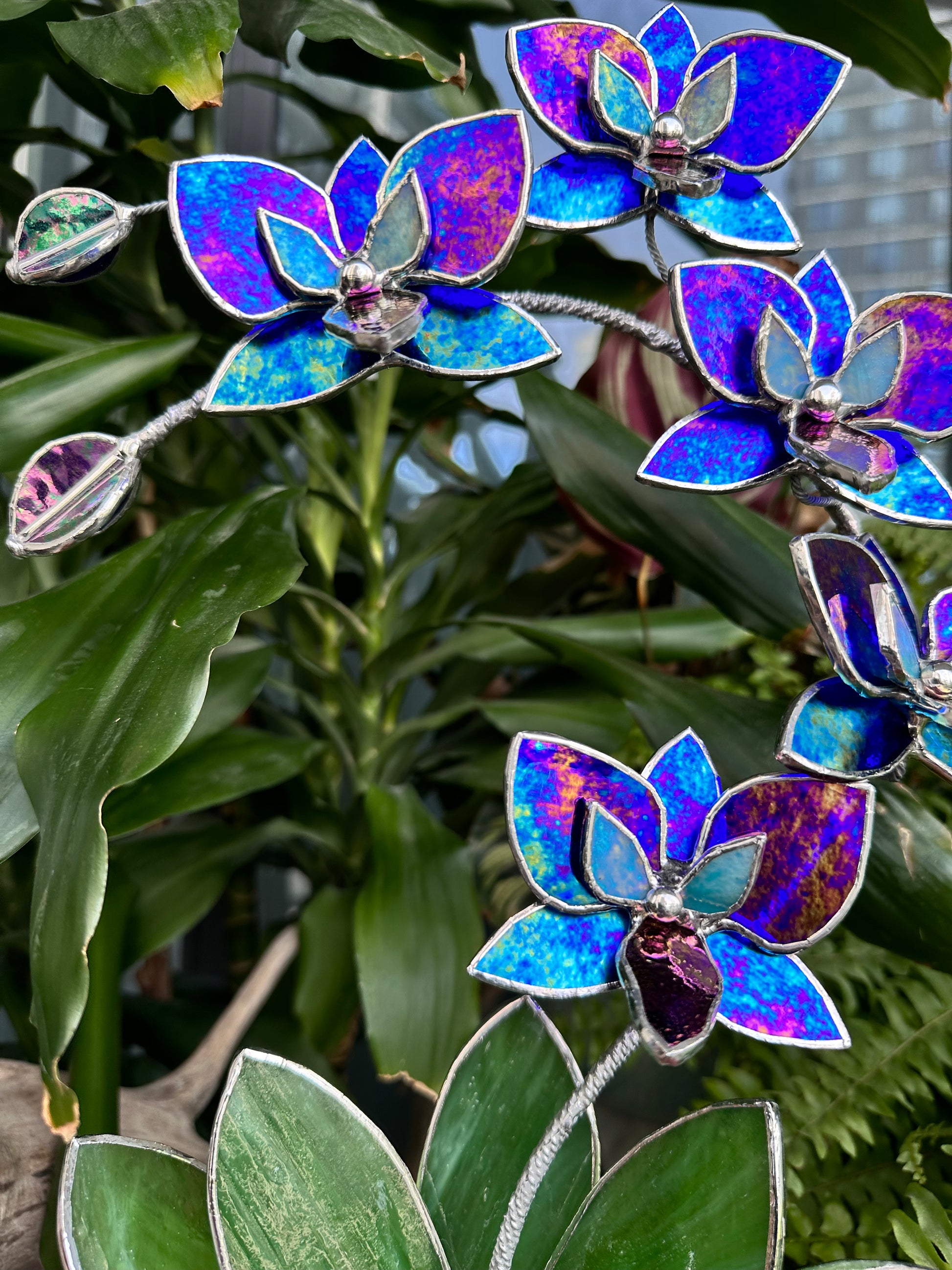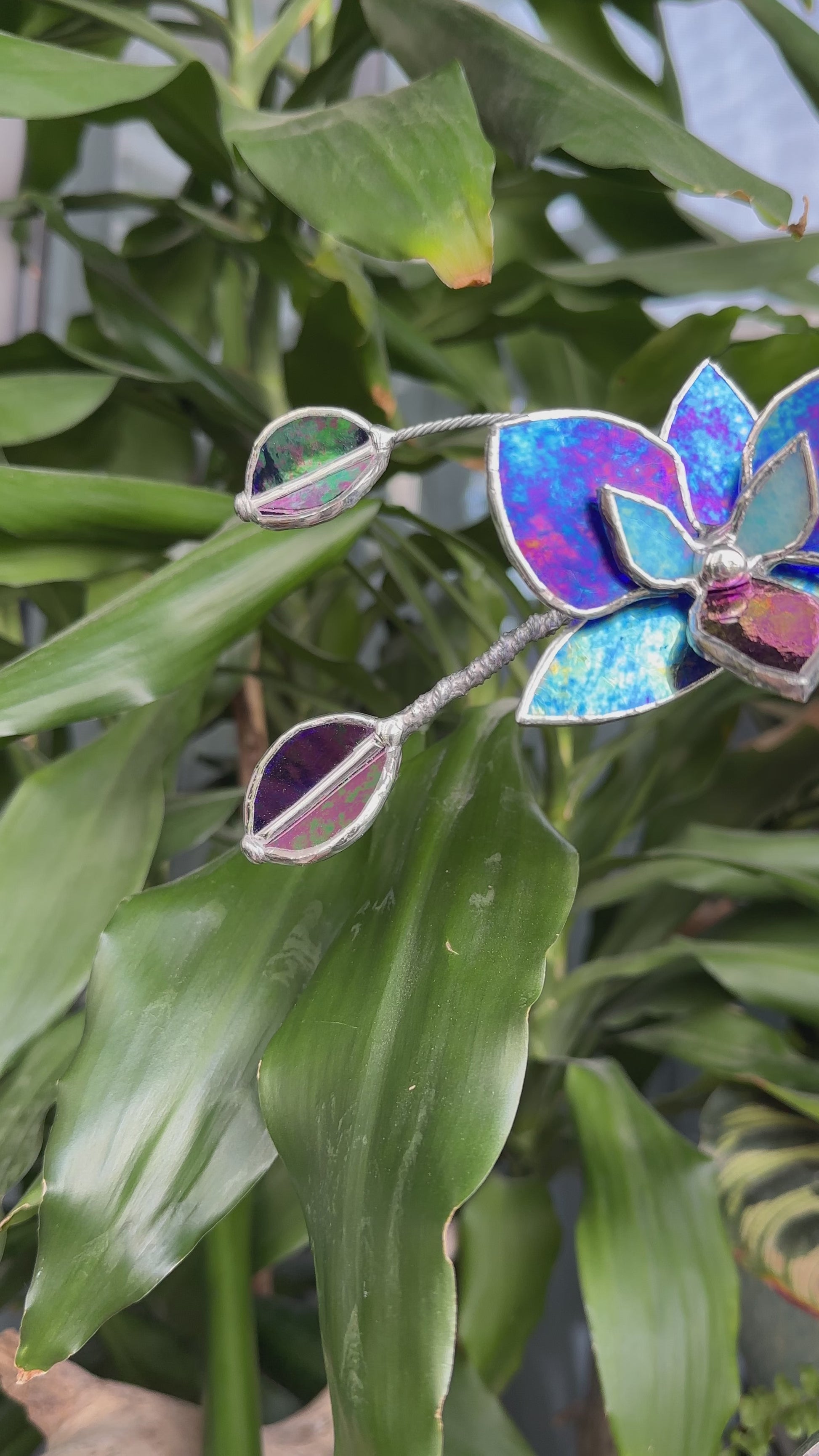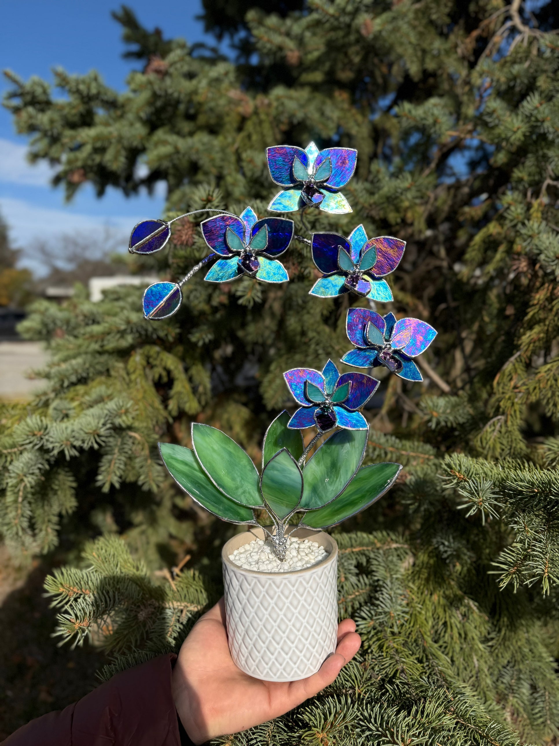". Amethyst luminescent XL Orchid 5 flowers with pot, Stained glass Suncatcher 3D, plant, Wedding Christmas Gift, Outdoor decor