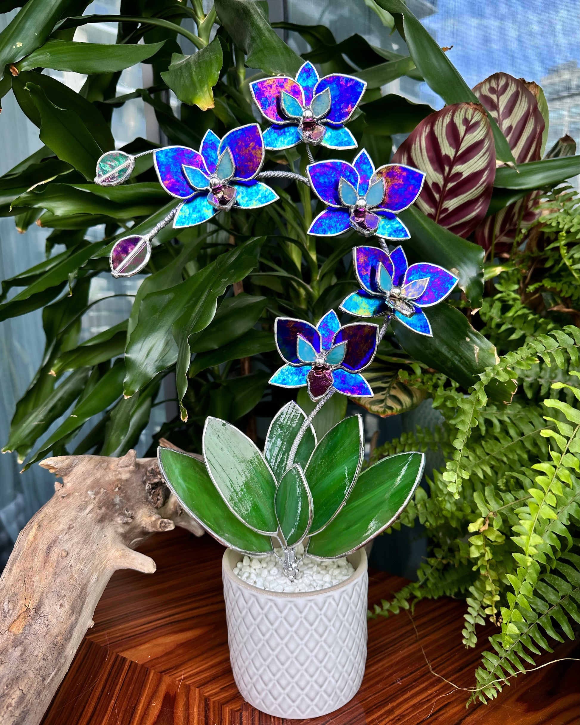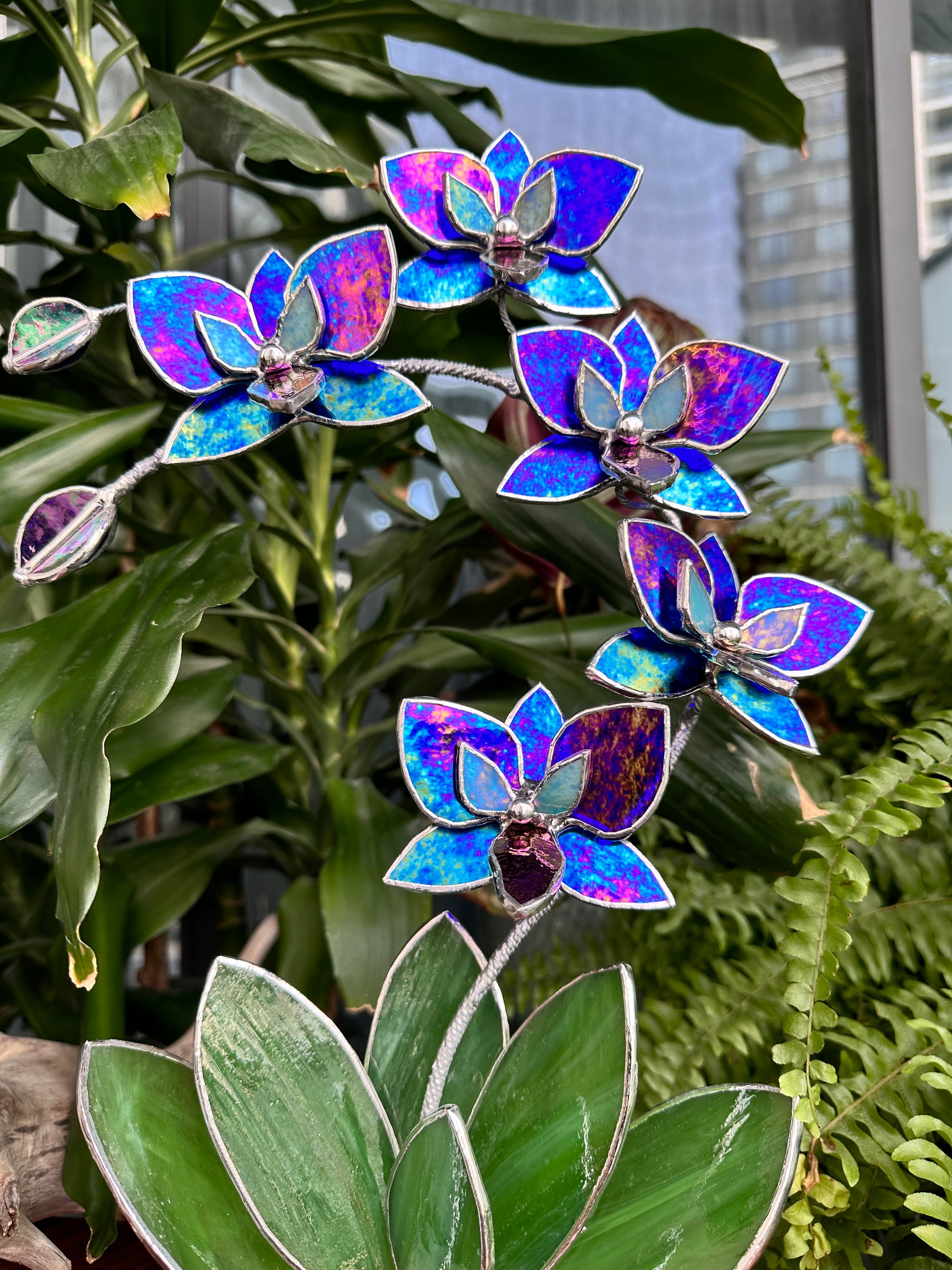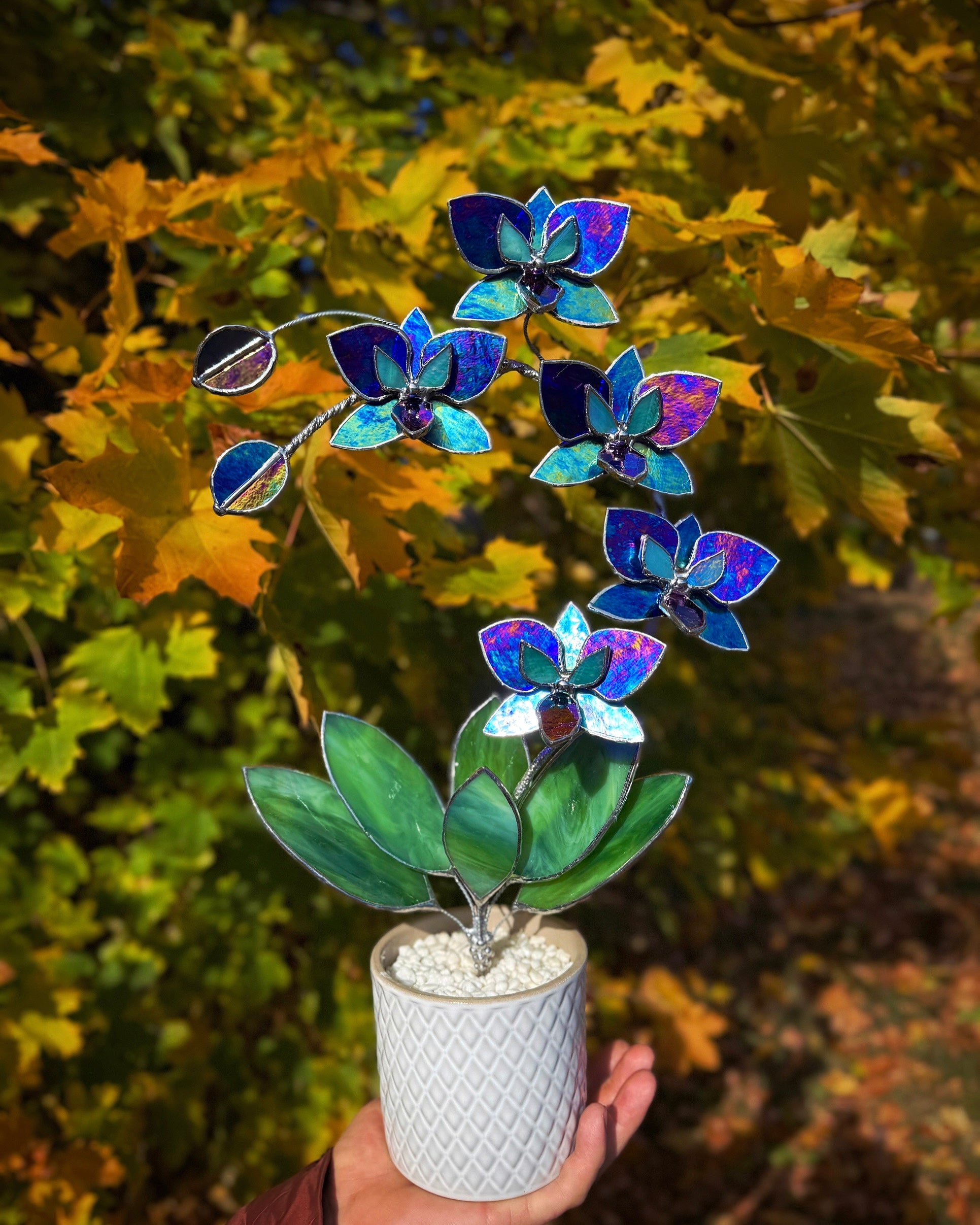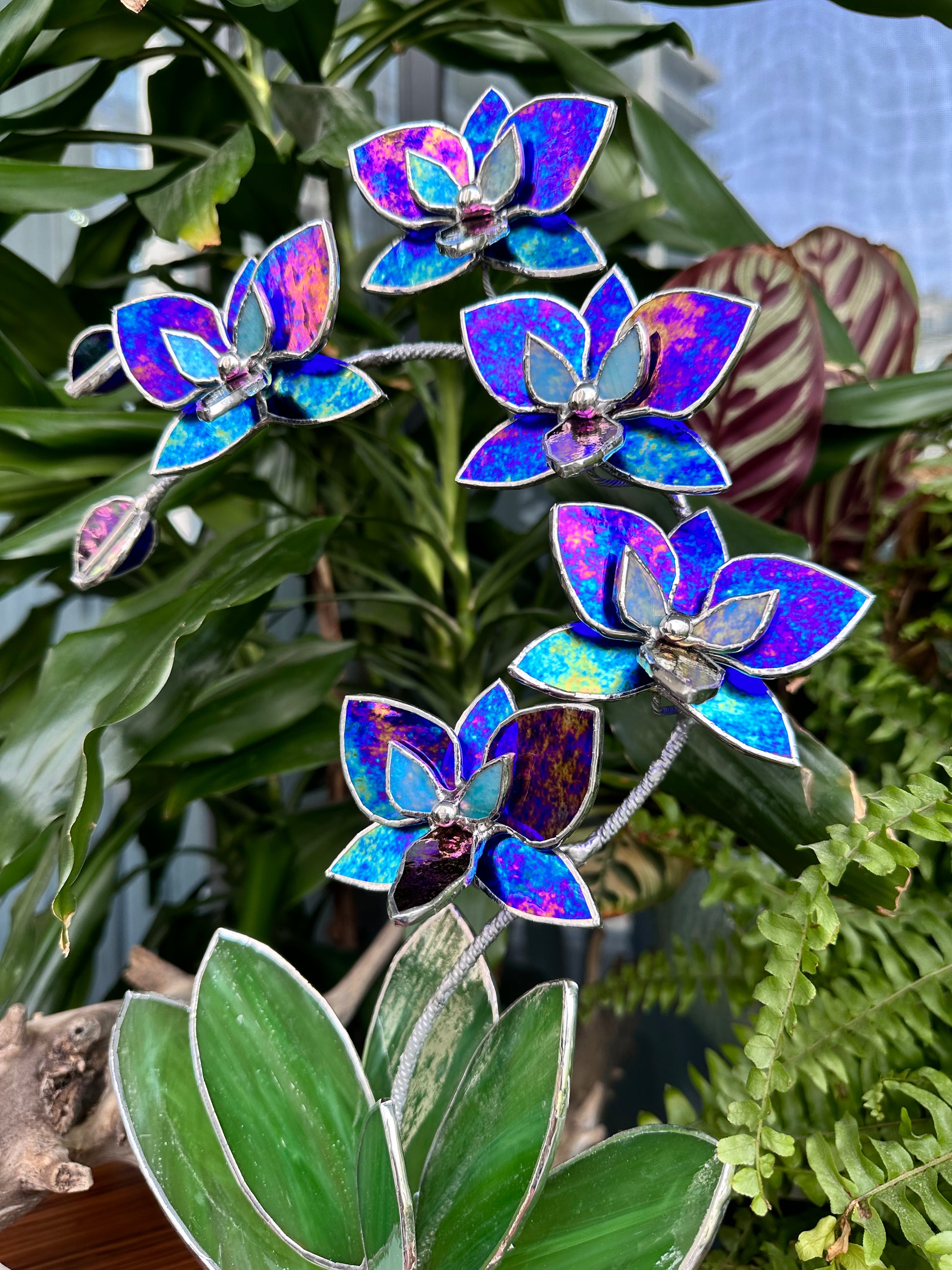". Amethyst luminescent XL Orchid 5 flowers with pot, Stained glass Suncatcher 3D, plant, Wedding Christmas Gift, Outdoor decor