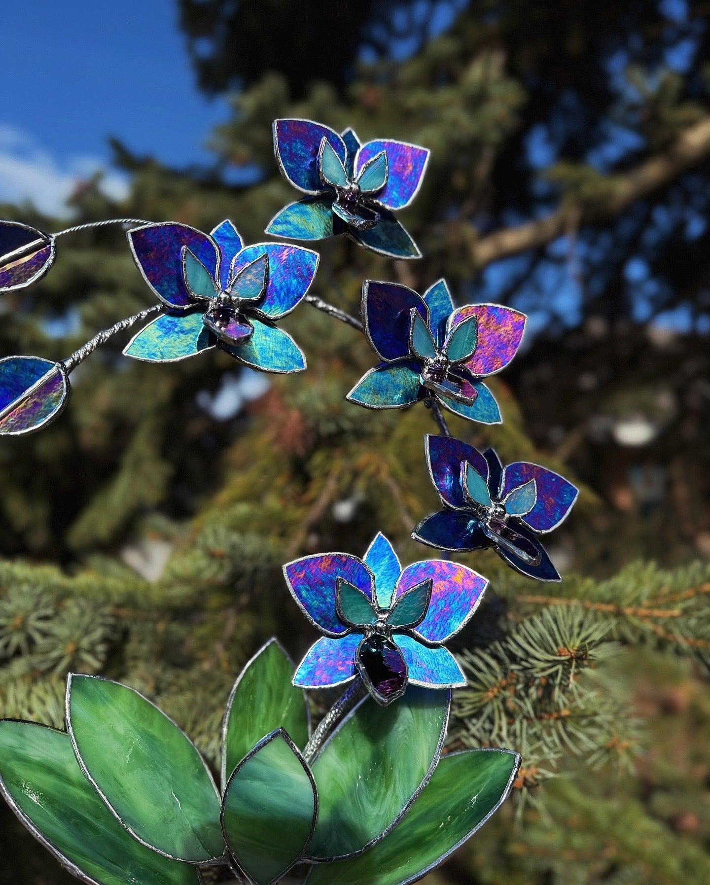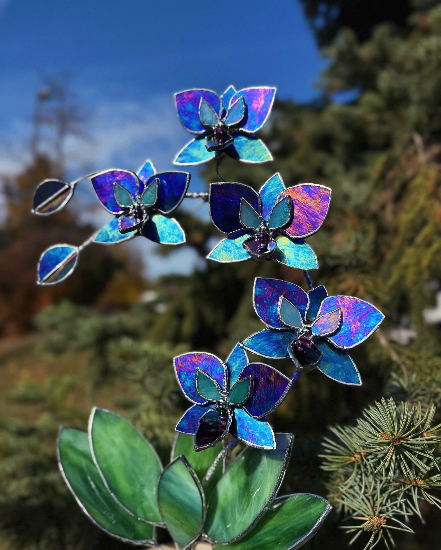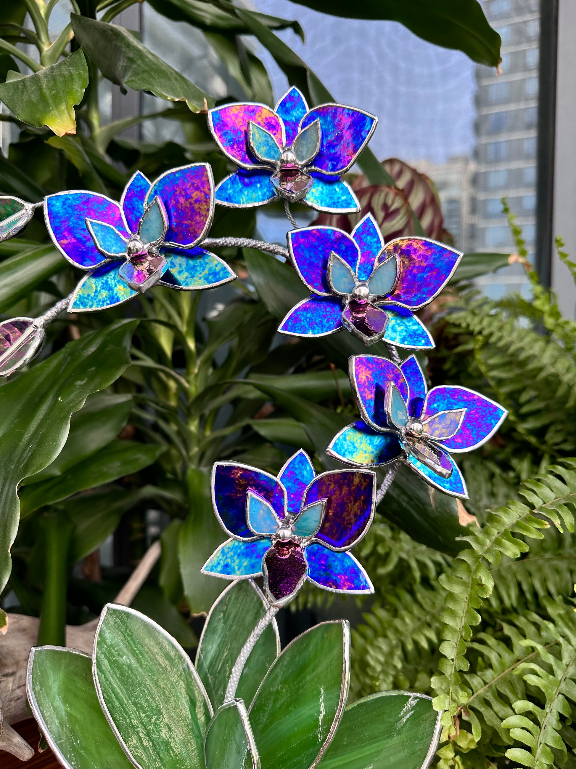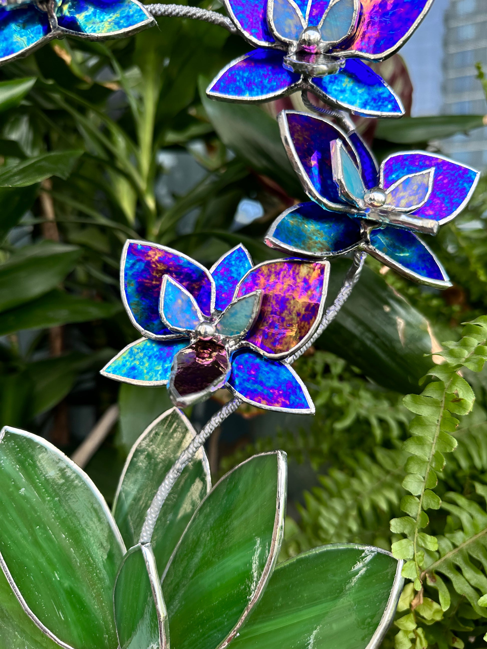 ". Amethyst luminescent XL Orchid 5 flowers with pot, Stained glass Suncatcher 3D, plant, Wedding Christmas Gift, Outdoor decor