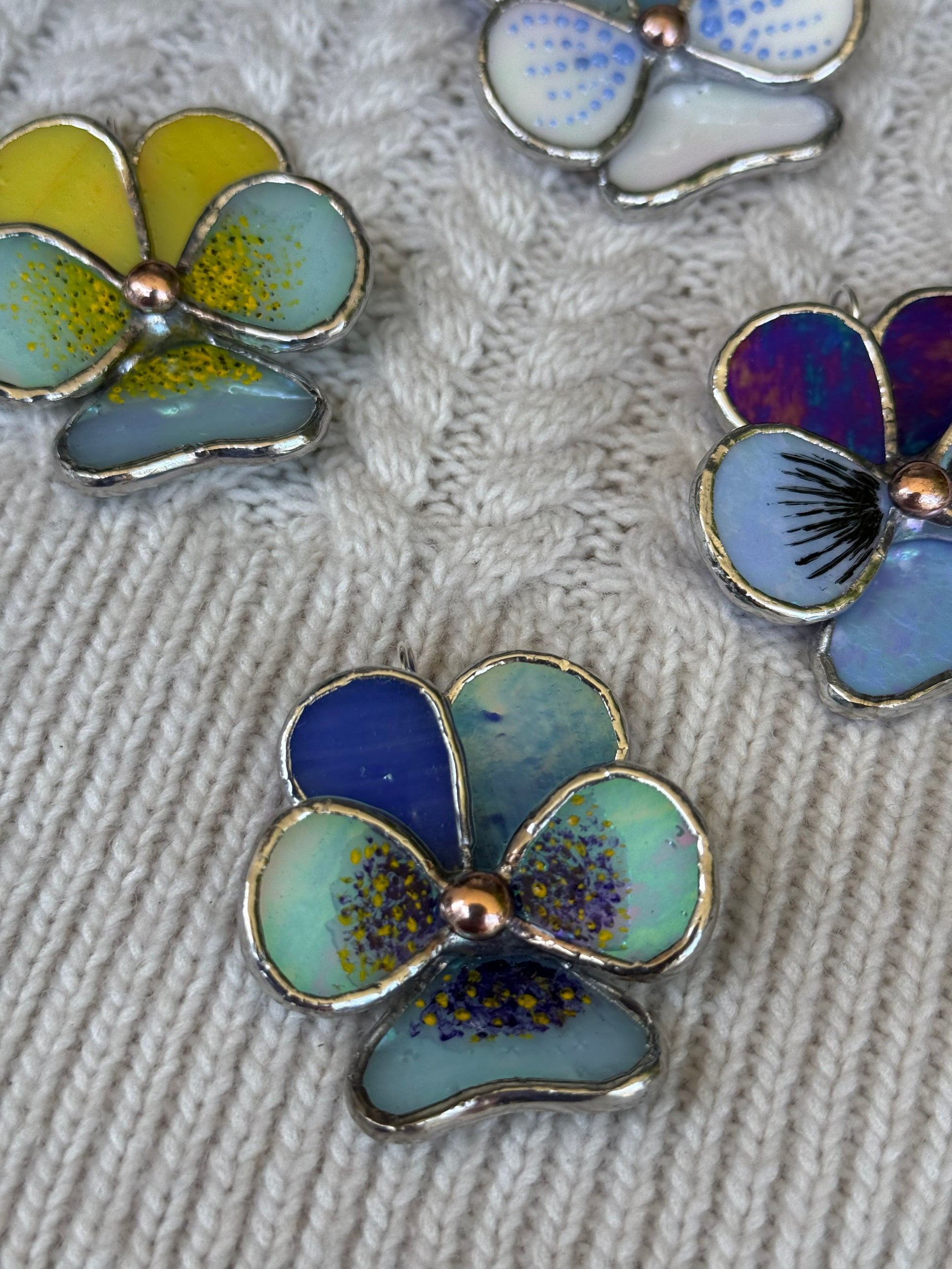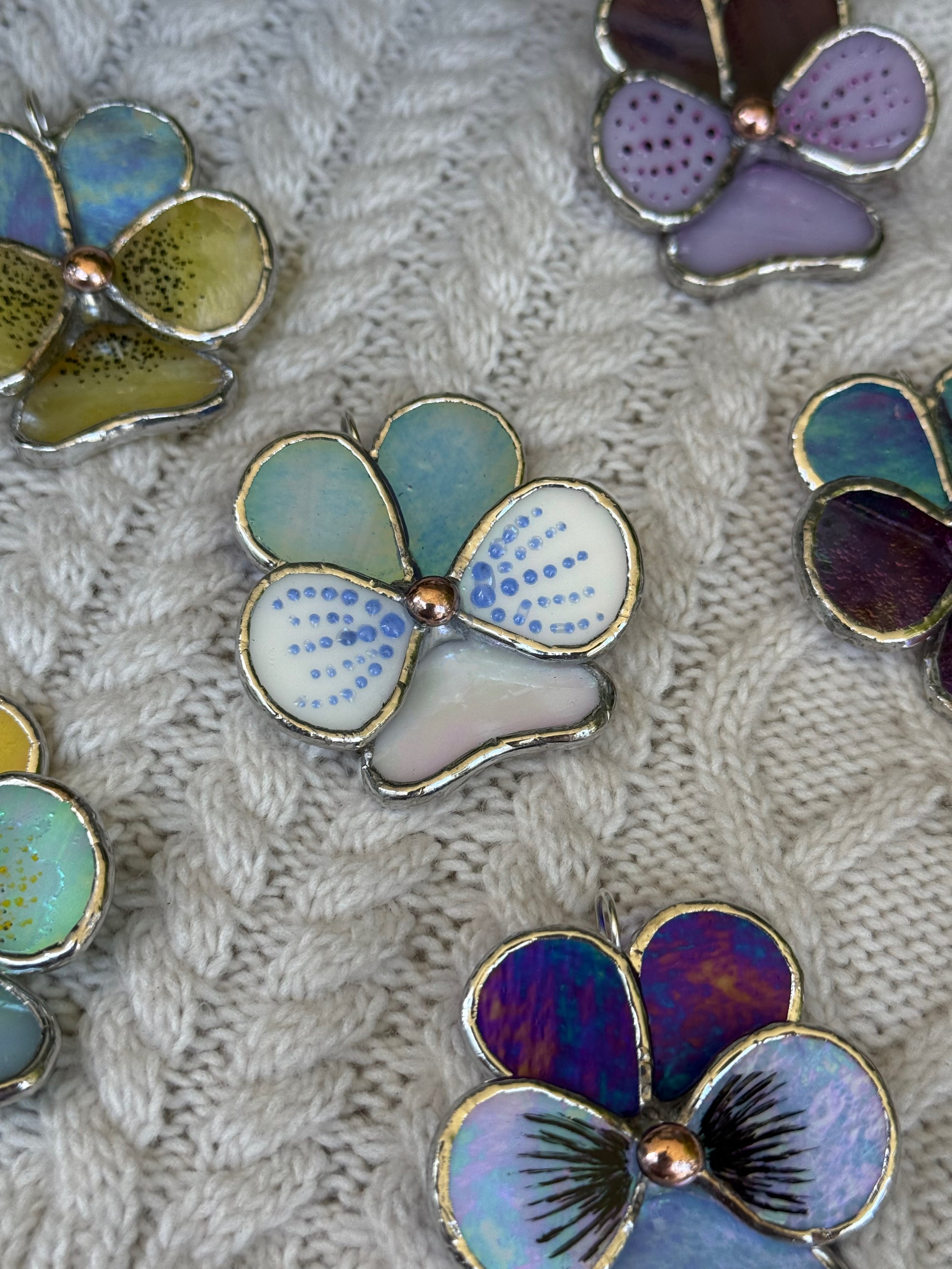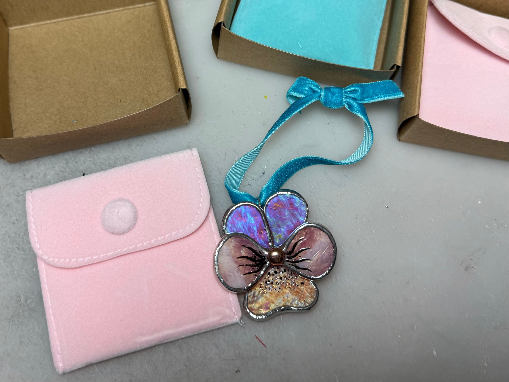 These beautiful 3D stained glass Christmas Pansy flower ornaments will be the perfect decoration for your Christmas tree! It can be a holiday gift for the office, a gift from Secret Santa, or you can buy a set and decorate your home! Handmade stained glass Christmas ornaments are always a great idea - each one is unique and made with great skill and love.