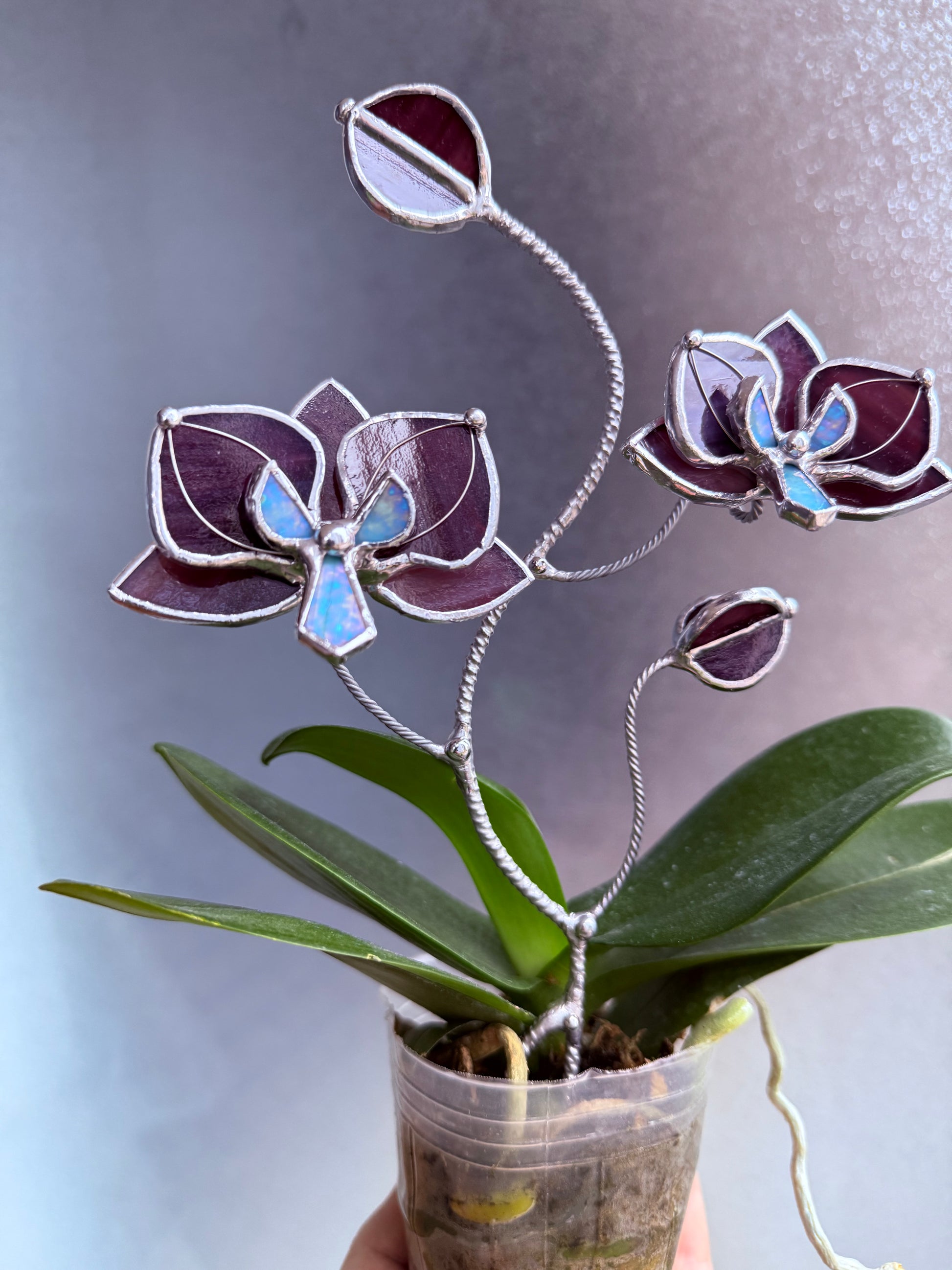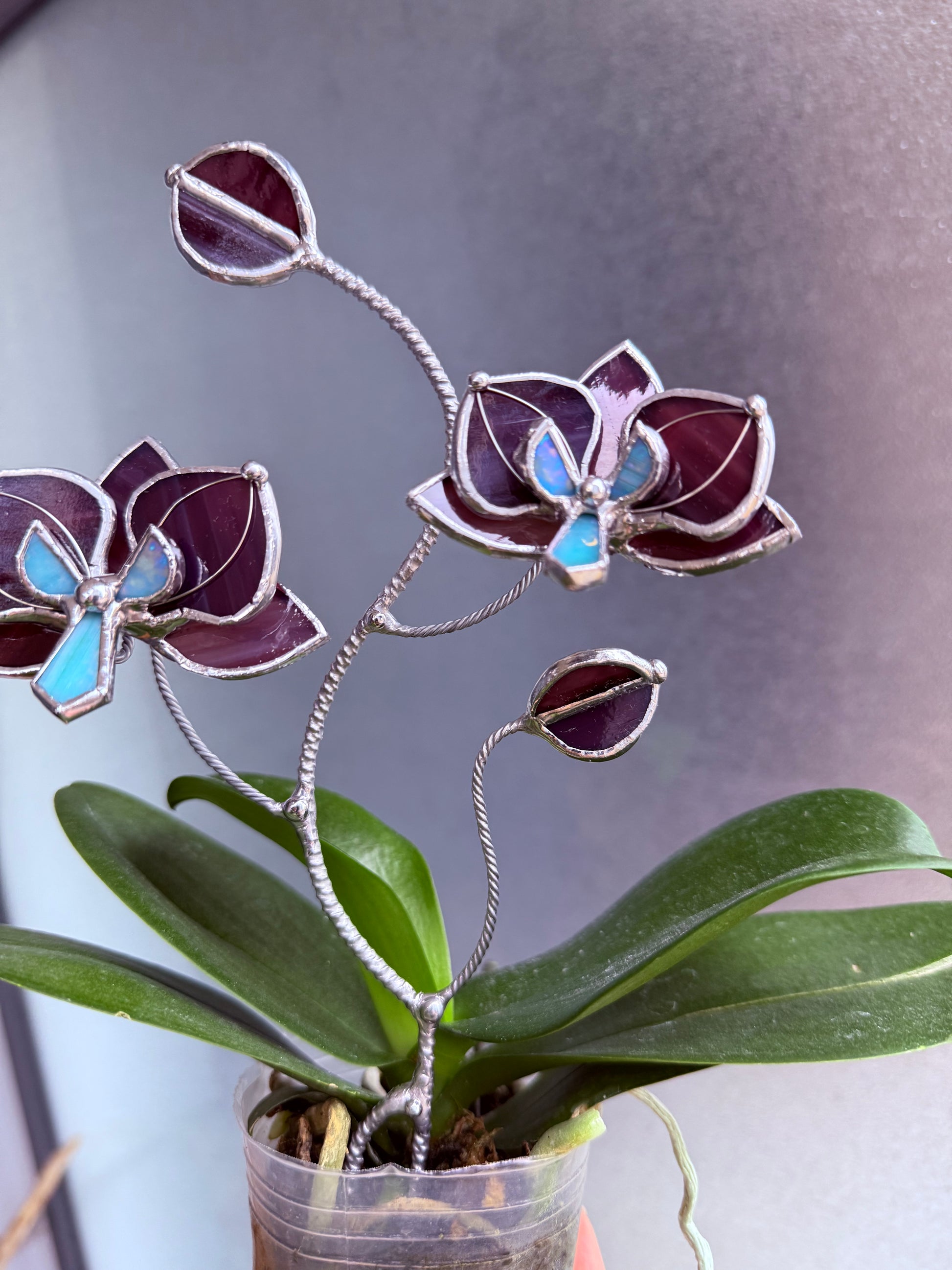 " . Elderberry purple Orchid flower stick, Plant stake 2 flowers no pot” Stained glass tropical flower 3D, Sun catcher, Table plant, Garden stick, Outdoor and gardening decor (Copy)