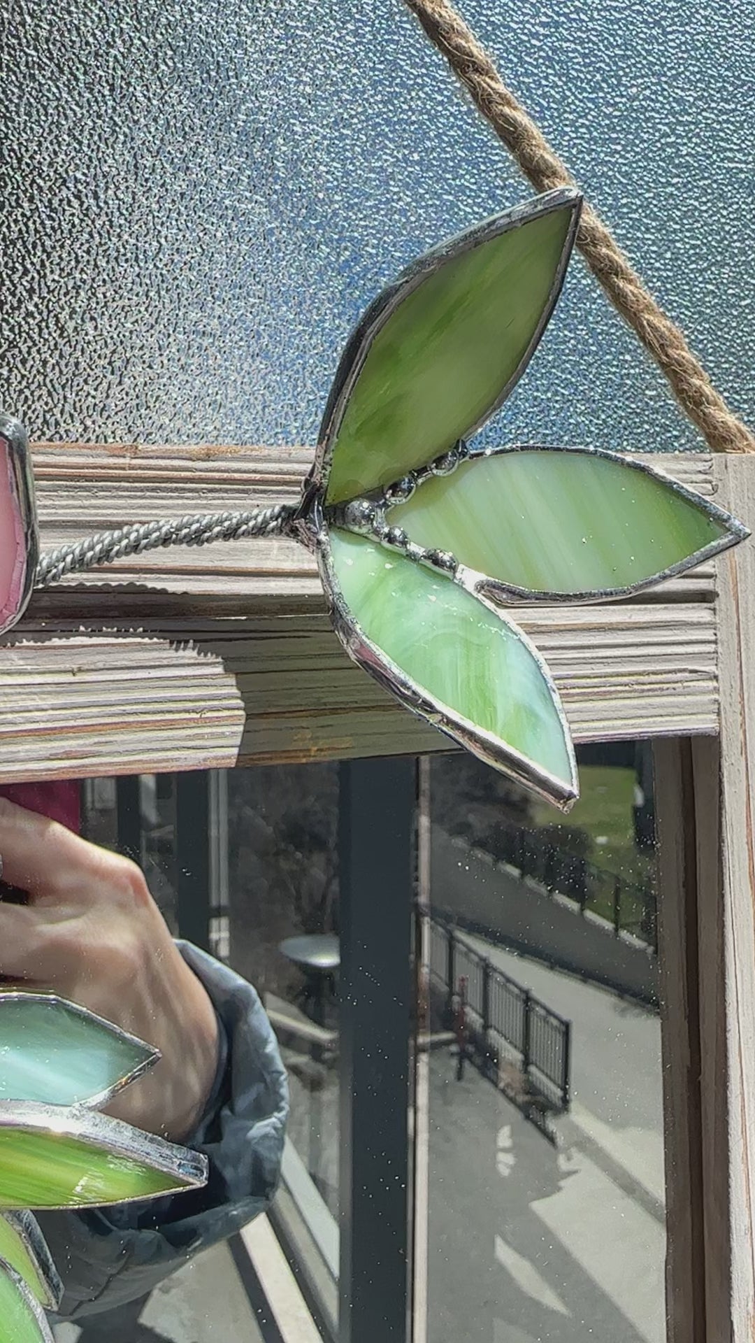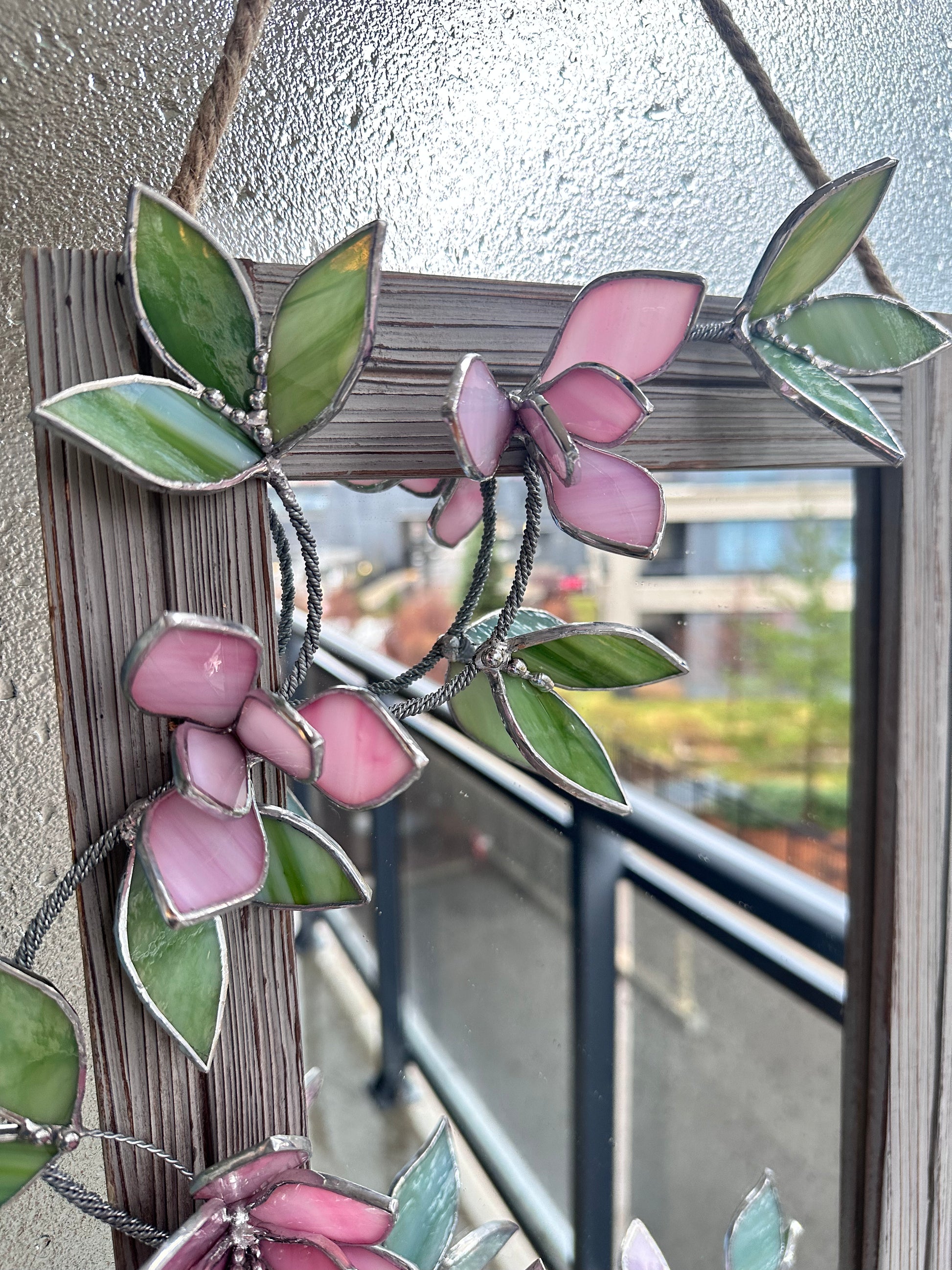 " . Baby Pink Magnolia Flower Mirror, Stained glass Wedding Wall Decor Christmas gift, Suncatcher