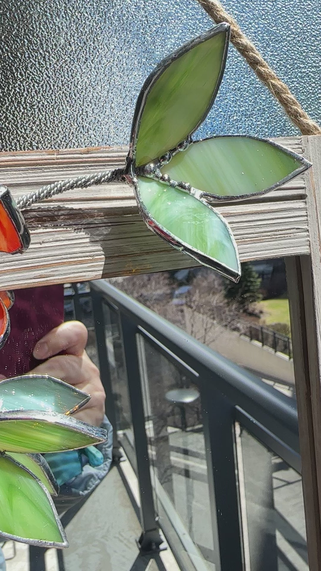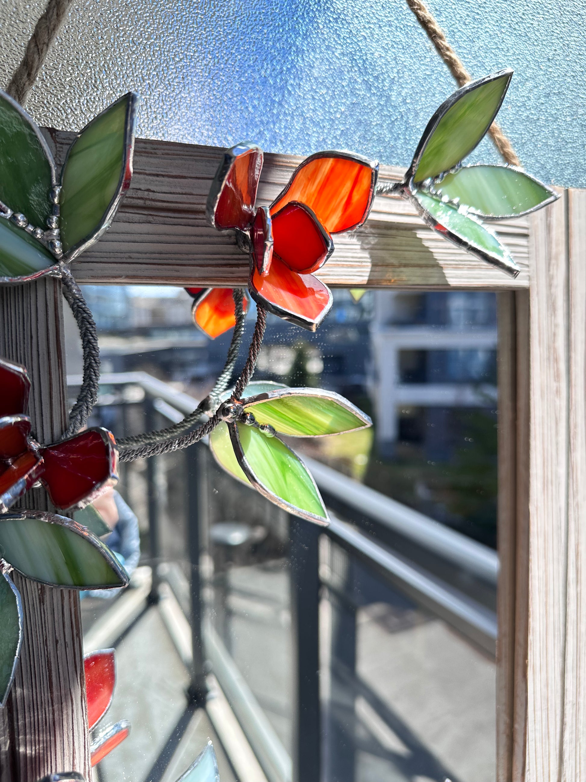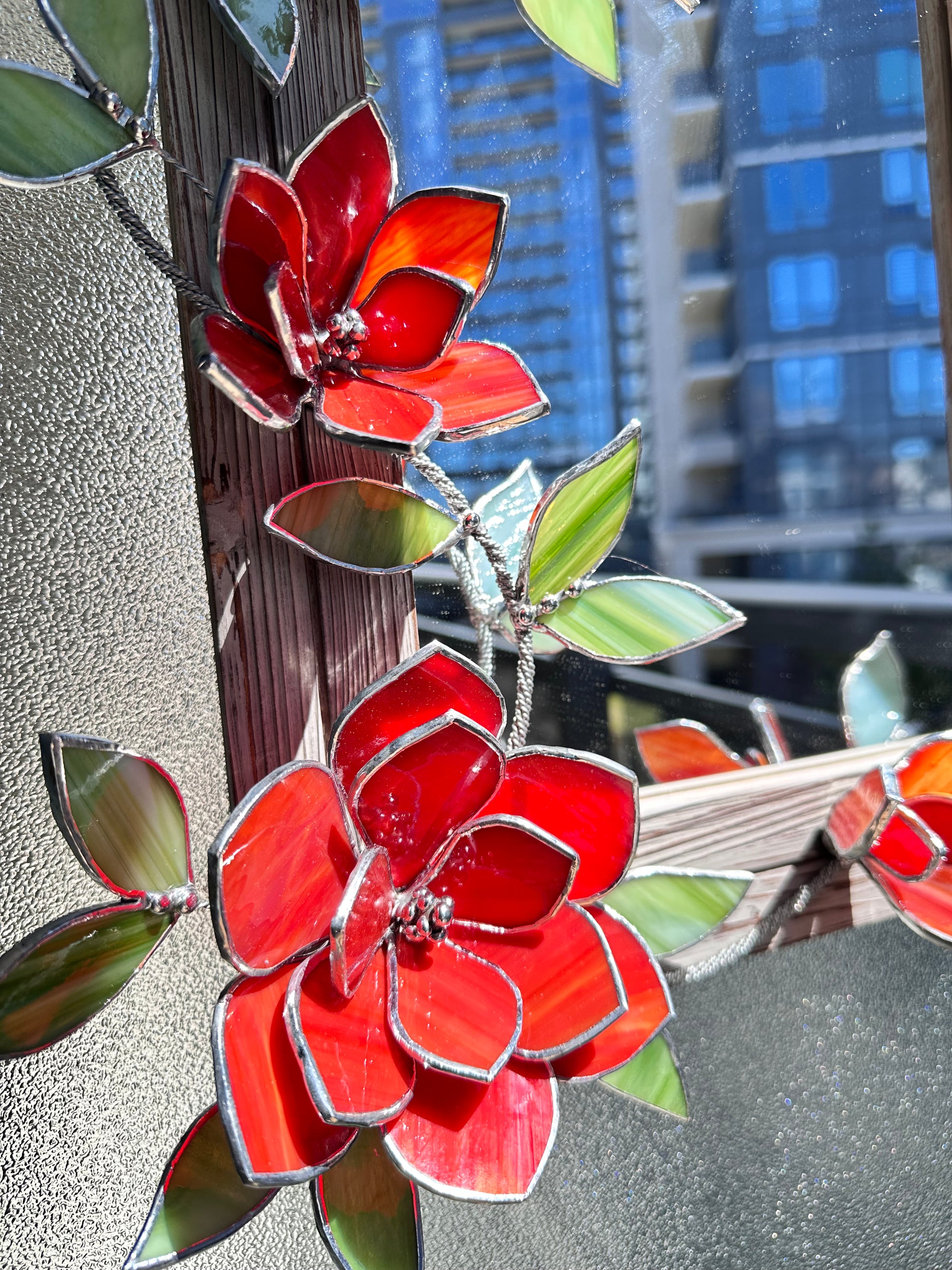 " . Flower Mirror Ruby Red Magnolia, Stained glass Wedding Wall Decor, Christmas gift, Suncatcher