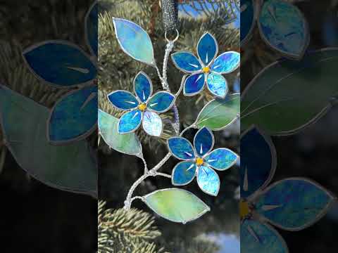 .Forget Me Not Indigo Artisan Stained Glass Suncatcher Floral Wall Hanging ready