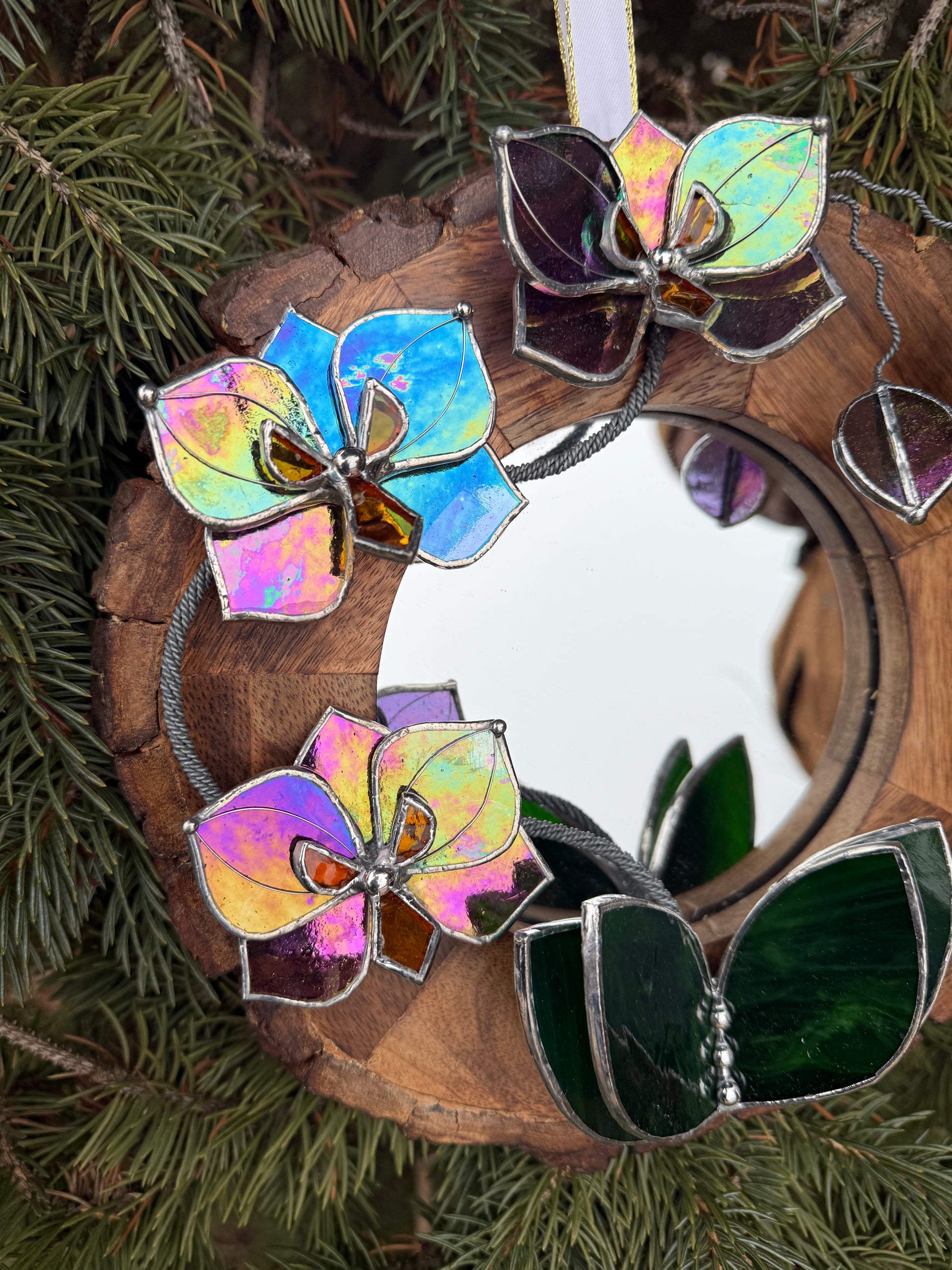 " . Iridescent Butterfly Orchid Mirror”, Stained glass flower Wall decor, Suncatcher, Home wedding Decor, Christmas gift