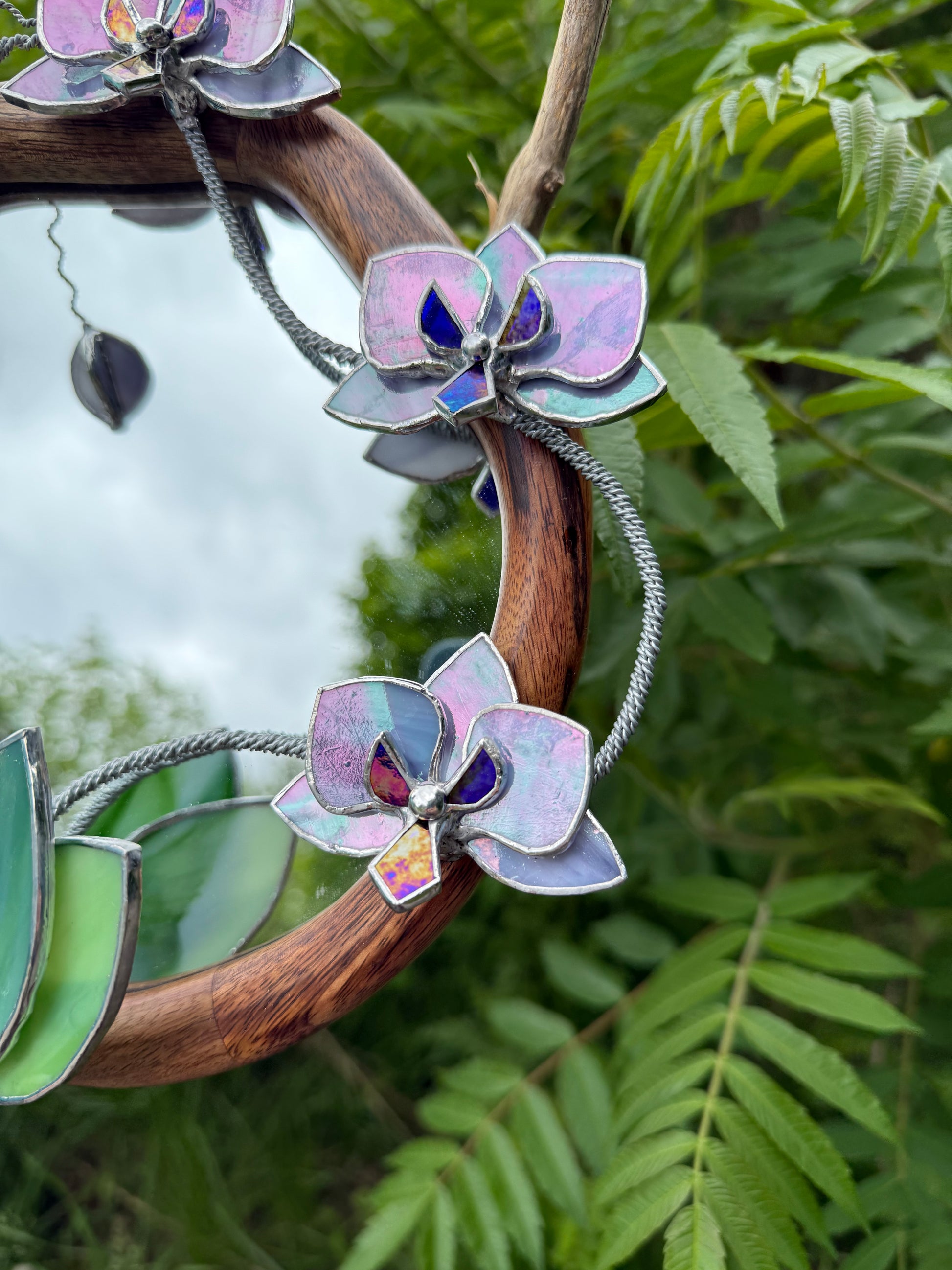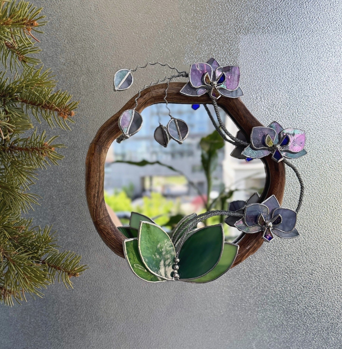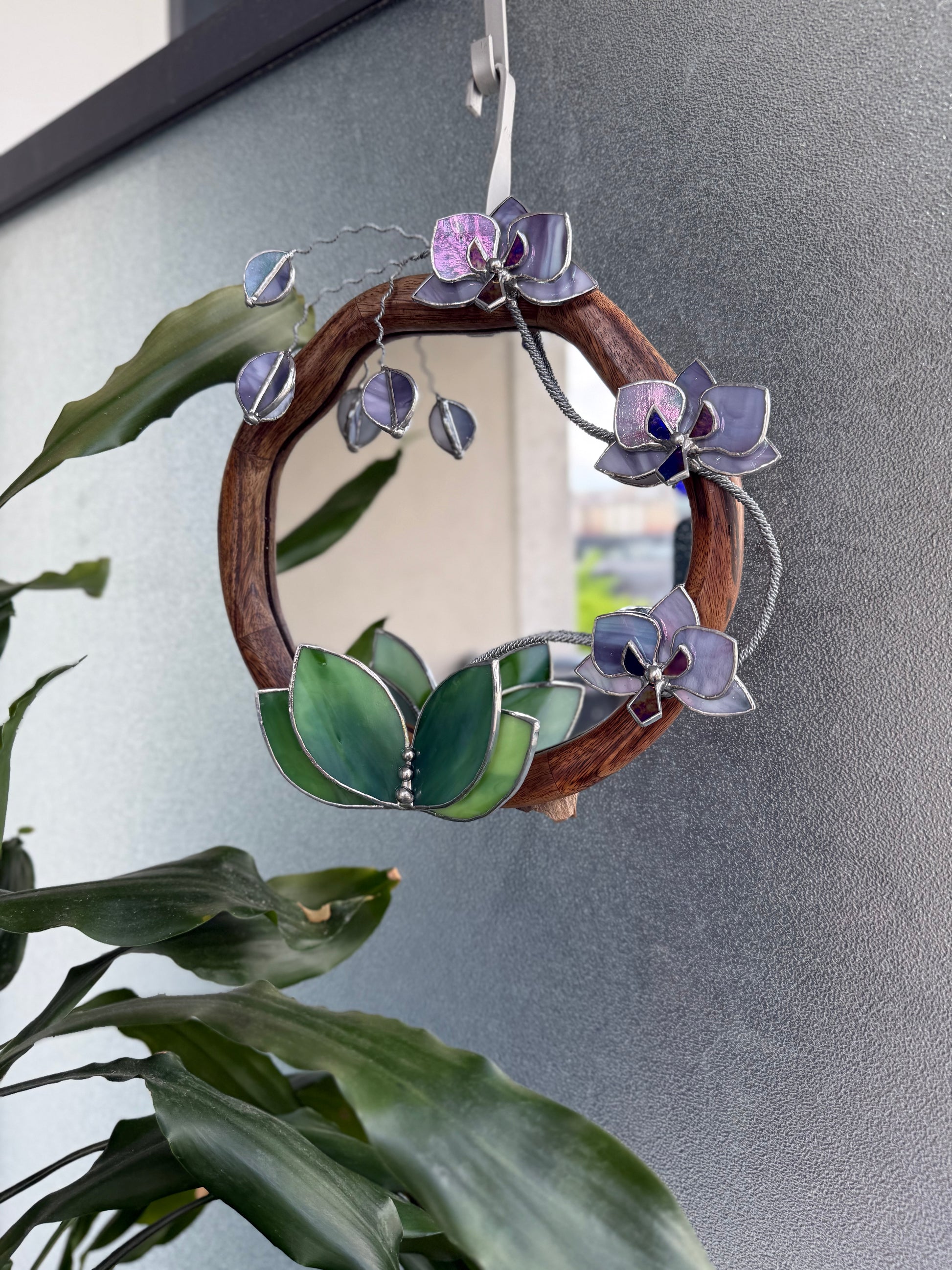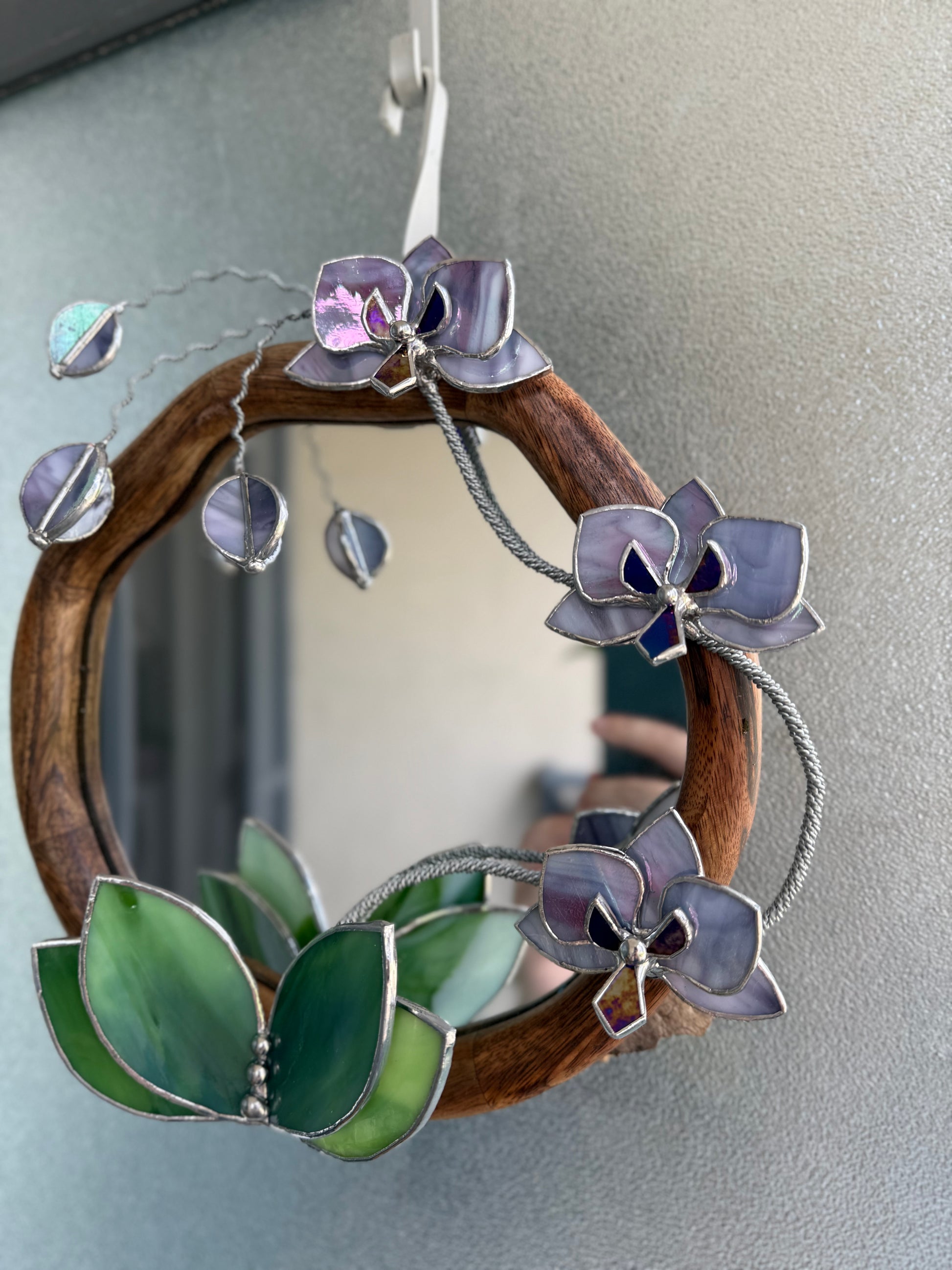 " . Lilac luminescent Orchid Mirror”, Stained glass flower Wall decor, Suncatcher, Home wedding Decor, Christmas gift available sale
