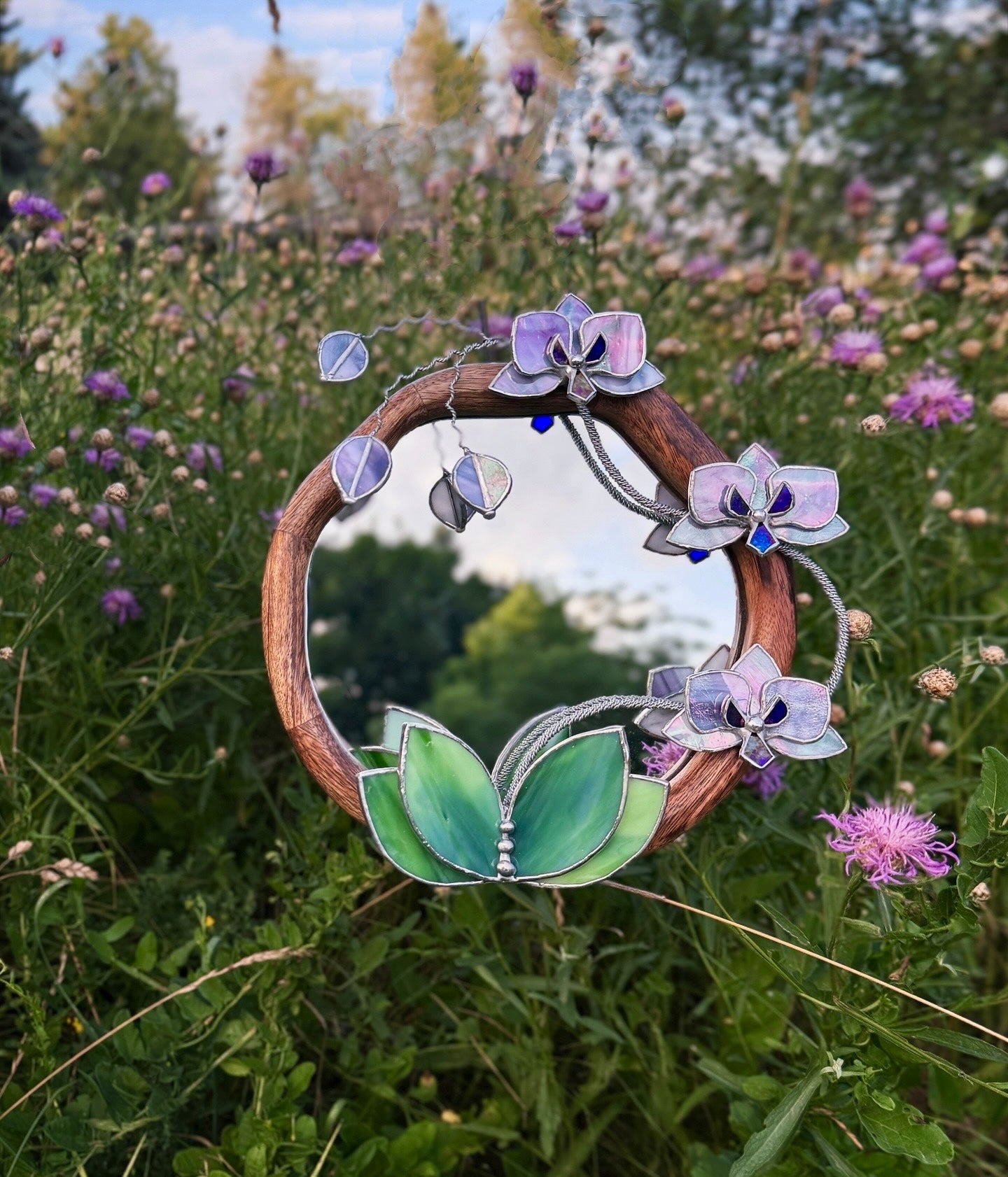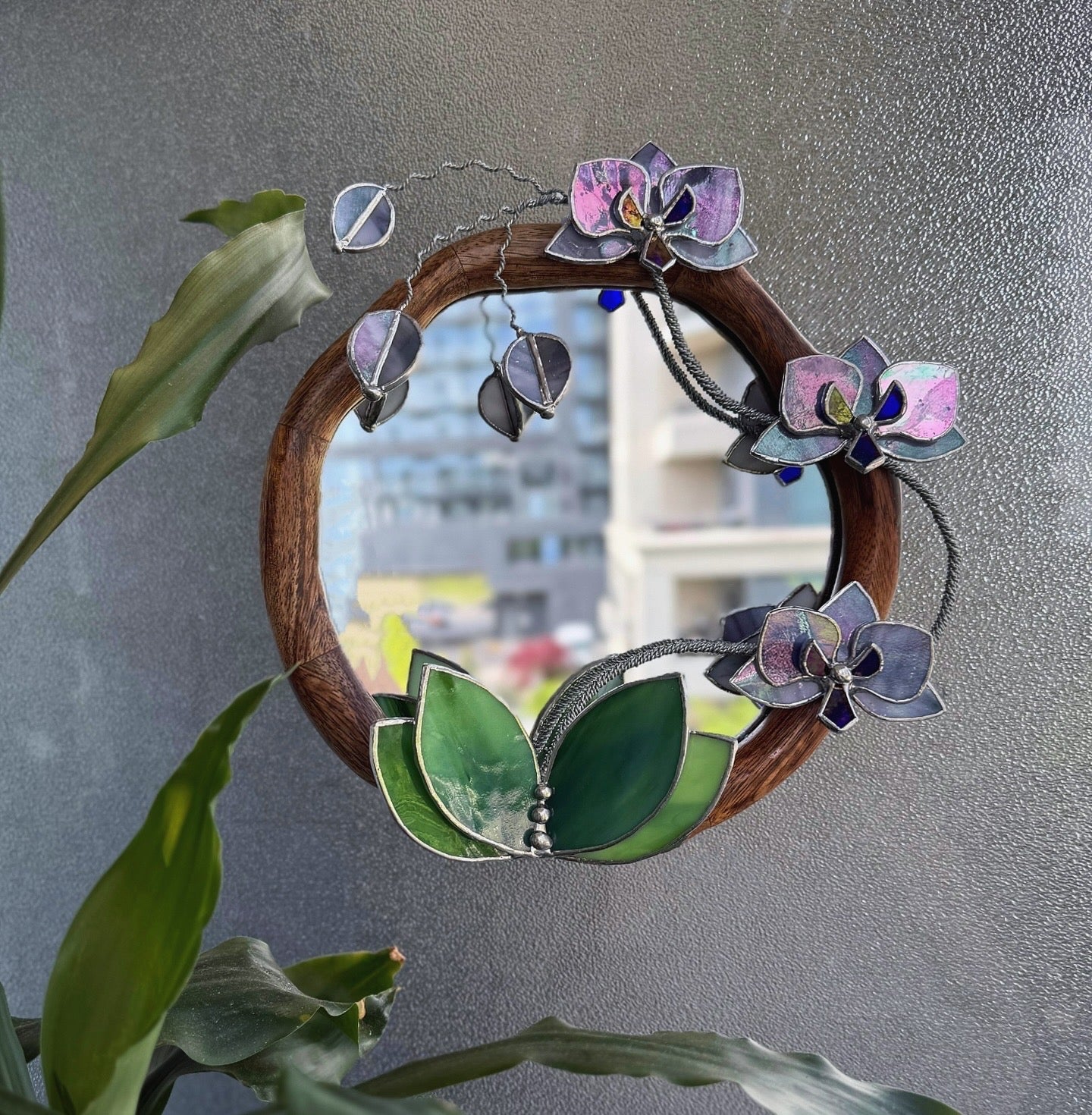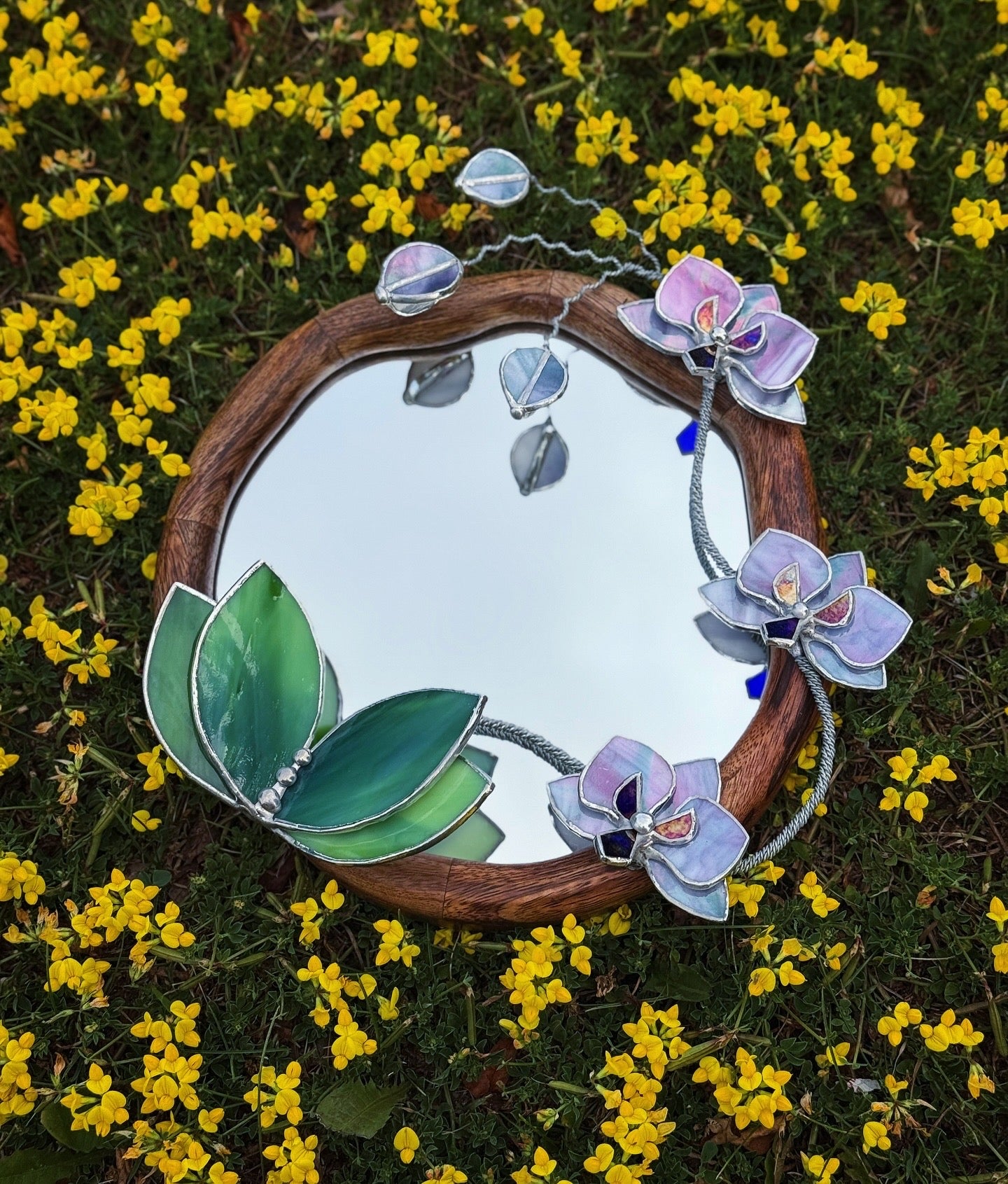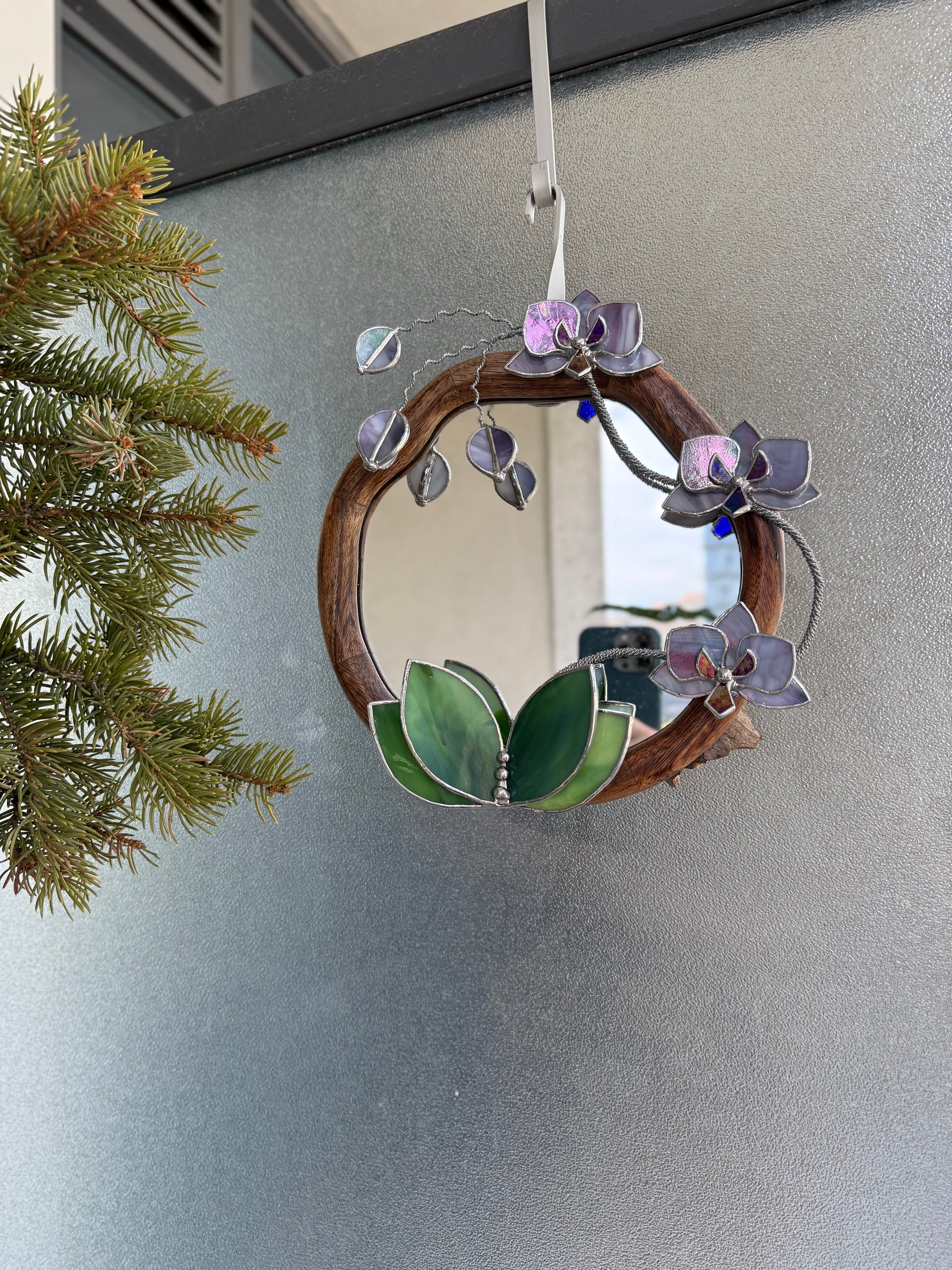 " . Lilac luminescent Orchid Mirror”, Stained glass flower Wall decor, Suncatcher, Home wedding Decor, Christmas gift available sale