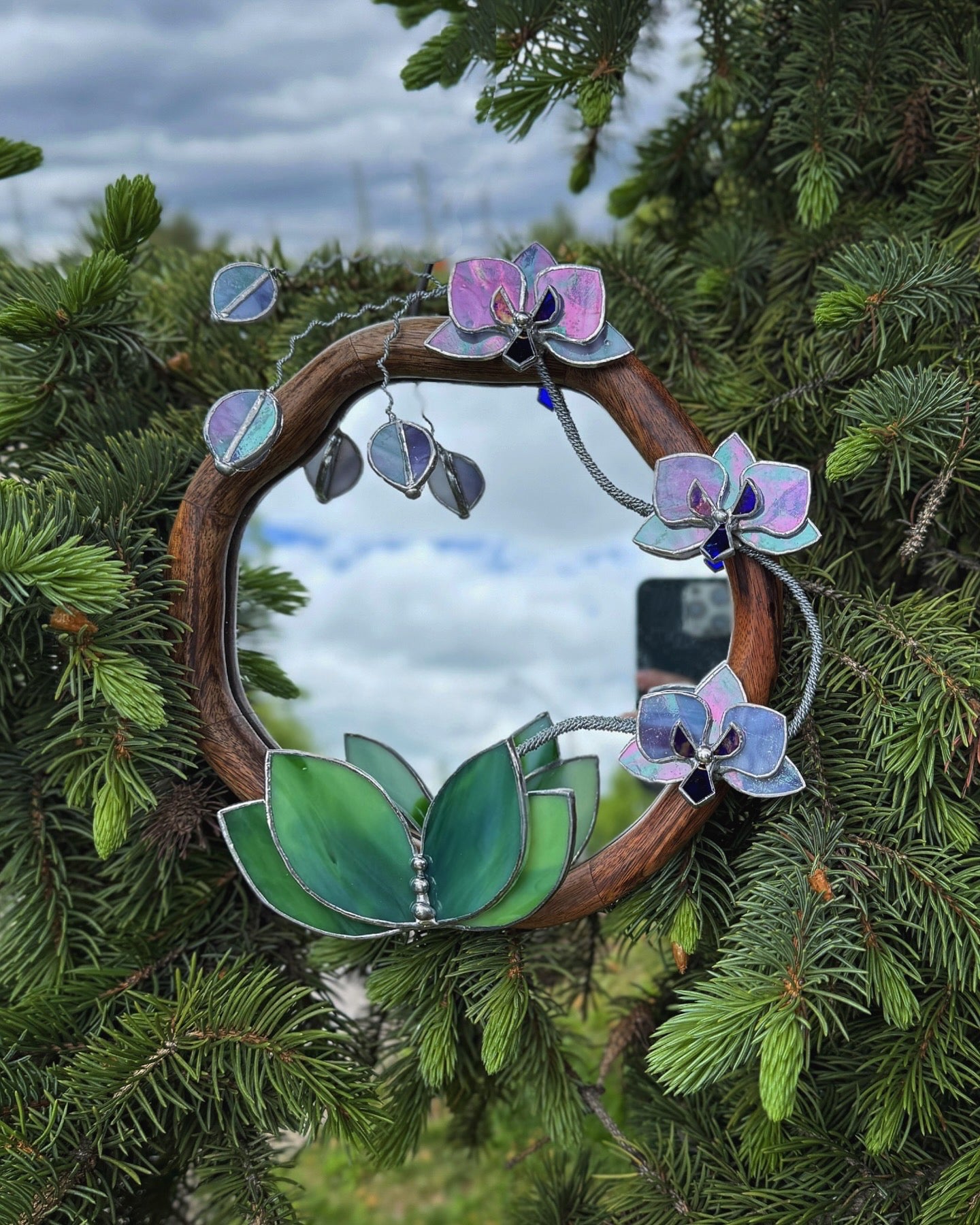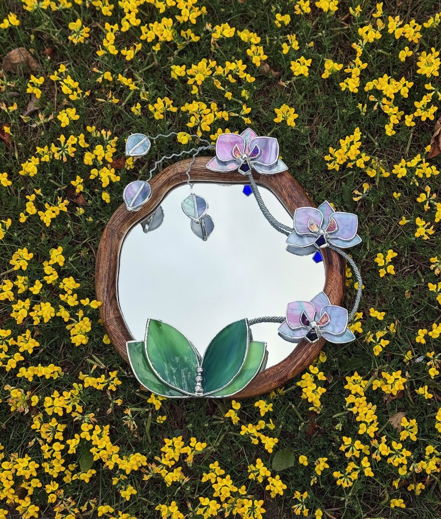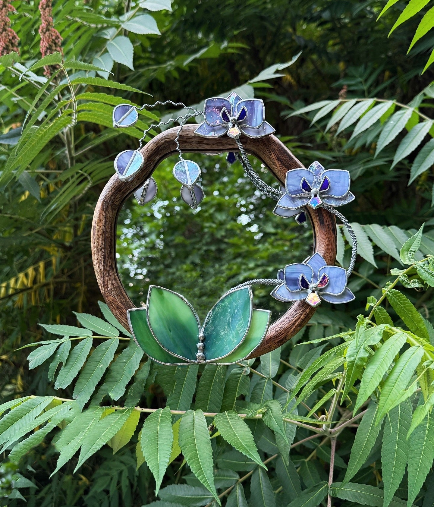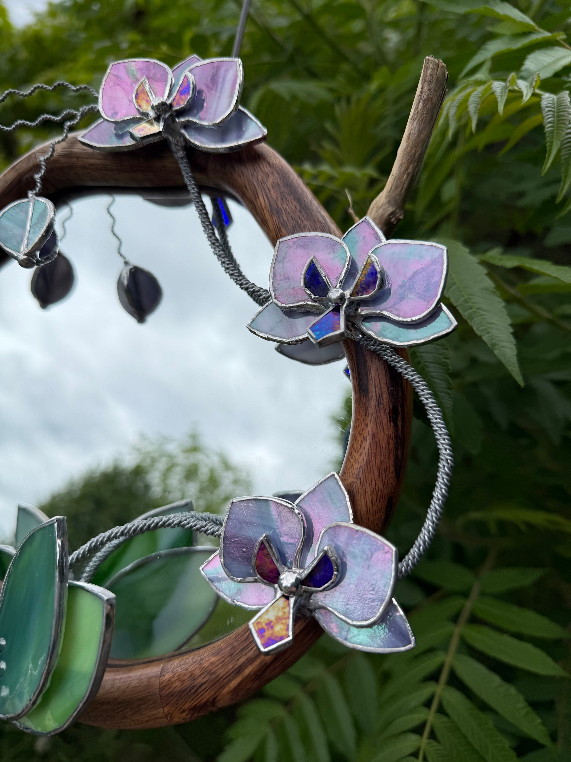 " . Lilac luminescent Orchid Mirror”, Stained glass flower Wall decor, Suncatcher, Home wedding Decor, Christmas gift available sale