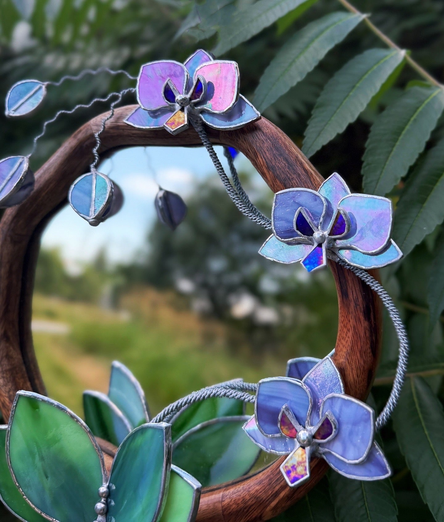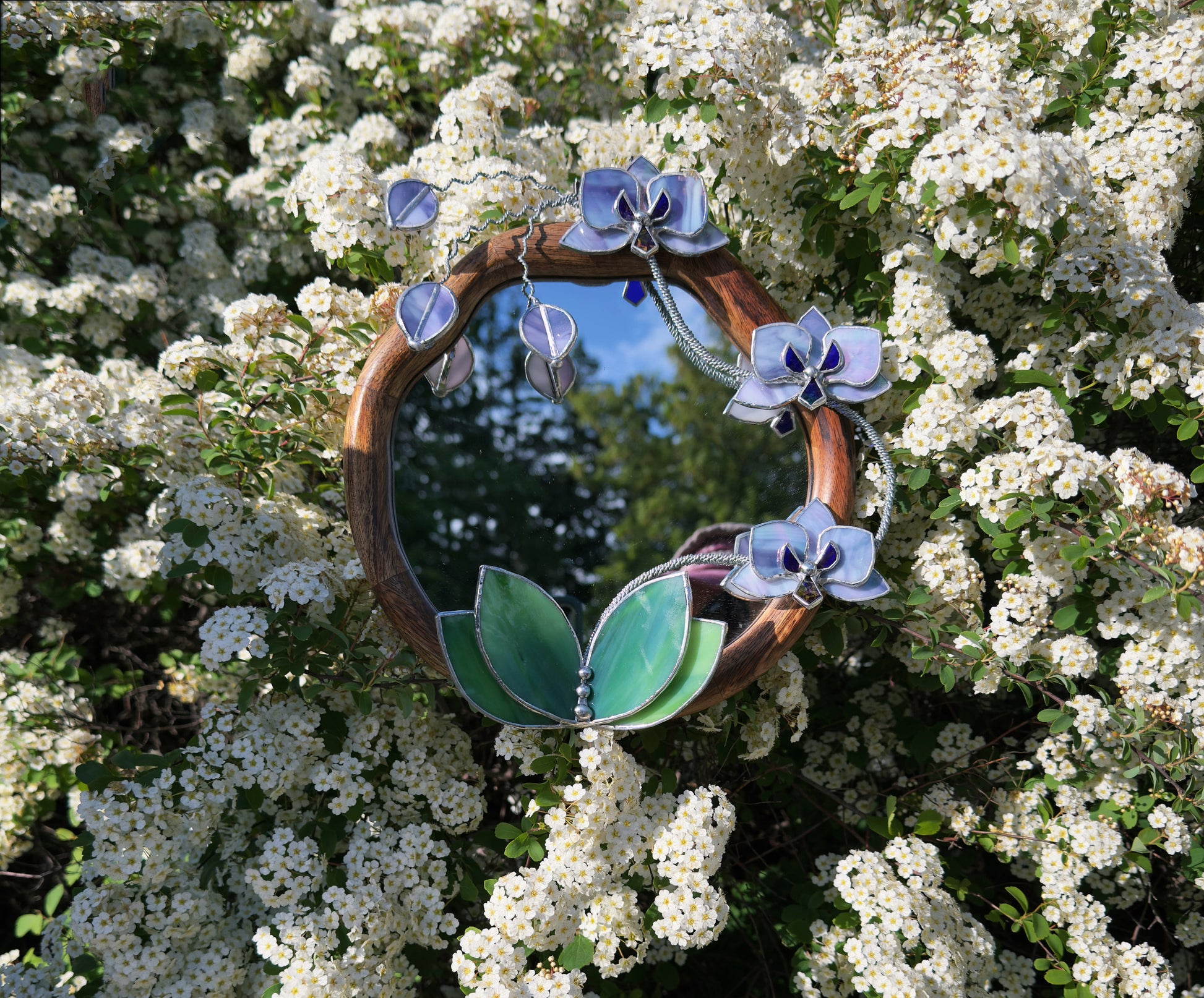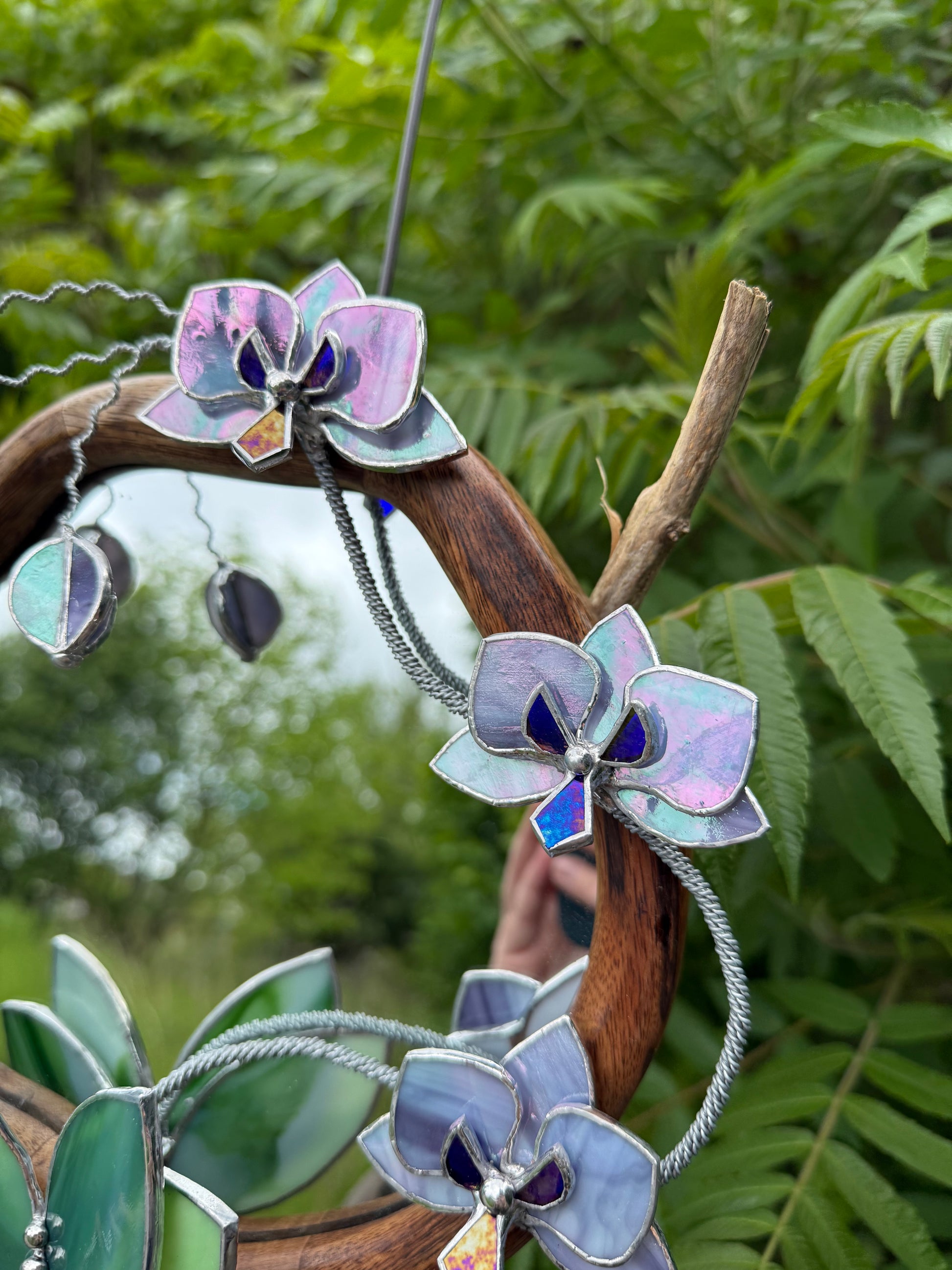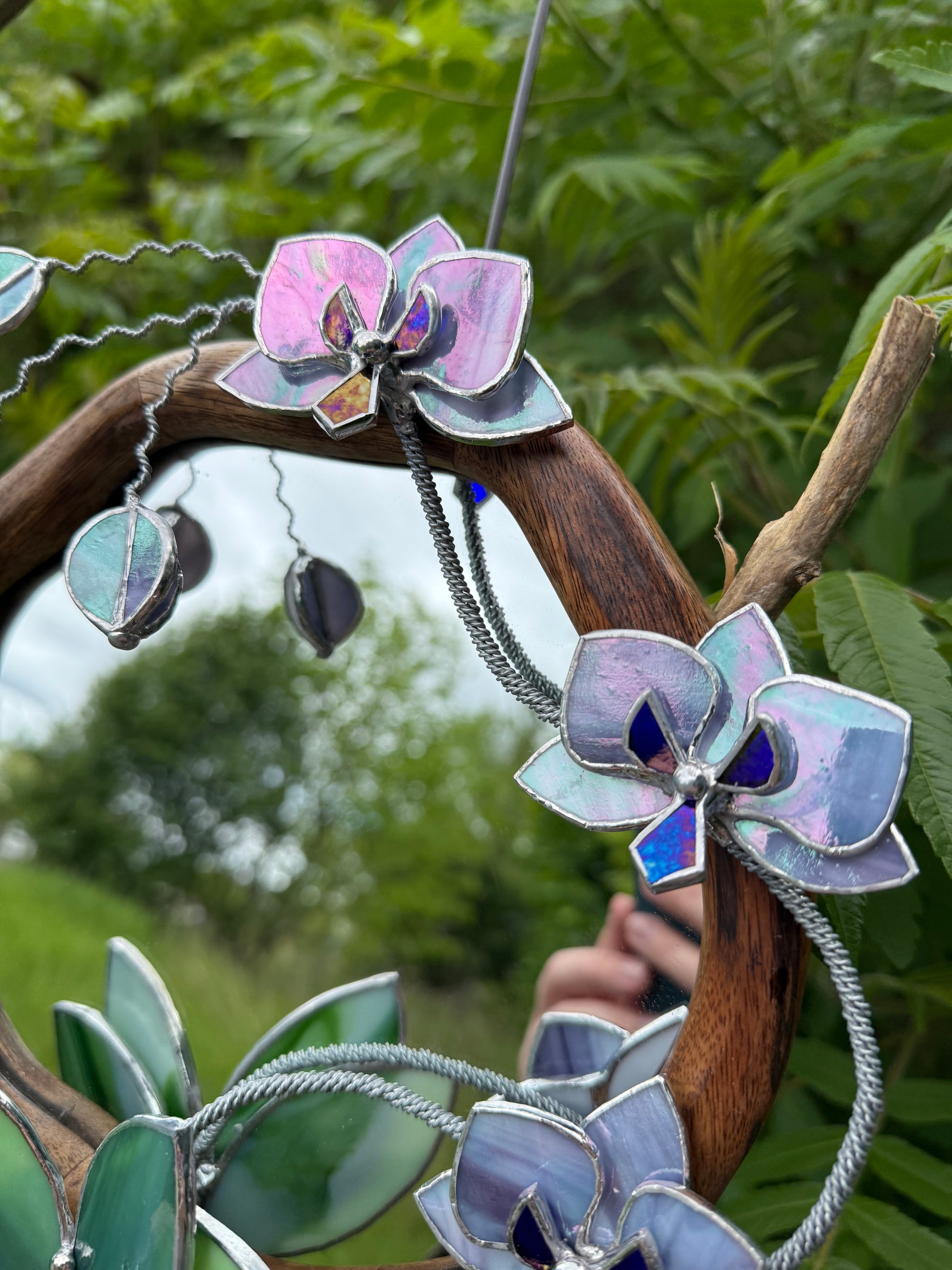 " . Lilac luminescent Orchid Mirror”, Stained glass flower Wall decor, Suncatcher, Home wedding Decor, Christmas gift available sale