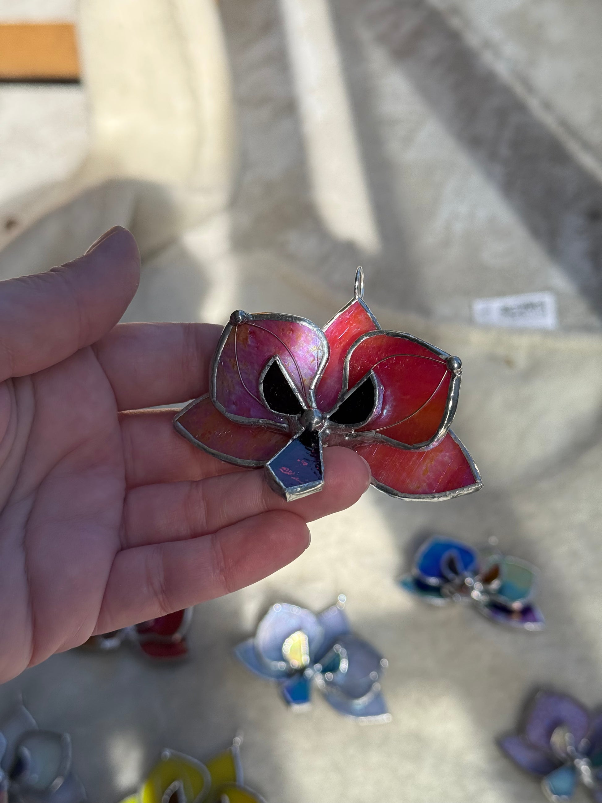 " . Orchid flower Berry Red irid, Stained glass Decorative ORNAMENT, Christmas decoration, Suncatcher