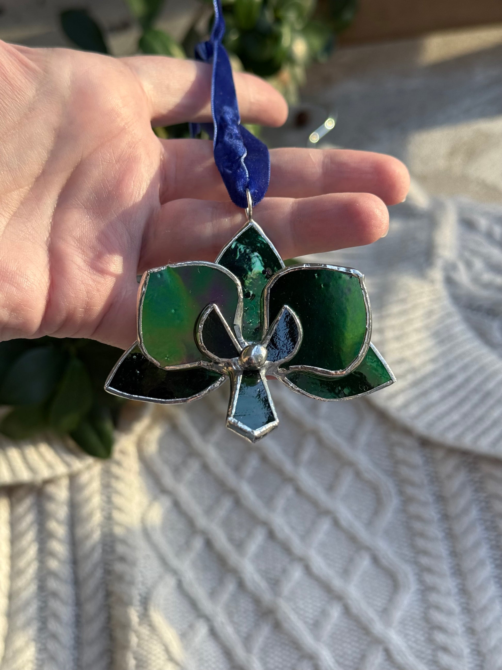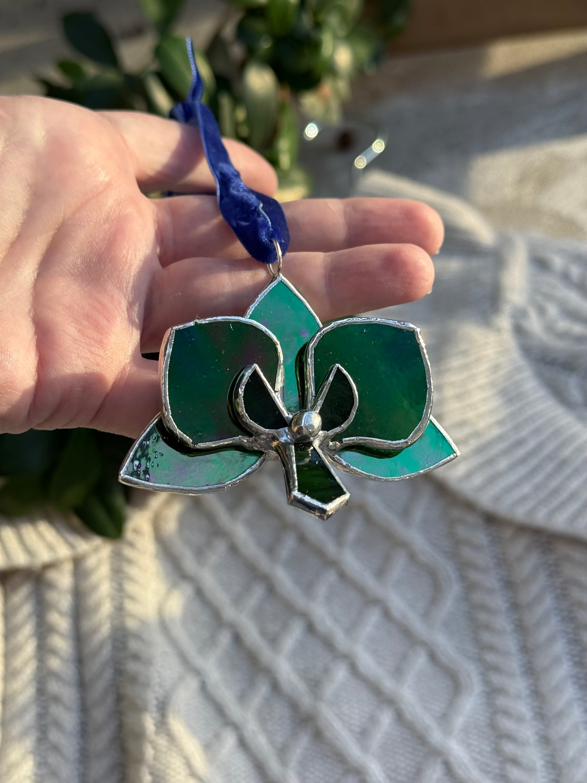 " . Orchid flower Green luminescent, Stained glass Decorative ORNAMENT, Christmas decoration, Suncatcher